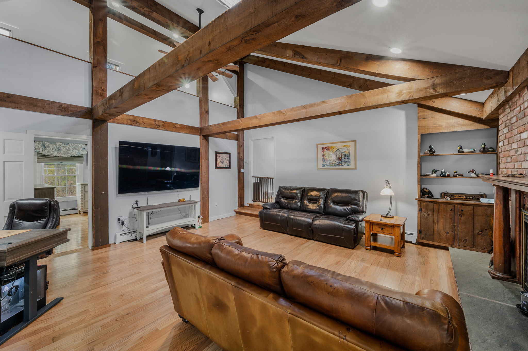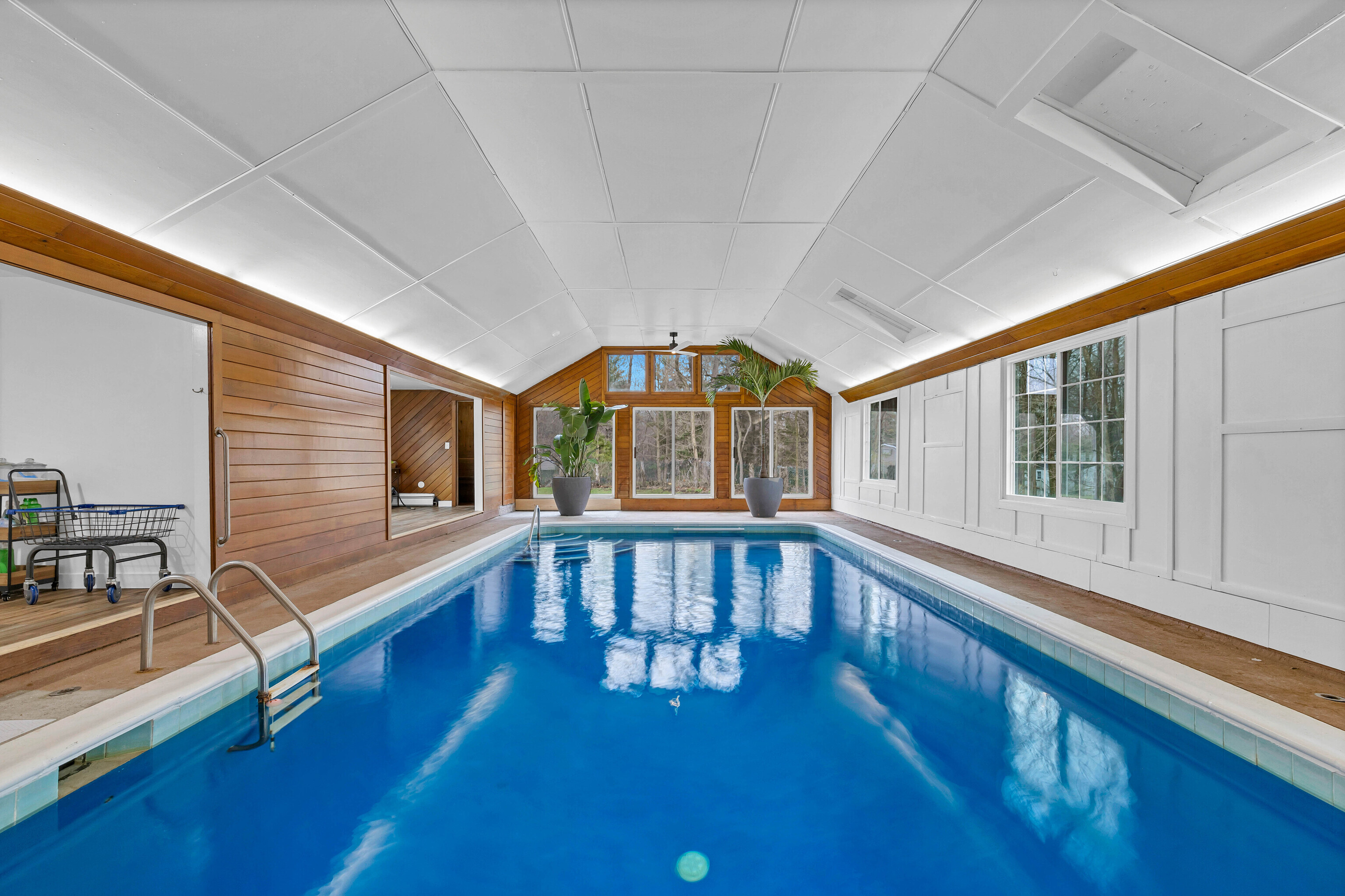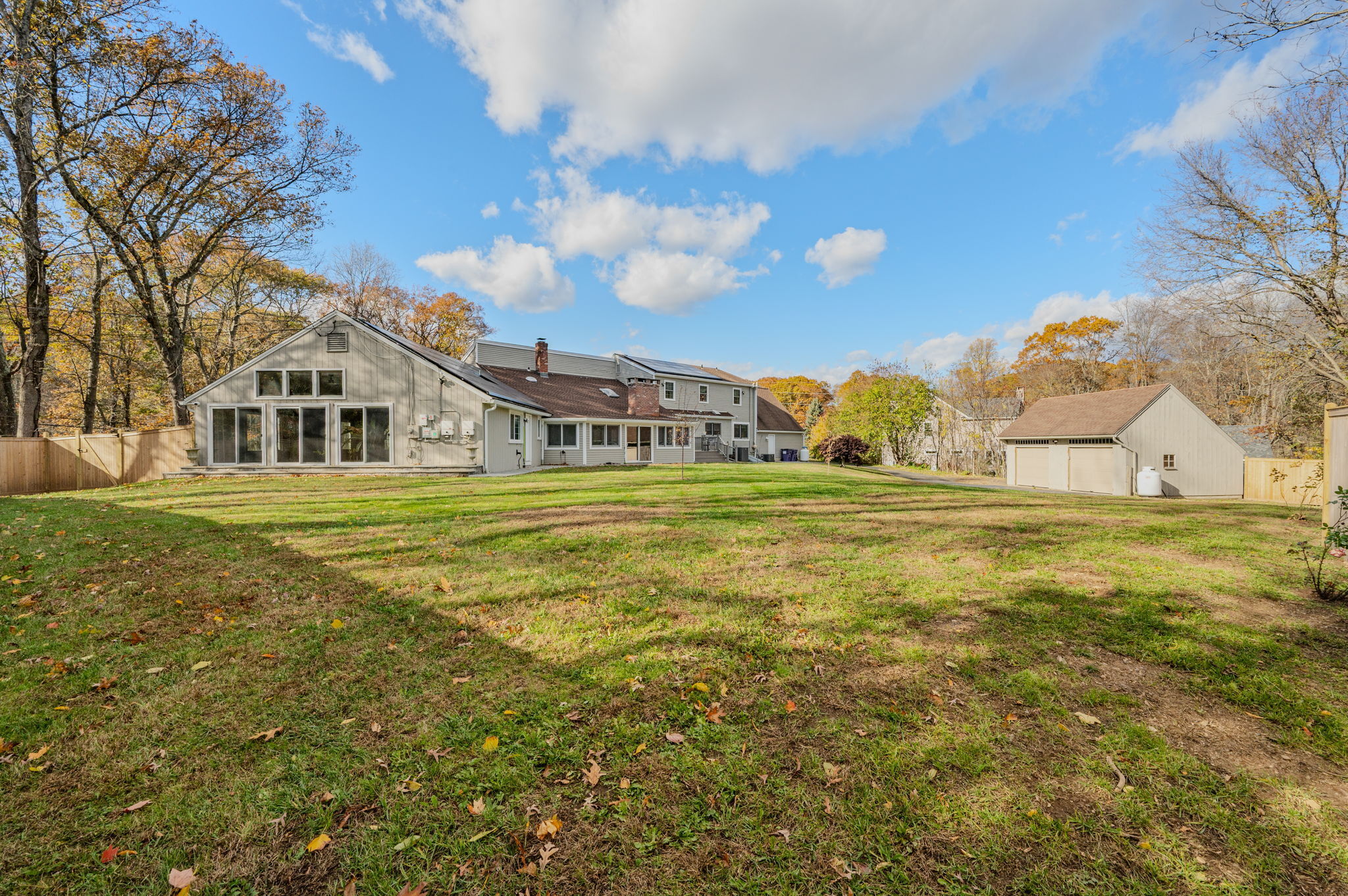 Located at the entrance of a quiet cul-de-sac, this expansive contemporary Cape sits on over an acre and offers 4 bedrooms and 2 full and 2 half baths. The first-floor primary suite and open-concept layout provide flexible living options. Features include an indoor 10ft-deep saltwater pool with sauna, a loft ideal for an office or den, and both attached and detached two-car garages, one with an EV charging station. Additional highlights include updated mechanicals, privacy fencing, and potential expansion space above the garage. Conveniently situated near Bishop's Orchards, Guilford High School, marinas, golf, restaurants, and the town beach, this home offers exceptional versatility, comfort, and location.
