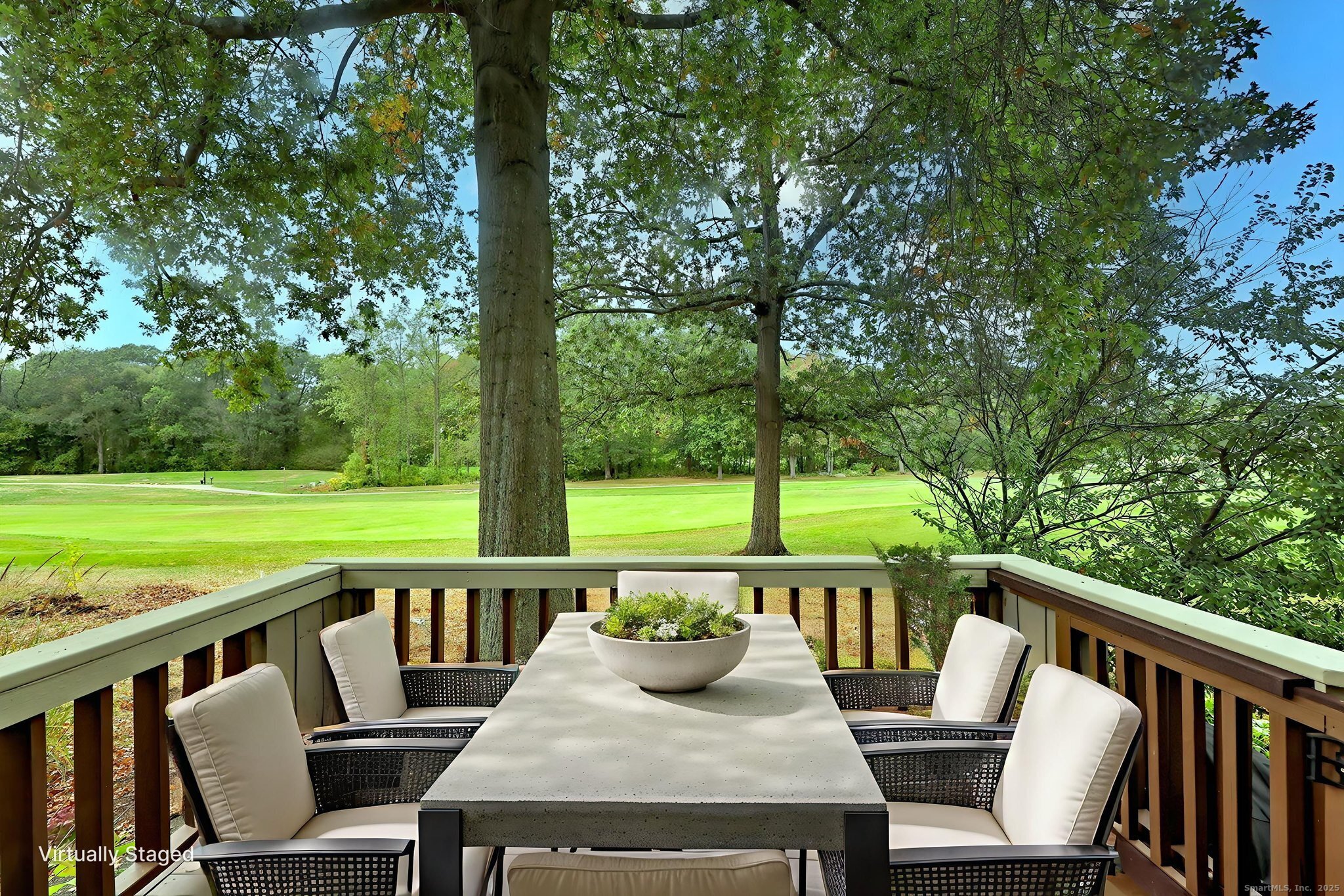 Spectacular fairway setting on the 1st hole of Black Hawk Golf Course! This beautifully updated Whittier model sits on a quiet cul-de-sac with plenty of parking. The main level features vaulted ceilings, hardwood floors, a gas fireplace, and sliders to a private deck with an electric awning overlooking the course. The updated kitchen offers granite countertops, hardwood flooring, plantation shutters, and a bright breakfast nook. The main floor includes two bedrooms and two full baths, including a primary suite with a walk-in closet and a private deck. The second bedroom features built-ins, a Murphy bed, and new carpet. A dedicated den/office offers additional views of green space. The finished lower level adds 955+ sq ft, including a large open living area, a half bath (with room to expand), storage, and a cedar closet, ideal for guests, hobbies, or media space. A rare opportunity to enjoy one of Oronoque Village's most desirable locations with front-row golf views and a smart, functional layout.
