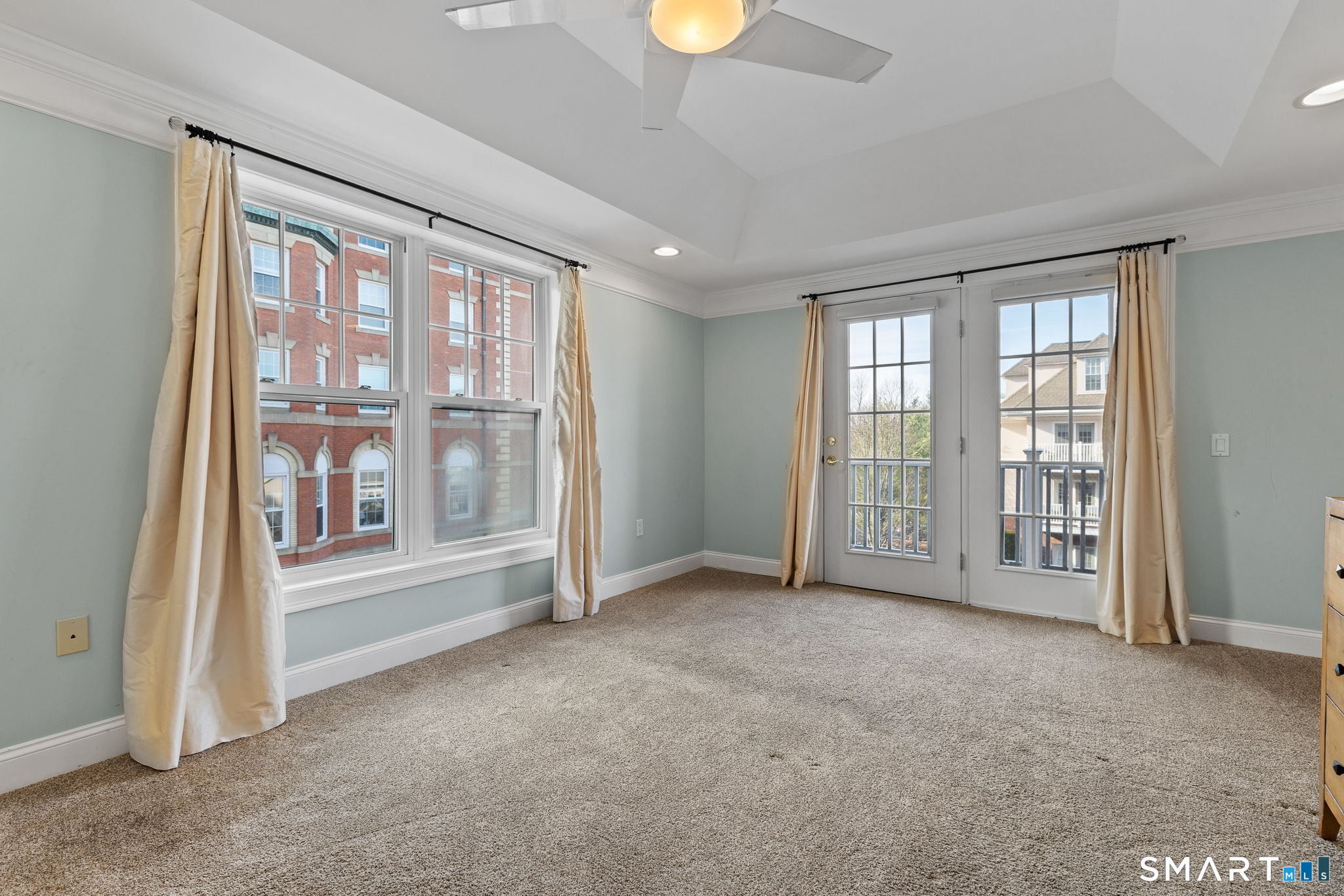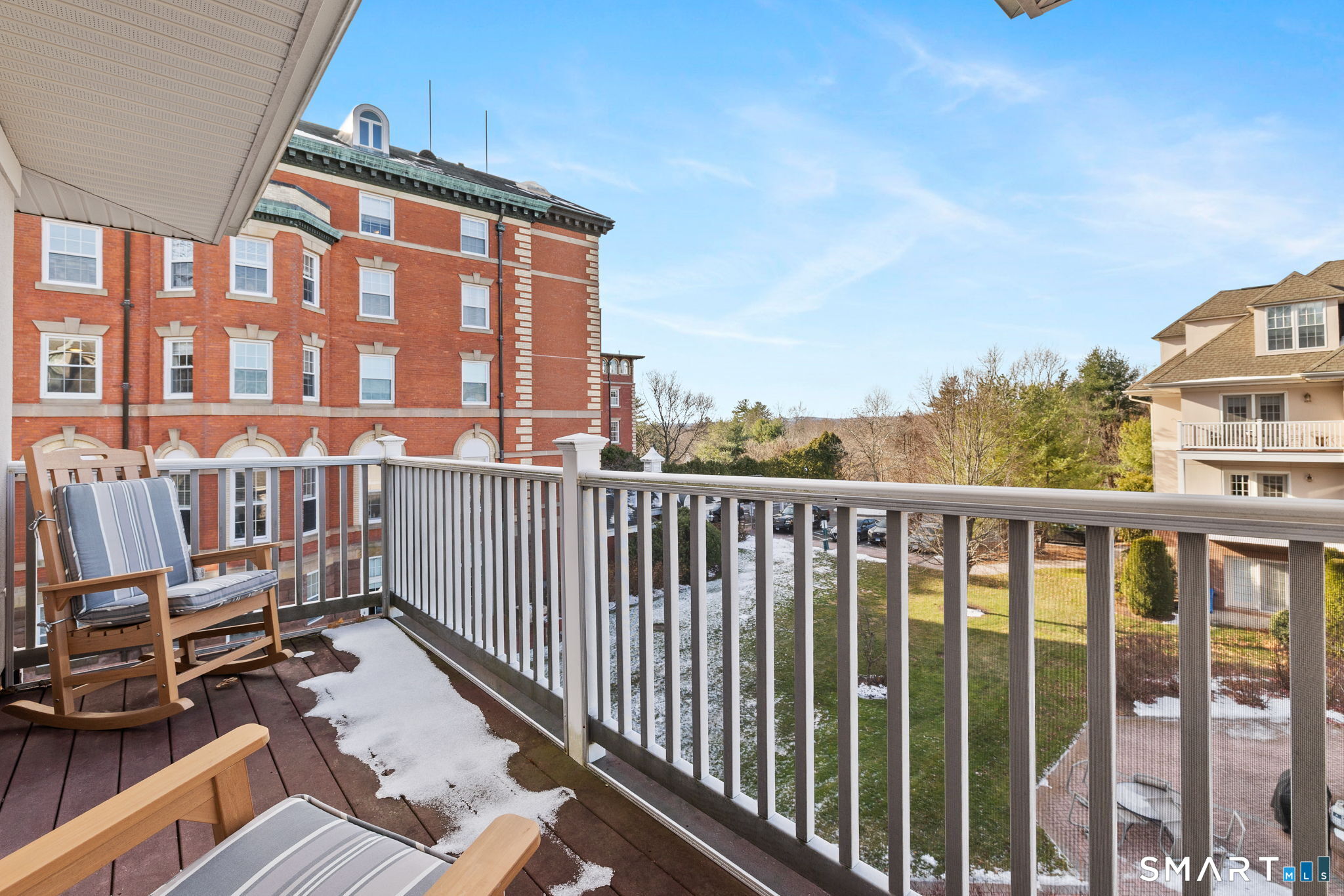 Welcome to Fernwood Estates, one of West Hartford's premier over-55 communities, where comfort meets elegance in this sun filled two bedroom, two bath condo just moments from Elizabeth Park and vibrant Blue Back Square. Step inside to an expansive open concept living area framed by tray ceilings, warm natural light, and French doors that lead to your private balcony with charming courtyard and historic brick building views. The kitchen feels straight out of a home magazine, showcasing granite counters, stainless steel appliances, abundant cabinetry, a custom pantry door, and a seamless flow into the dining and living spaces for effortless entertaining. Both bedrooms are generously sized, each with balcony access, deep closets, and calming natural light. The primary suite offers an airy retreat with a spacious full bath featuring granite counters and a walk in shower, while the second bath includes a granite vanity and tub. A full laundry room adds everyday convenience. Additional features include a shared rear patio with BBQ area, a community room ideal for gatherings, and a fitness room, along with one garage parking space, elevator access, beautiful grounds, and included utilities such as water and grounds care. Stylish, comfortable, and wonderfully convenient, this Fernwood Estates condo is ready to welcome you home.