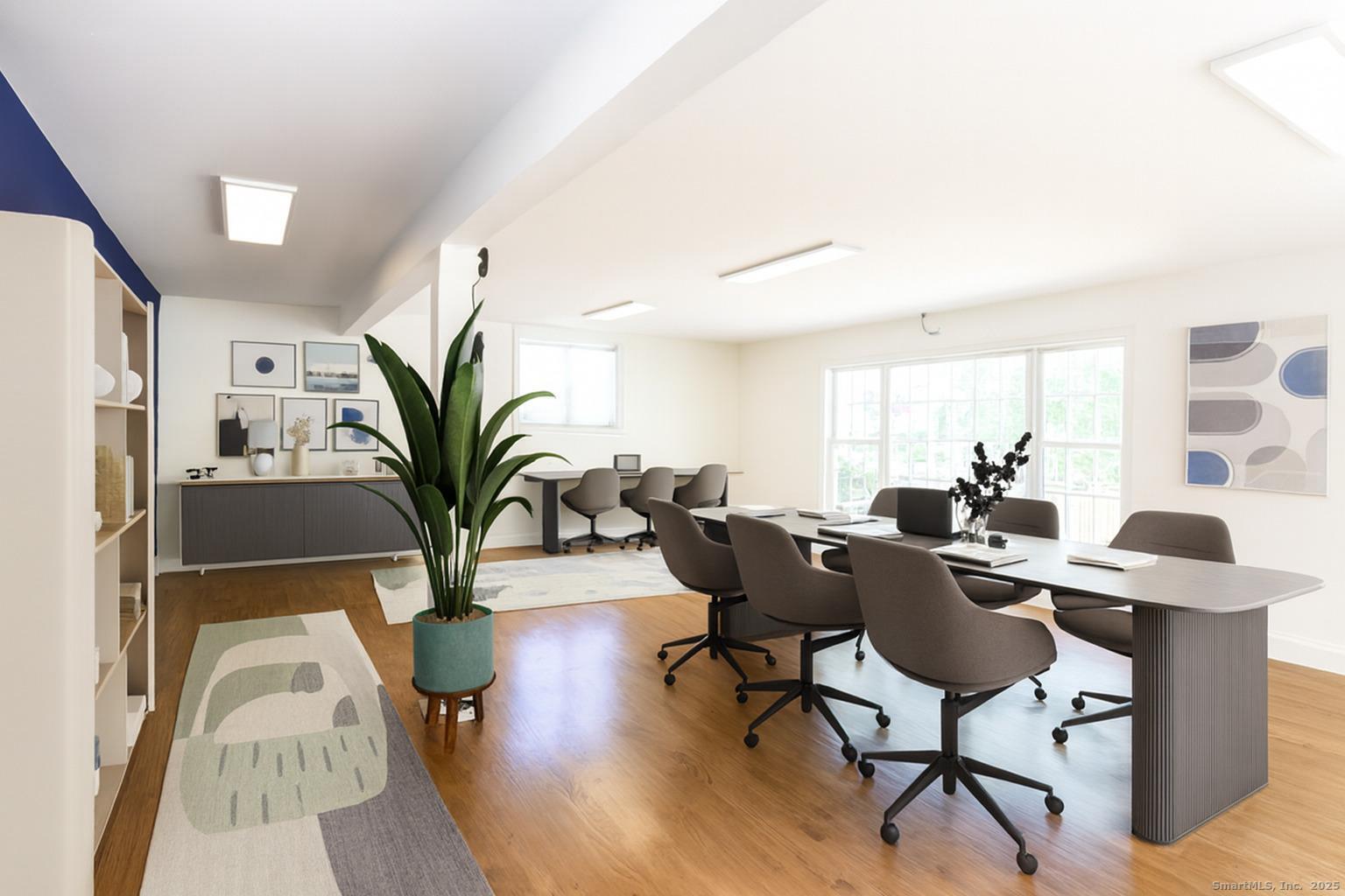 Prime opportunity to run an existing business or launch a new one in this exceptional Wolcott location, surrounded by well-established neighboring businesses (grocery store, orchard, restaurants, auto services, etc.) within a high-exposure retail corridor. This handsome, pristine, stand-alone property encourages strong foot traffic for both existing and potential clients. Freshly updated, this ~900 sq ft unit has been painted throughout, features refinished hardwood floors, and offers abundant natural light. The layout includes an oversized, versatile front main room plus two closed-door offices-ideal for privacy when meeting with clients. The 1/2 bath has been updated with new tile. Additional highlights include front and rear access, separate utilities, public water and sewer, propane fuel, and ample parking (23 spaces). Two of the three units are currently leased. This space is highly adaptable-ideal for retail, professional office, counselors, contractors, attorneys, tutors, and more. Minutes to I-84, Hitchcock Lake, Plantsville/Southington, Cheshire, Naugatuck, Waterbury, and surrounding communities.