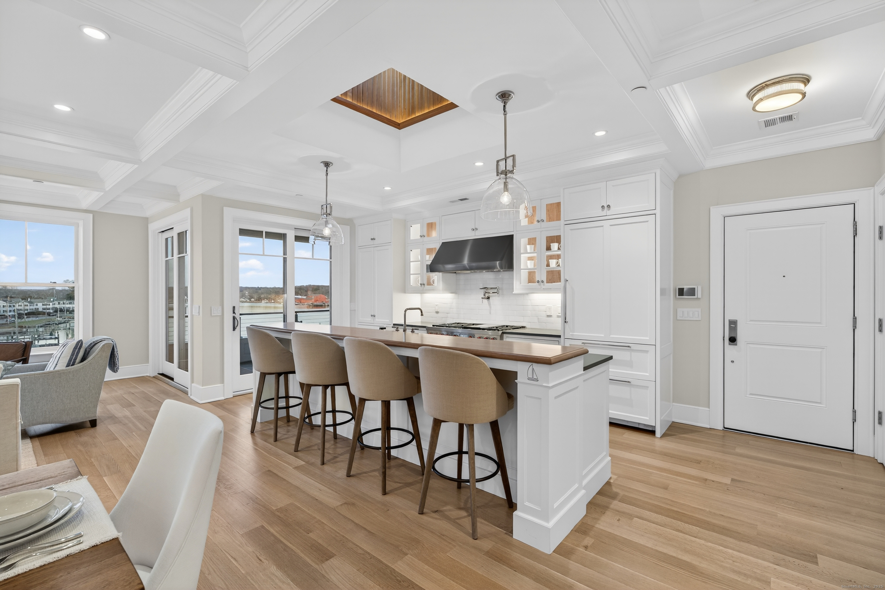 CENTRAL HALL MYSTIC - LIFE AT THE WATER'S EDGE There's something special about living where the Mystic River becomes your quiet constant and the village offers its steady beat just beyond your windows. This penthouse at Central Hall isn't just a home-it's a way of living connected to the water, the town, and the history that gives Mystic its soul. Wide windows frame the river in a cinematic way-sailboats drifting by, the drawbridge lifting, light moving across the water all day. Here, the river isn't just a view. Residents enjoy a lifestyle shaped by it: a private dinghy dock, shared paddle boards and kayaks, approved moorings, and gated parking that extends the ease of living from shoreline to front door. Inside, every finish feels thoughtfully crafted. Warm, modern design meets Mystic's seaport heritage, creating spaces that invite you to slow down, gather, and enjoy what happens naturally here. The chef's kitchen anchors it all with understated luxury, while a private waterfront balcony extends your living space outward-your own front-row seat to river life. Offered fully furnished, the home lets you settle into the Mystic lifestyle instantly. Step outside and Mystic unfolds around you-coffee shops, waterfront restaurants, boutiques, galleries, and the charm of a historic coastal village. And when the antique boats glide past each year, you're not just observing-you're woven into the tradition. This is Central Hall. Where life moves with intention.
