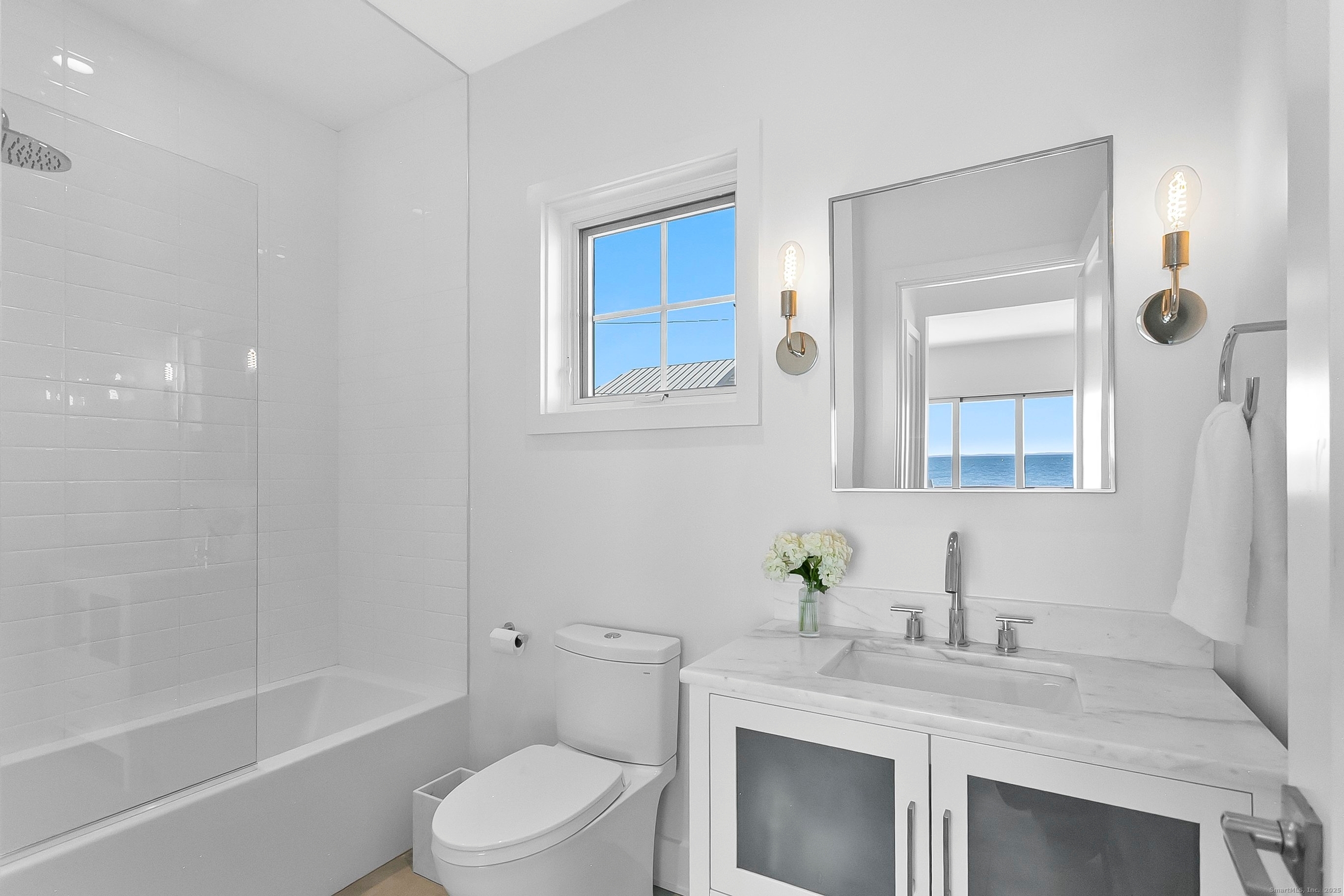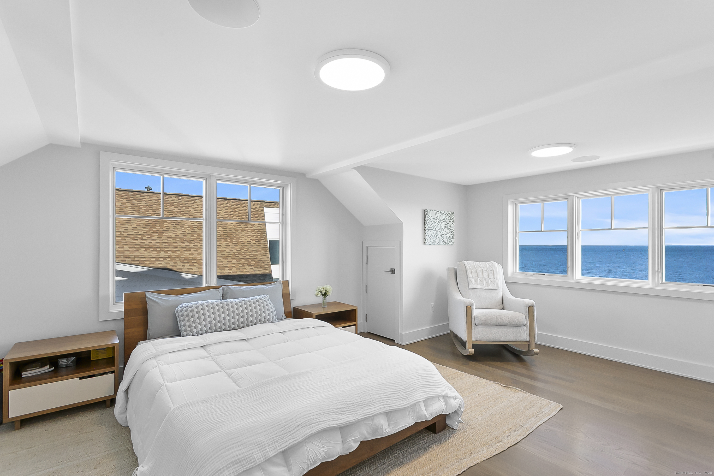 Gorgeous waterfront retreat w/ breathtaking panoramic LI Sound views & miles of walkable sandy beach. This exceptional FEMA compliant coastal retreat includes a private boat dock w/ an additional two-car garage on the creek side, creating endless opportunities for waterfront enjoyment. Featuring 3 levels of spacious living, w/ 8 rooms & 4 full baths, thoughtfully designed for everyday living & entertaining. Enjoy stunning water views from every level w/ BOTH sunrises & colorful sunsets from multiple balconies that invite you to relax & take in the scenery. Highlights include a sun drenched open floor plan, high-end Wolf and Sub-Zero appliances, custom built-ins, a gas fireplace & white oak hardwood floors throughout. Additional private rooms offer flexibility for work, guests, or quiet retreat. A rare & highly desirable 1st floor bedroom w/ full bath is perfect for guests, in-laws or a home office. Outdoor living is just as impressive w/ an oversized patio ideal for entertaining, dining or simply watching sailboats glide by during regattas. Amazing features include roof top deck, 2 separate garages, driveway parking for up to 10 cars (a true rarity in the beach area), home generator, outdoor shower & a Tesla charging station. Ideally located close to town, train, parks, school & shopping. Beach walks, boating, peace & tranquility await in your very own premier luxury coastal home - Welcome home to 2101-2102 Fairfield Beach Road.