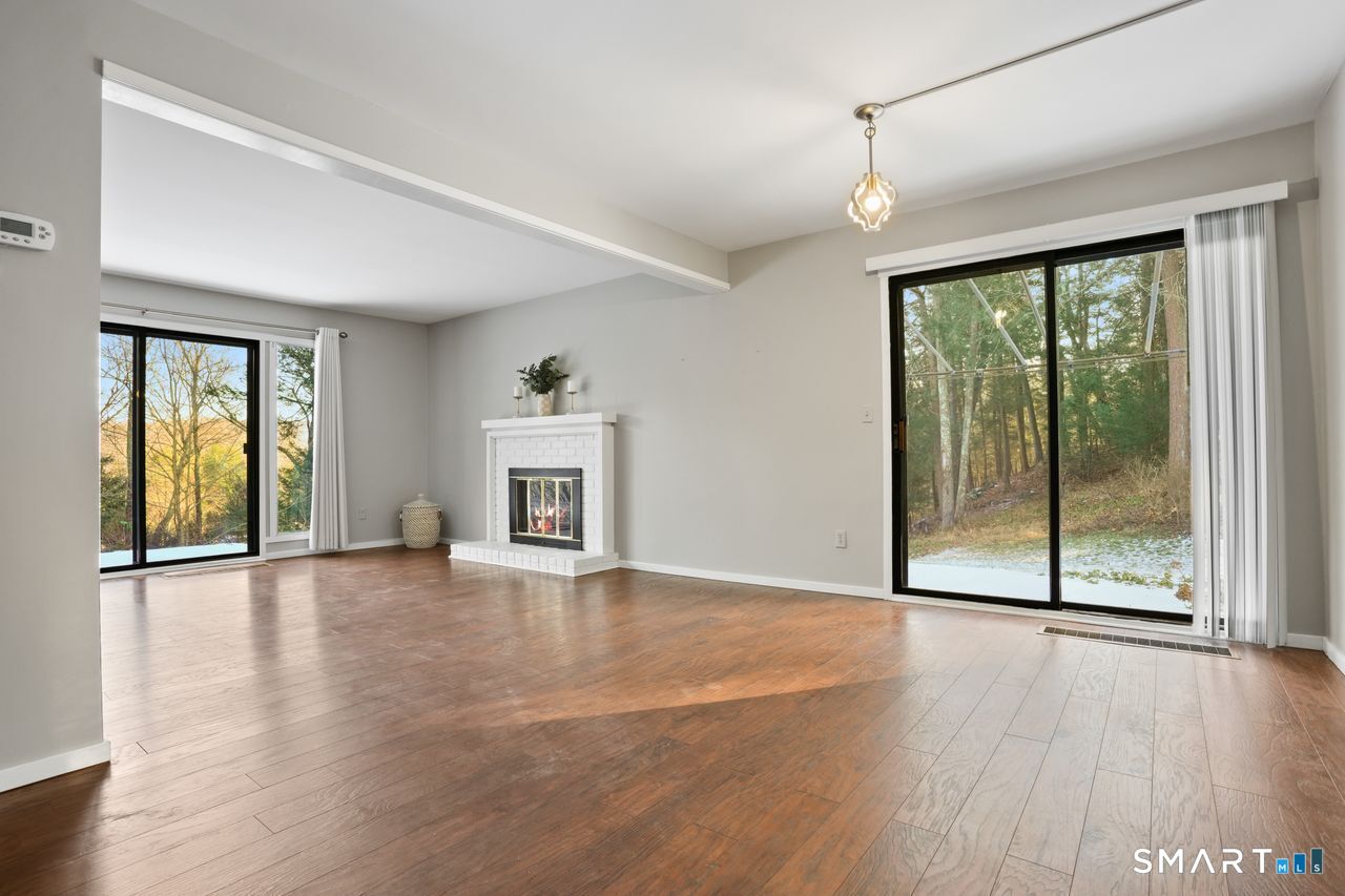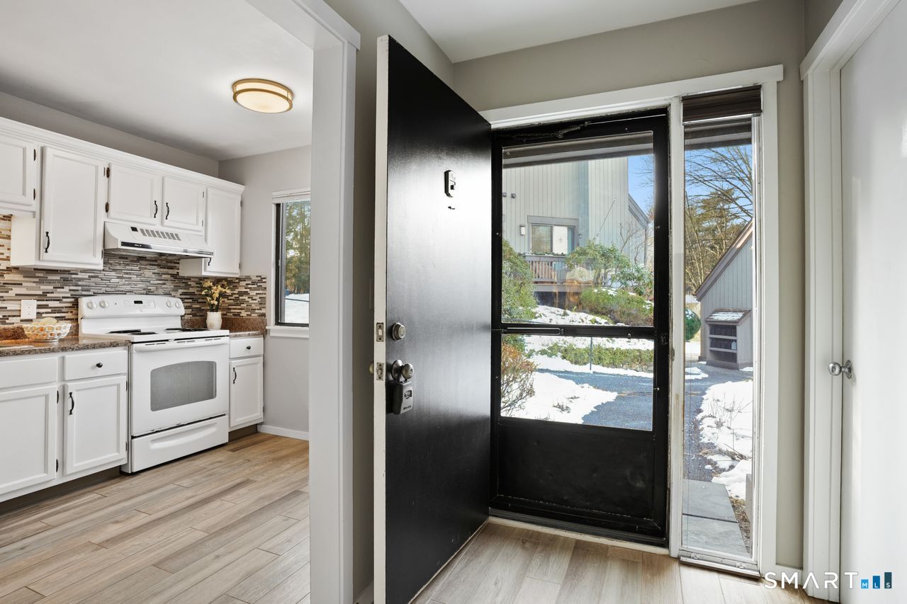 Discover the perfect blend of comfort and style in this beautifully maintained two-story Franklin end-unit townhouse in Heritage Village. This lovely home is nestled in a private location with a short walk from the garage, situated at the end of a peaceful cul-de-sac on Grove Pond Lane. Step inside this bright and meticulously maintained townhouse, ready for you to move in. The updated kitchen and half bath feature modern fixtures, while newer flooring and stylish lighting enhance the entire space. The spacious living and dining area includes sliders that lead to double private patios, ideal for hosting gatherings. Enjoy the warmth of a charming wood-burning fireplace, adding a cozy ambiance to your entertaining. Upstairs, you'll find well-separated bedrooms ensuring privacy, as well as a convenient laundry area and full bath. This pristine townhouse is set in a picturesque, sprawling resort-style 55+ community surrounded by natural ponds, trails and offers a wide variety of activities including numerous club activities, gardening, day-trips, tennis, pickle ball and bocci courts, multiple built-in heated swimming pools and an 18-hole golf course with something for everyone! Conveniently located close to restaurants, shopping and I84. Heritage Village is a wonderful place to visit and an even nicer place to live