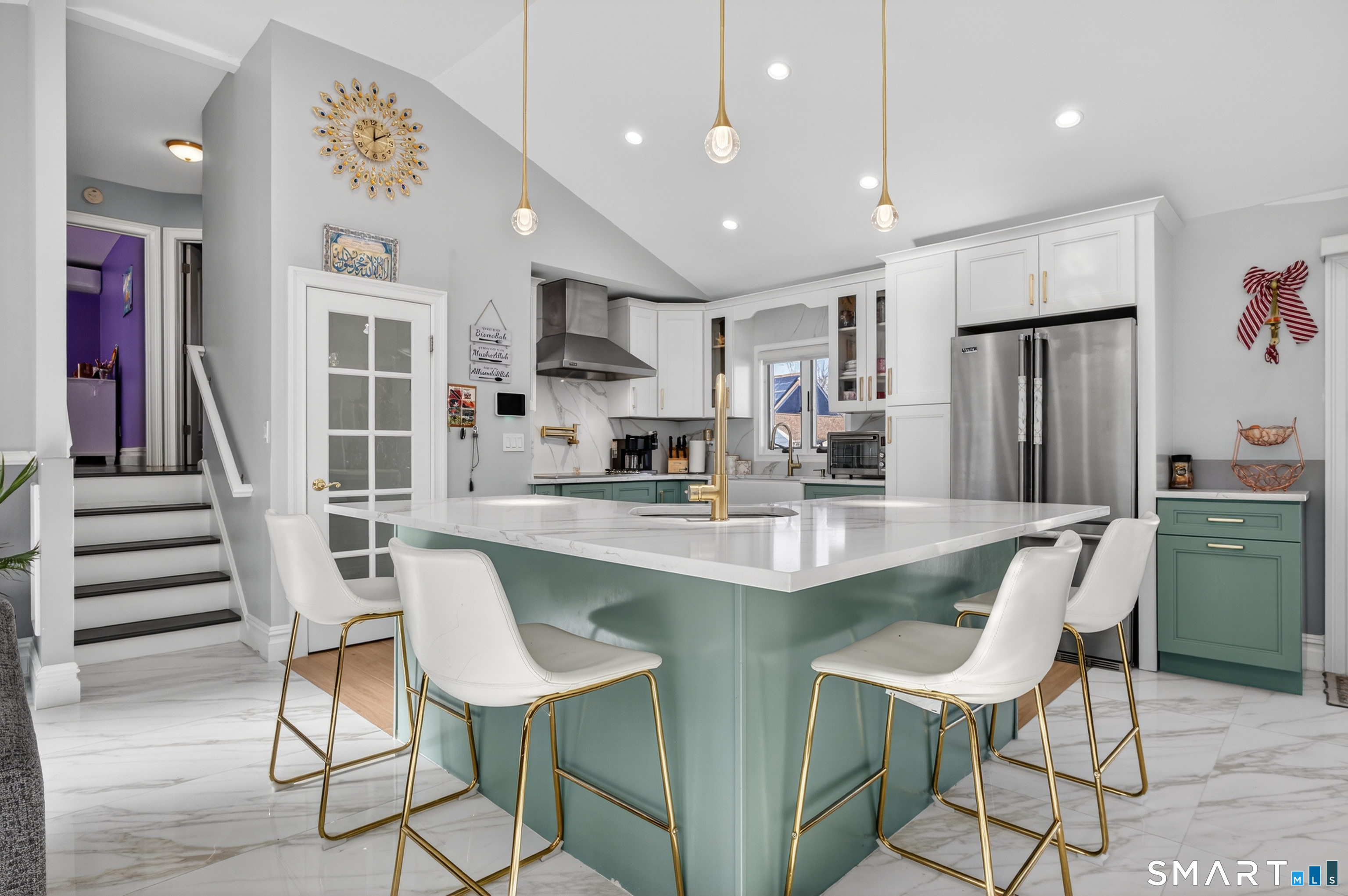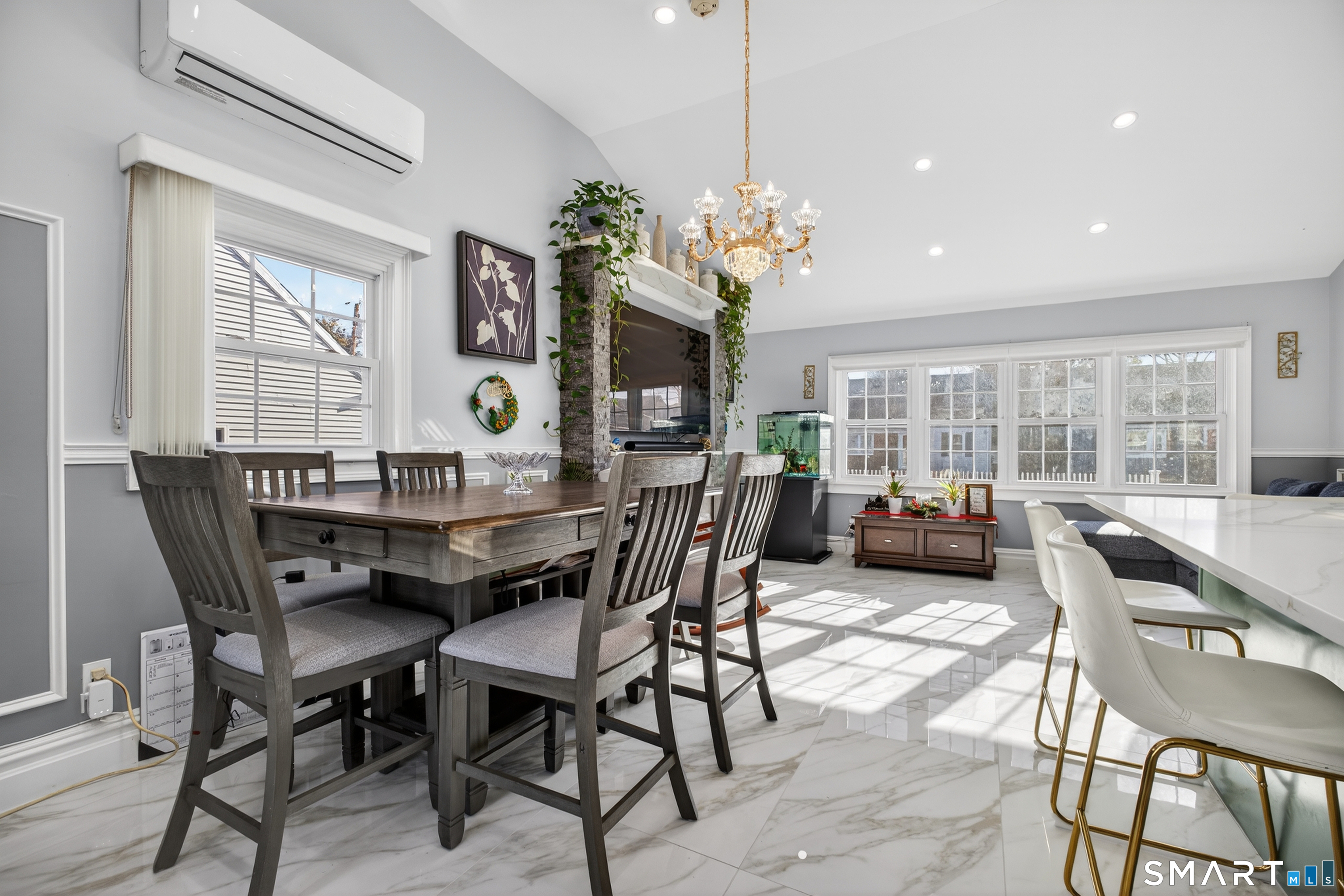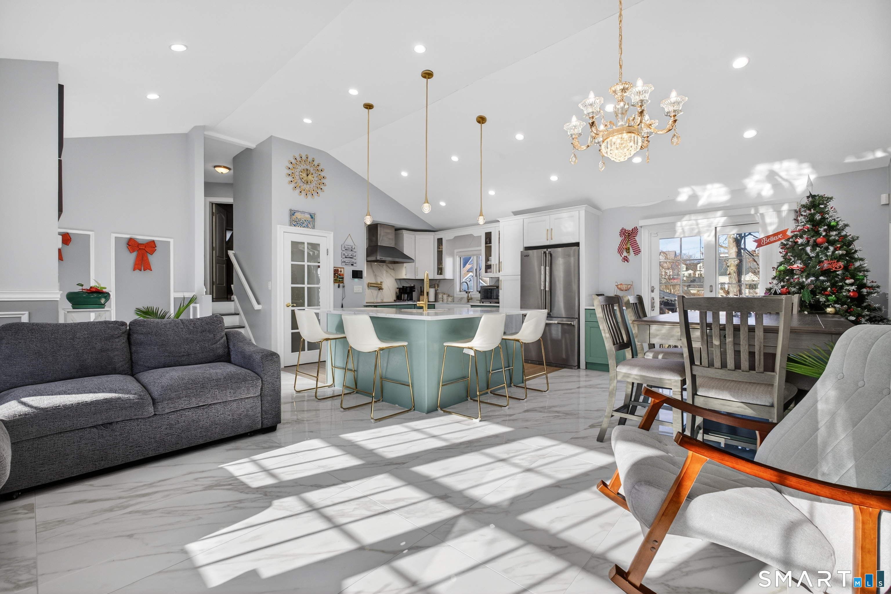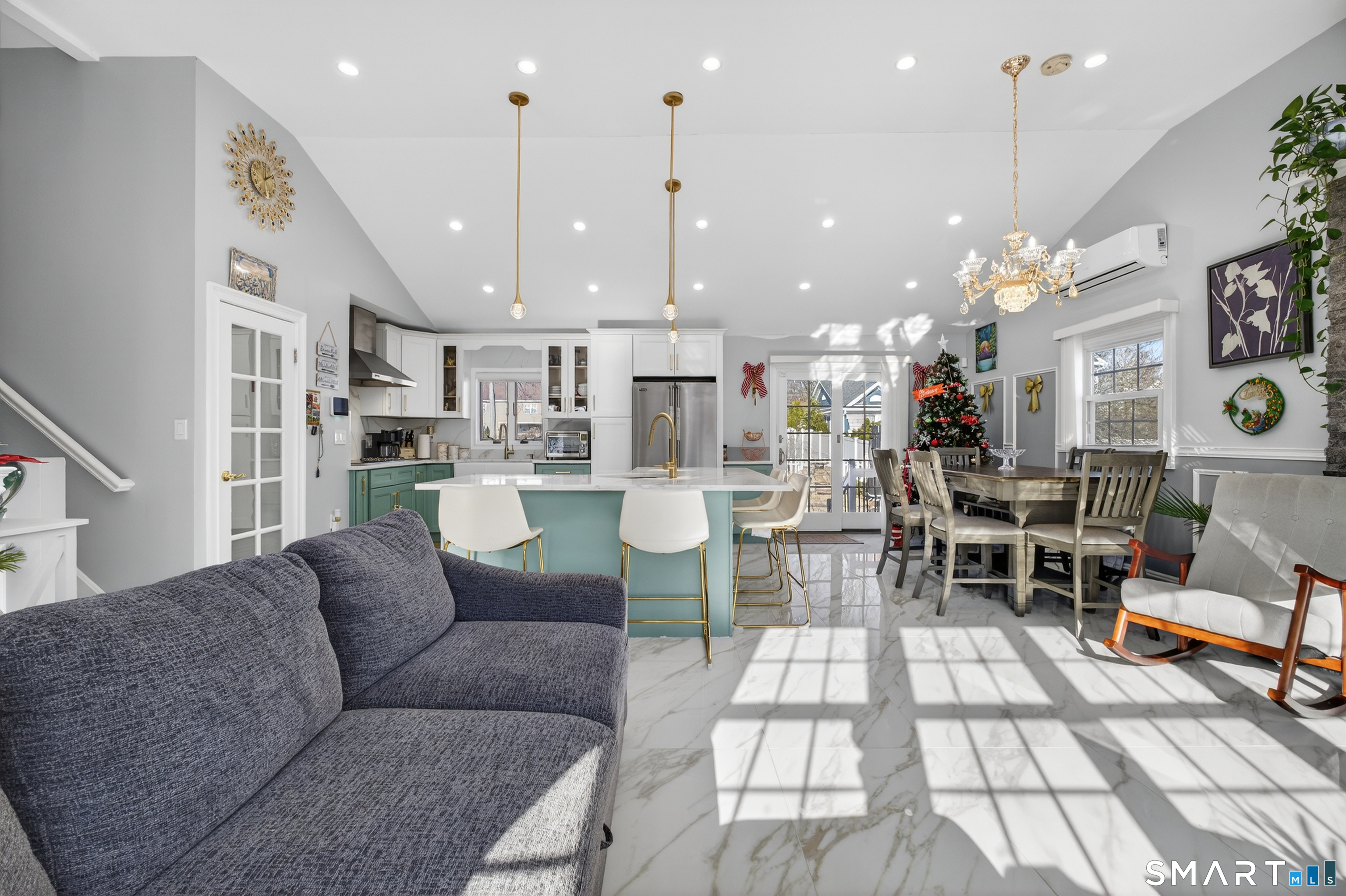 This stunning North End home is beautifully remodeled and features high-end finishes and thoughtful upgrades throughout. The gourmet kitchen is a showpiece with granite countertops, Viking appliances, a farm sink, an additional prep sink in the island, radiant heated floors, and a pot filler. It opens to the living and dining areas with an open-concept layout and cathedral ceilings for an airy feel. Radiant heated floors run through these main living spaces, providing consistent, energy-efficient warmth. The updated bathrooms offer LED self-closing, anti-fog mirrors and an extra-deep soaking tub upstairs. Each bedroom has its own new mini-split with heat and A/C. Major upgrades include new electrical, plumbing, and a new sewer line to the road, plus a new roof, new solar panels, and a freshly primed and painted exterior. Outside features new pavers, stepping stones, a fountain, improved drainage, a newly paved driveway, a new front and back fence, and a flat yard. A 3-ft foundation wall spans the backyard for added stability. The partially finished lower level offers a separate entrance, a newly remodeled full bath (wait until you see the shower!), a bedroom, and a family room-perfect for a possible in-law or guest suite. This home is in a prime location bordering Trumbull and Fairfield. Every detail has been upgraded-schedule your showing today!