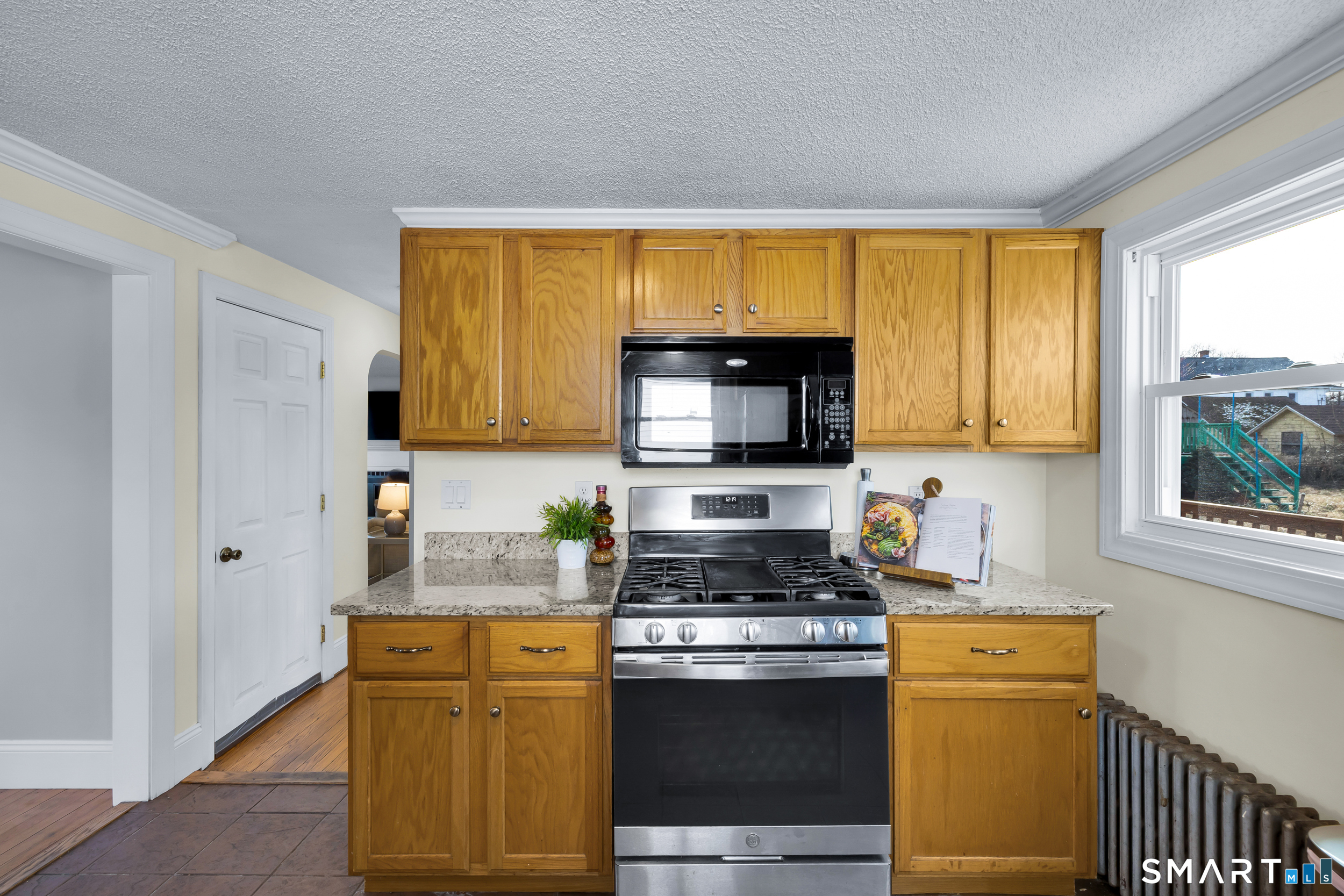 If you are looking for the quintessential New England Cape, then look no further! This 3 bed, 2 full bath 1152 SF home is just screaming COME TO MAMA! Full of natural sunlight that bounce off the natural HW floors, the floor plan flows nicely from living room, to an eat-in kitchen that can house a full dining table AND breakfast bar! Once in the kitchen, experience the ss appliances, granite countertops & direct access to a fairly large deck that can be your "Al Fresco" dining during the warmer months. But for now, you will love cuddling up on the couch while the fireplace crackles settling into a good Netflix binge. With Bedrooms and full baths on each floor, everyone in the family will have the flexibility & opportunity to claim their spot and not feel like they are compromising! Recent updates include freshly painted throughout, newer fully bath, storm door, HW tank, TREX front porch, solar panels, boiler ('17). Located walking distance from Manchester's quaint Main St special shopping district w/plenty of dining options & just a few steps from the infamous MRR route, you are sure to want to make this little cutie YOURS for the New Year! So CHEERS to crossing of "Homeownership" off your "to-do" list for 2026!