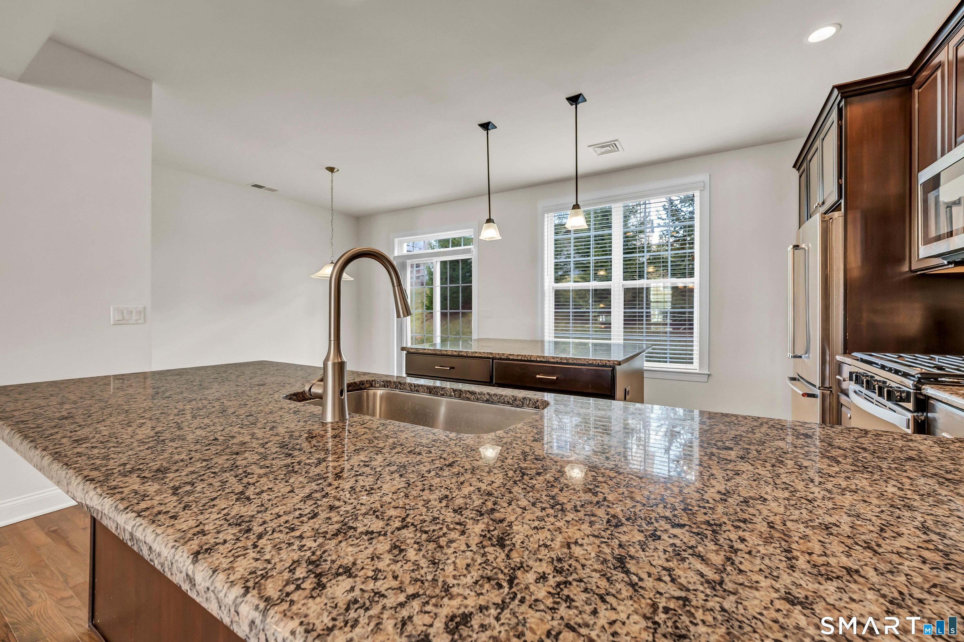 Desirable Rivington Location! This beautifully updated three-bedroom townhouse offers a bright, welcoming layout and a finished lower level complete with a full bathroom. Recently painted and filled with natural light, the main floor features an open-concept design-perfect for entertaining family and friends. From the kitchen, sliders open to a private patio ideal for relaxing or grilling. The upper level includes a spacious primary bedroom with a walk-in closet and a bathroom featuring a double-sink vanity, along with two additional bedrooms and a full hall bathroom. The finished lower level provides a versatile recreation/playroom with an egress window, full bathroom, barn door for added privacy, and generous storage space. Additional storage is also available in the garage in addition to a Tesla charger. Residents enjoy Rivington's exceptional Community Clubhouse, offering a gym, four pools (including an indoor pool), sauna, movie theatre, event room, and playground. A masseuse is even available by appointment. Shopping, restaurants, the NY border, I-84, I-684, and Route 7 are all just minutes away-making this an unbeatable location.