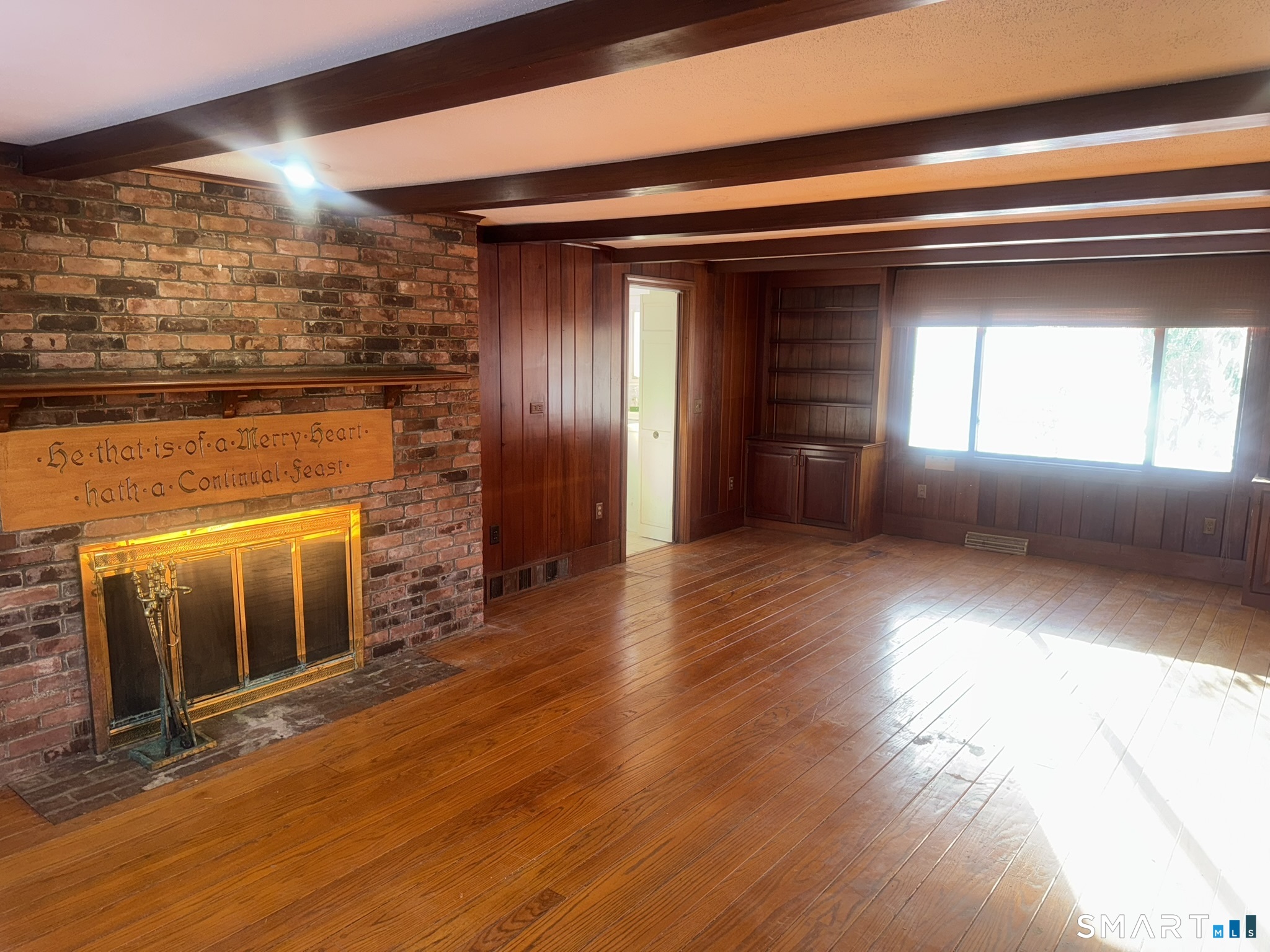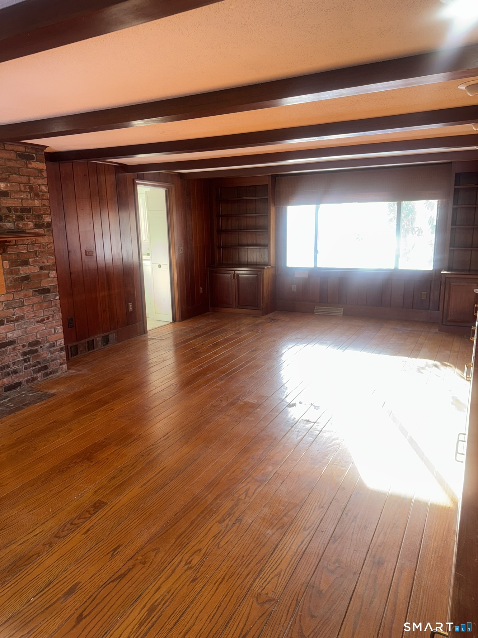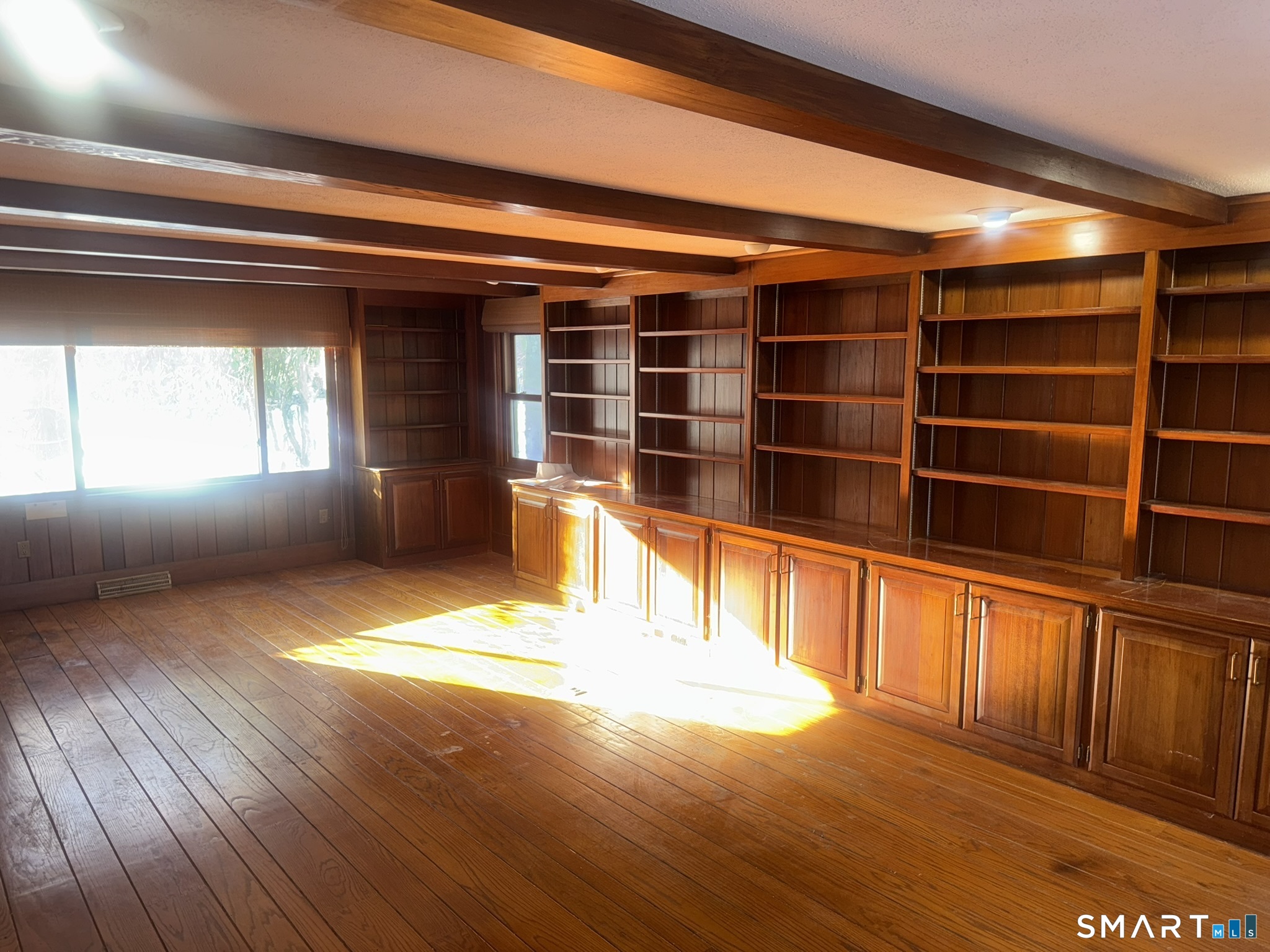 Handy man special with incredible potential, some lake views and surrounded by $million homes. Bring your vision to this 2 bedroom 1.5 bath home brimming with opportunity. Offered AS IS, this property is ideal for investors, renovators, or buyers looking to re-design and re-imagine the layout to suit today's living. This home features 3 fireplaces located in the primary bedroom, living room, and family room. The family room is the standout space of the house showcasing elegance, the fireplace, wide plank hardwood floors, beams and built in book cases and true warmth. A true inviting atmosphere. Throughout the rest of the home, beautful hard wood floors lie beneath the existing carpet. Some rooms enjoy peaceful views of Wood Pond/Woodridge Lake and lightly wooded scenes enhancing the homes natural setting. There is a great sunroom off the living room with floor to ceiling windows bringing you close to nature. Off the sunroom is a slider to a patio with views of Wood Pond across the street. The house is equipped with forced hot air, CAIR and an oversized garage! This is a chance to create instant equity with solid bones, an amazing location, and a chance to create something special. Like you watch on tv!!!!