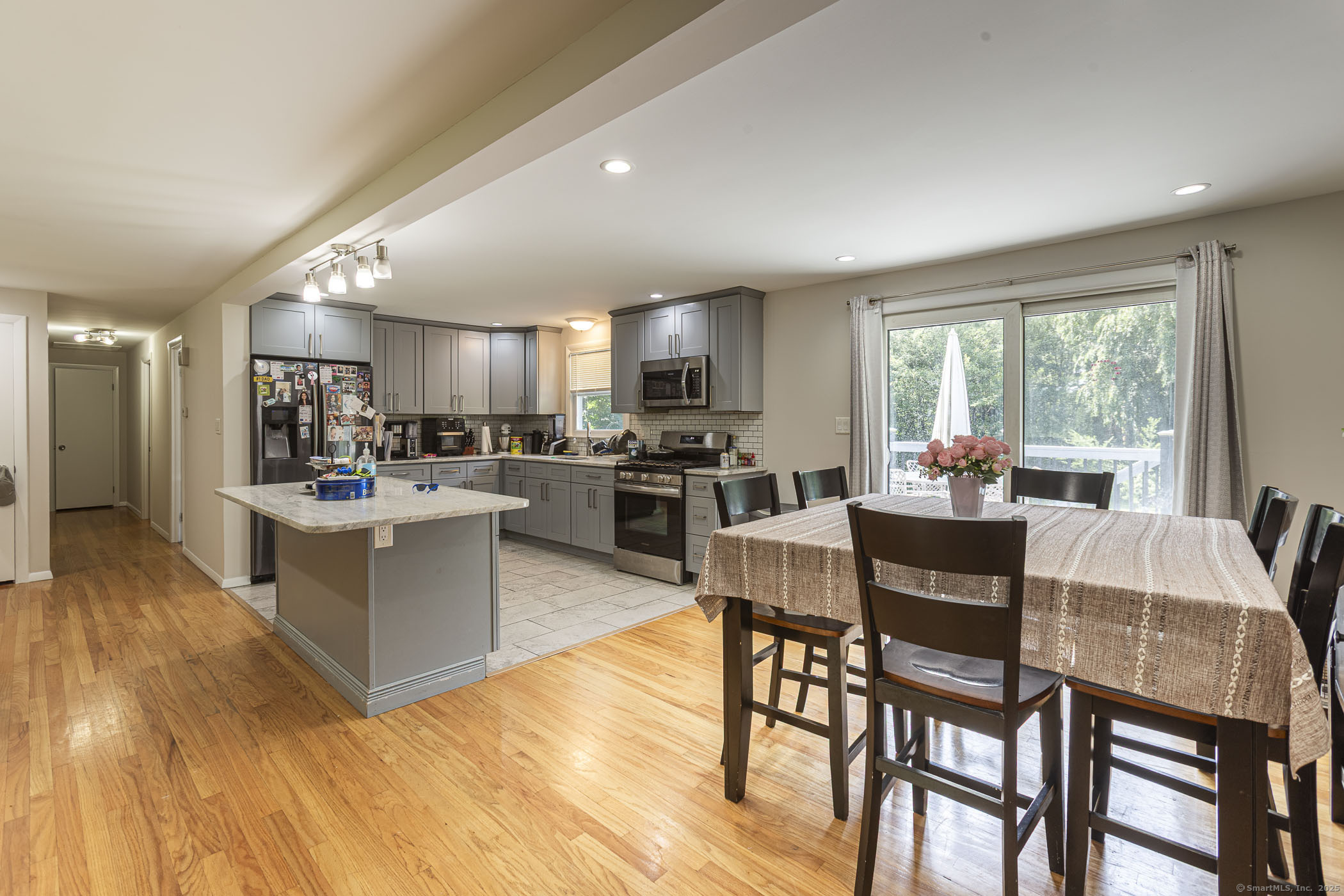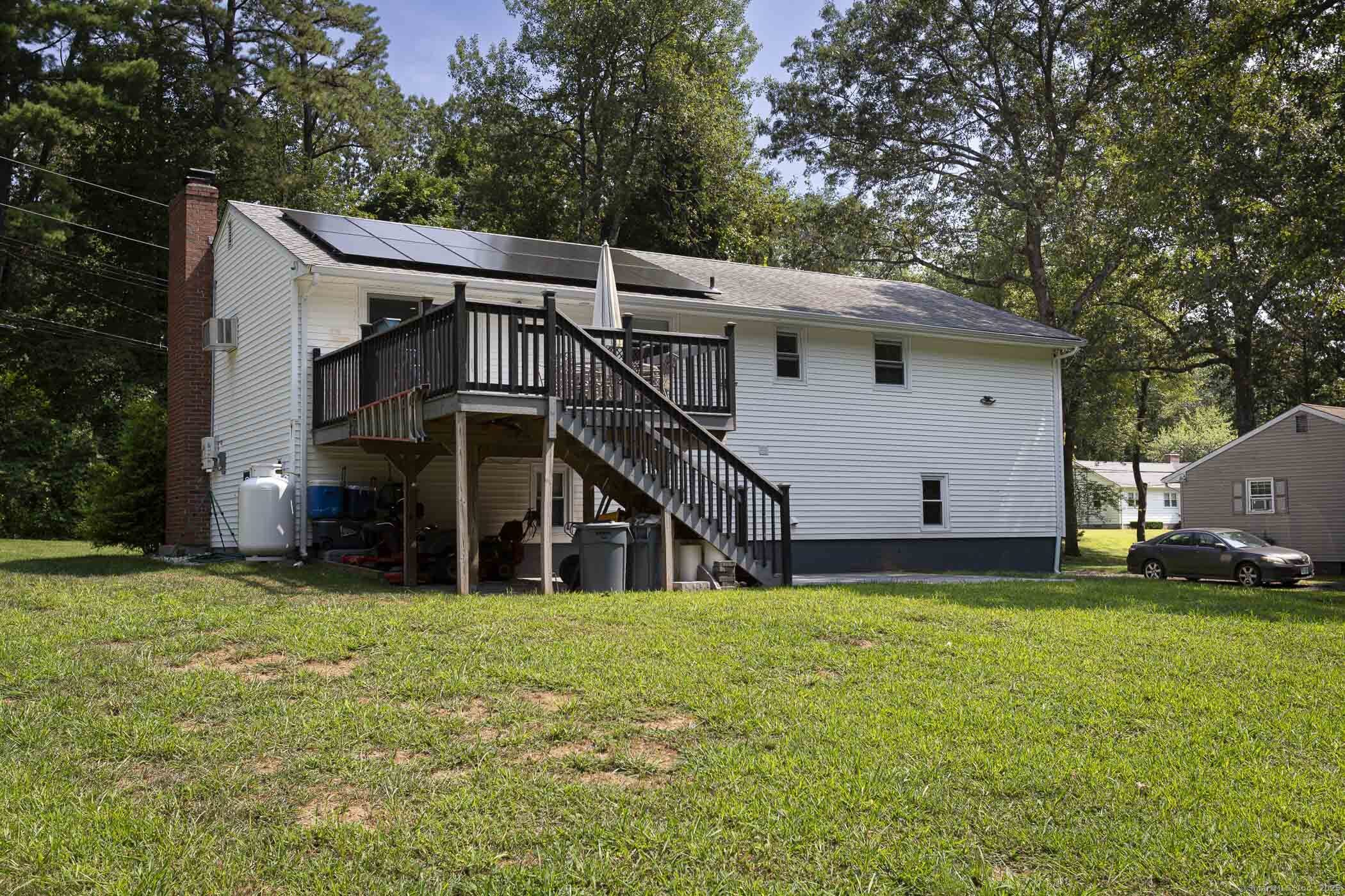 LOOKING FOR A QUIET AREA TO LIVE IN ? This updated Raised Ranch on 0.75 Acres in Windsor might be the one you looking for. Beautifully remodeled in 2017 and meticulously maintained, this 3-bedroom, 2-bath Raised Ranch offers move-in-ready comfort with all major updates complete. The main level features an open-concept layout with a remodeled kitchen showcasing granite countertops, an island, and stainless steel appliances, seamlessly flowing into the dining and living areas with refinished hardwood floors. The finished lower level provides additional living space, including a family room, access to a patio, and a full bath-perfect for guests, a home office, or a workout area. Recent updates include new septic system, new public water connection, newer roof, newer windows, updated electrical panel, newer oil boiler, newer water heater, new solar panels and freshly painted interior trim, doors, baseboards. Make your appointment now and see our virtual tour.