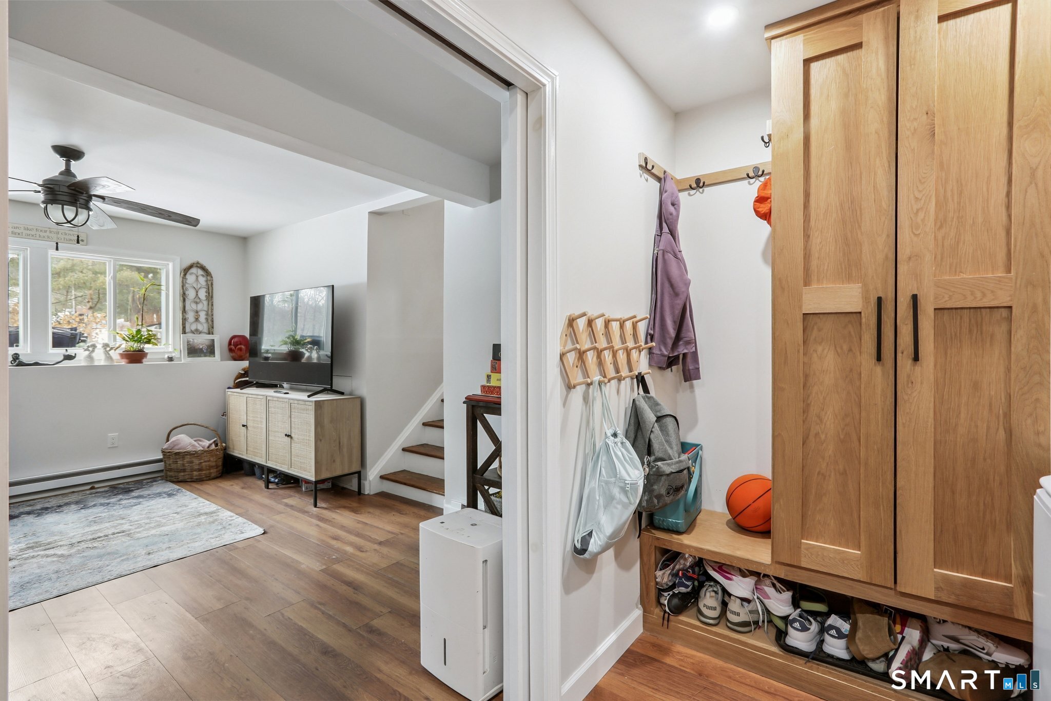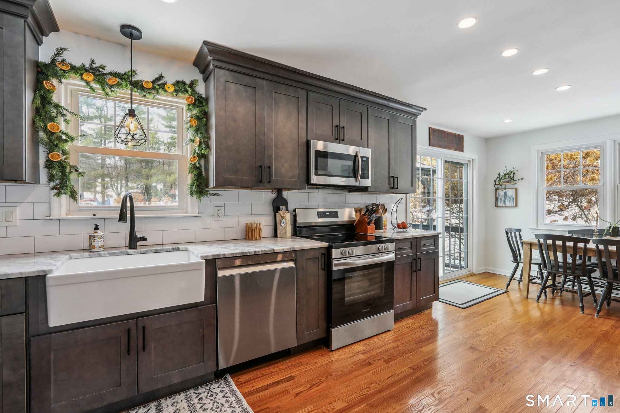 This home checks off all the boxes on your wish list! Four bedroom, 1 1/2 bath home, nicely set on a beautiful, level lot. Enter into the warm, inviting living room, with vaulted ceiling, wall to wall fireplace with pellet stove insert, & hardwood floors throughout this level. The remodeled kitchen is a joy to work in- all new cabinets, subway tile backsplash, quartz countertops, stainless appliances, and a beautiful dining area. Sliders lead out to a good sized deck, overlooking a spectacular back yard, great for outdoor fun and entertainment, and there is an electric dog fence. A few stairs lead you to the upper level, hosting 4 bedrooms, 1 1/2 baths, and hardwood throughout. The lower level is also just a few stairs down, with a remodeled family room, and an amazing combination mud room, laundry room, with tons of beautiful built in storage cabinets. This home has been meticulously maintained, with all of the right updates: kitchen 2021, stainless appliances 2024, roof 2022, electrical panel 2024, driveway 2025, split system 2023, and tankless hot water system 2024. The pellet stove is a huge energy saver, as it provides heat for the whole house! Conveniently located to schools, shopping, and entertainment, and close to parks, and of course beautiful Candlewood Lake, this house is one you won't want to miss!