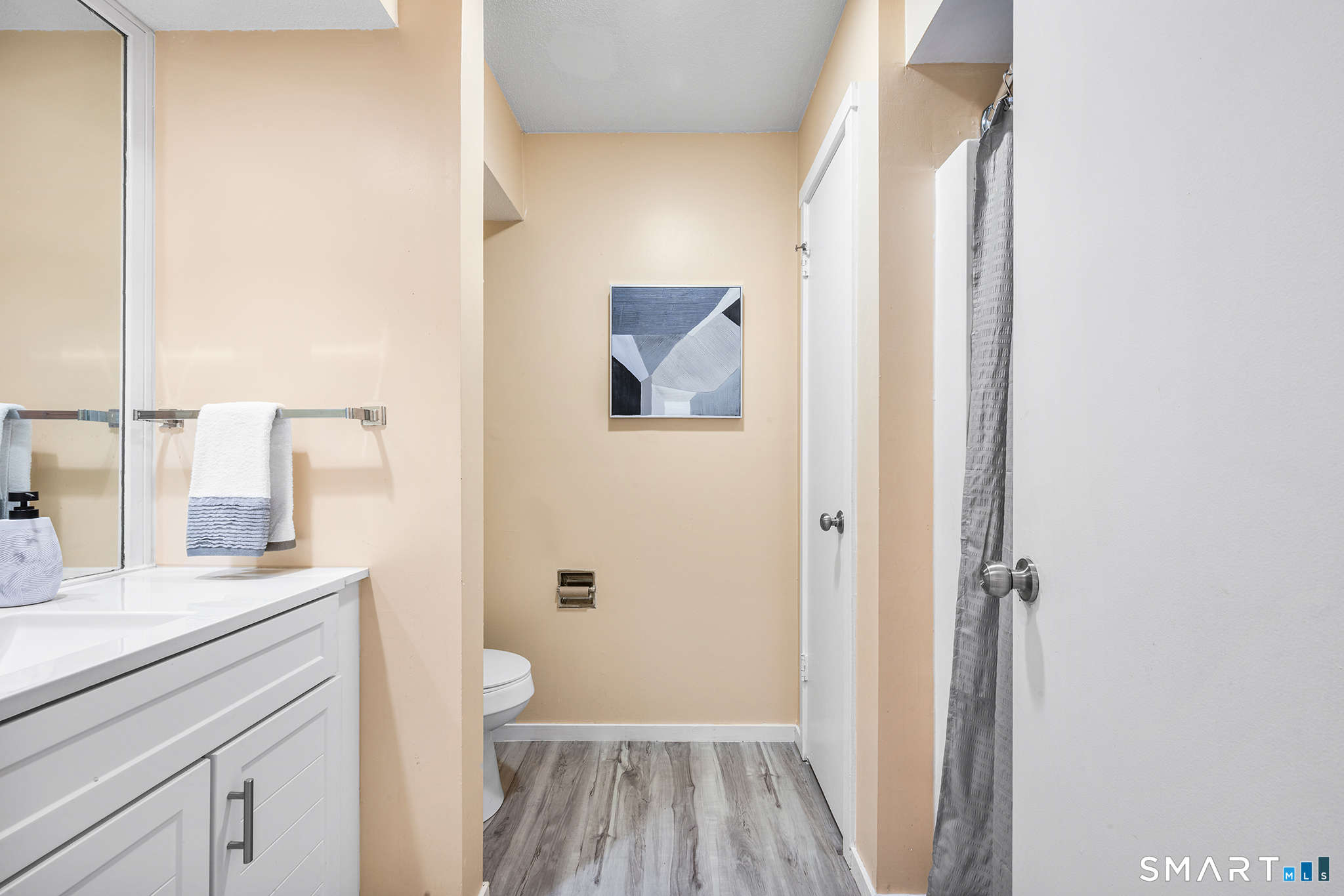 The ideal blend of value and move in readiness intersect at this stunning 1st fl, one level condo in Farmington Woods! With an ideal location and coveted amenities including multiple pools, sports courts, walking trails, 18 hole golf course, & a full service restaurant / clubhouse onsite, residents enjoy a resort-like lifestyle in an impeccably maintained setting. All of the heavy lifting has been done: fresh paint throughout, new flooring, new bathroom fixtures & vanities, & a BRAND NEW KITCHEN! Enter to a sunplashed open floorplan with an ideal layout for both relaxing & home and entertaining! Oversized windows in all the right places allow you to take in the verdant fairway views. The spacious living room can swallow your largest/most comfortable furniture and has seamless flow to a private patio ideal for grilling & al fresco dining. Large dining area easily can accommodate seating for 6+. Remodeled kitchen features new cabinetry, stone countertops, and new S/S appliances & there's additional space for more storage or a cheery breakfast nook. The massive primary suite has exceptional closet space and a completely updated ensuite bath. Spare BR with double closet and another full, renovated bath round out this stellar, approachable floorplan. Excellent storage throughout + easy access to a full-sized garage stall. W/D in unit, AC. Enjoy myriad retail & dining destinations, access to outdoor recreation, and the best of the Farmington Valley at your fingertips! You're HOME!
