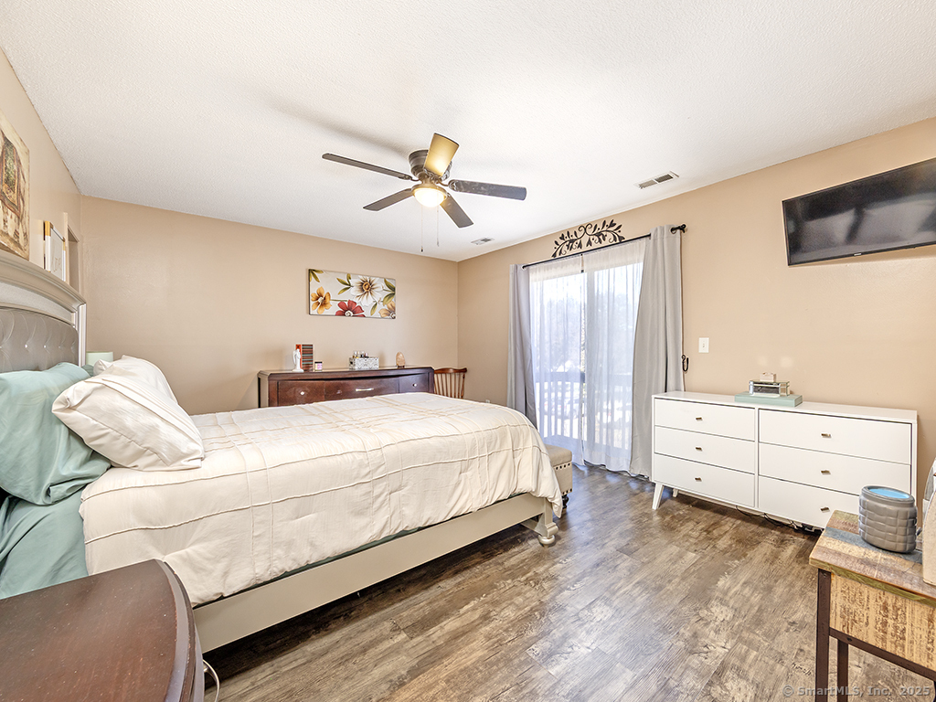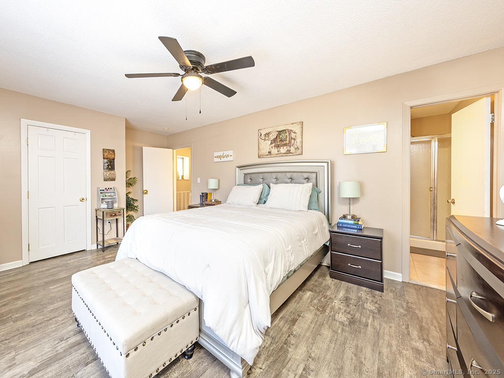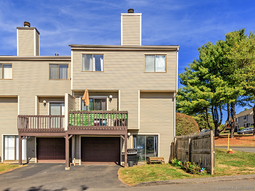 Great opportunity to live in the highly desirable Sterling Village community in this rarely available 3 bedroom, 2.5-bath unit. This spacious, yet cozy, condo features an open floor plan filled with natural light. The large living room includes a cozy fireplace and sliders that open to a private deck, perfect for relaxing or entertaining. The kitchen is equipped with newer stainless steel appliances, and the windows and slider were replaced in 2018. Upstairs, the primary bedroom suite offers pure serenity and is truly one of the highlights of the home, featuring a full bathroom, walk-in closet, and a private balcony,an ideal spot to enjoy your morning coffee or unwind on a beautiful summer evening. 2 additional bedrooms and another full bath complete the upper level. Additional features include central air for year-round comfort and a partially finished walk-out basement that provides flexible living space. Previously used as a yoga studio, office, and crafting area, this room includes a slider that opens to a patio and grill area.The unit also offers a one-car garage under the unit, a driveway parking space, and an additional parking spot in the lot in front of the home. Enjoy the many amenities Sterling Village has to offer, including a clubhouse, pool, and sports courts-resort-style living at its best. Conveniently located near restaurants, shopping, and major highways, including Interstates 691 and 91, and Routes 5/15. Seller has paid current assessment!