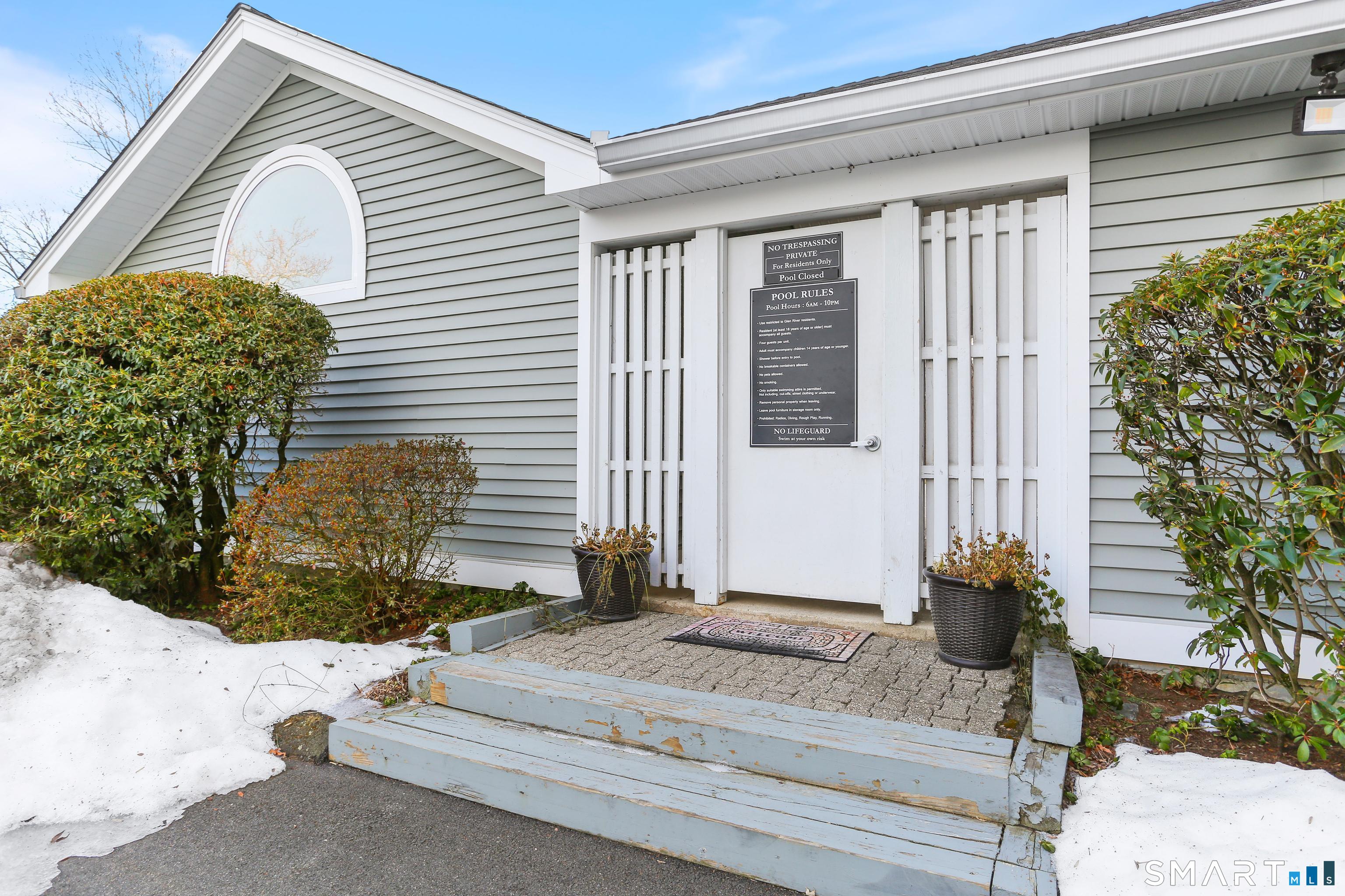 Discover living at Glen River East in the heart of Wilton town center near boutique shops, Schenck's Island trails & seasonal community events. Tucked behind the building, this updated 1 BR home offers wooded views & easy one-level living. Foyer w/ coat closet, dedicated laundry rm & utility closet provides excellent storage. Open concept main living drenched in sunlight. LR enveloped in windows & hardwood flrs create an airy, comfortable feel. The DR is complimented by a statement lighting fixture & connects naturally to the LR w/sliders to deck for indoor/outdoor enjoyment. Timeless galley style kitchen offers warm wood cabinetry, dark counters & decorative tile backsplash. Updated stainless appliances, stylish new overhead lighting, a pass-thru to DR & pantry create a space that is refined & functional. The generous BR retreat w/soft light & calm atmosphere provides 2 full-length closets that form a hall to the full bath, maximizing storage while keeping the sleeping area uncluttered. Sumptuous refreshed full bath w/glass-enclosed shower & contemporary finishes is sure to delight. True laundry rm w/stackable w/d offers space for shelving/folding. Utility rm w/addtl storage & provides a pegboard organizer to maximize vertical space. A long elevated deck takes in tranquil views of nature, w/private exterior storage closet & stairs to the grounds, ideal for quick steps out with a pet. Residents enjoy an outdoor pool w/pool house perfect for gathering, unwinding, & summer fun.