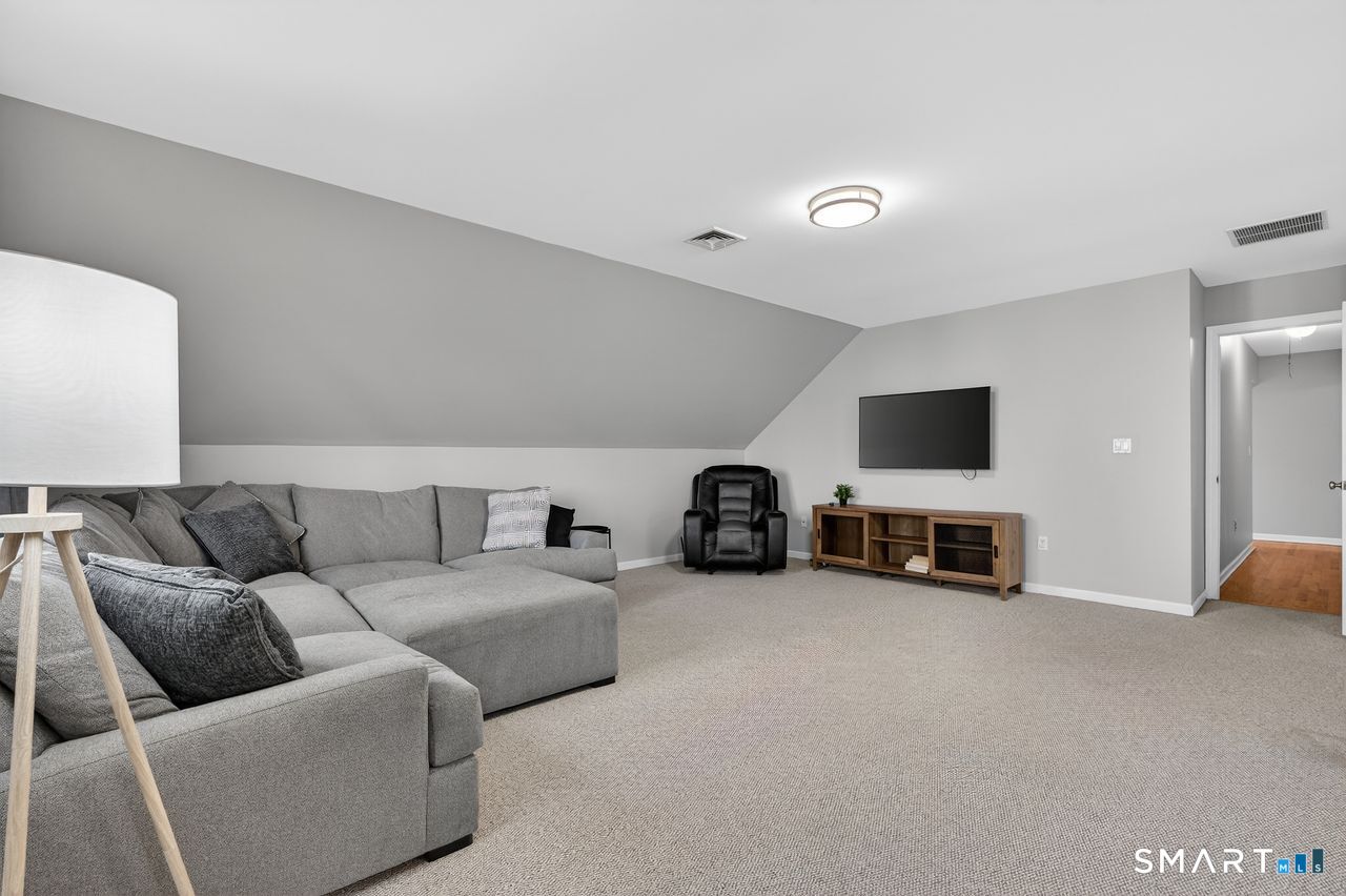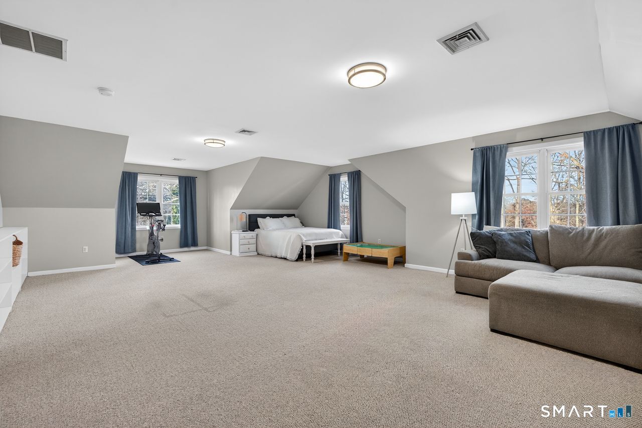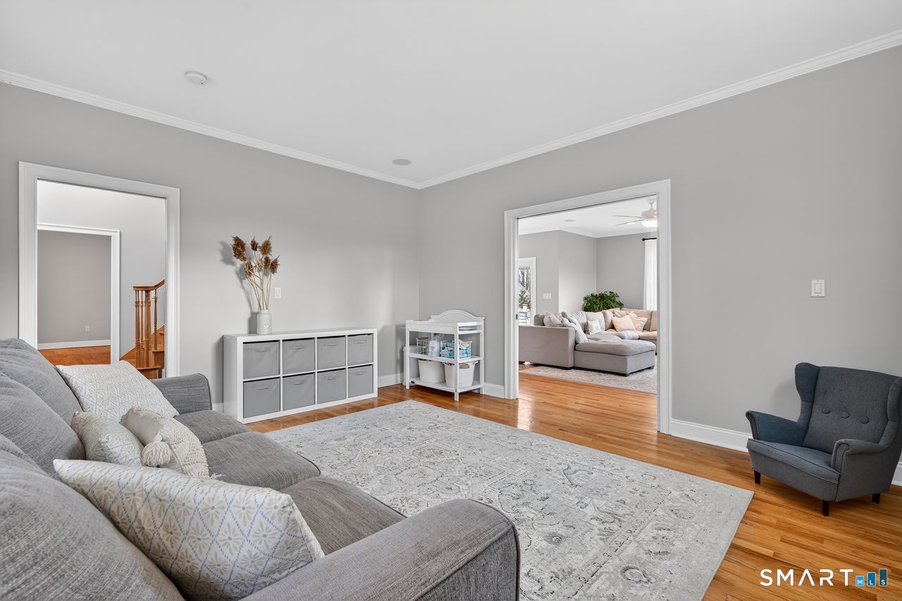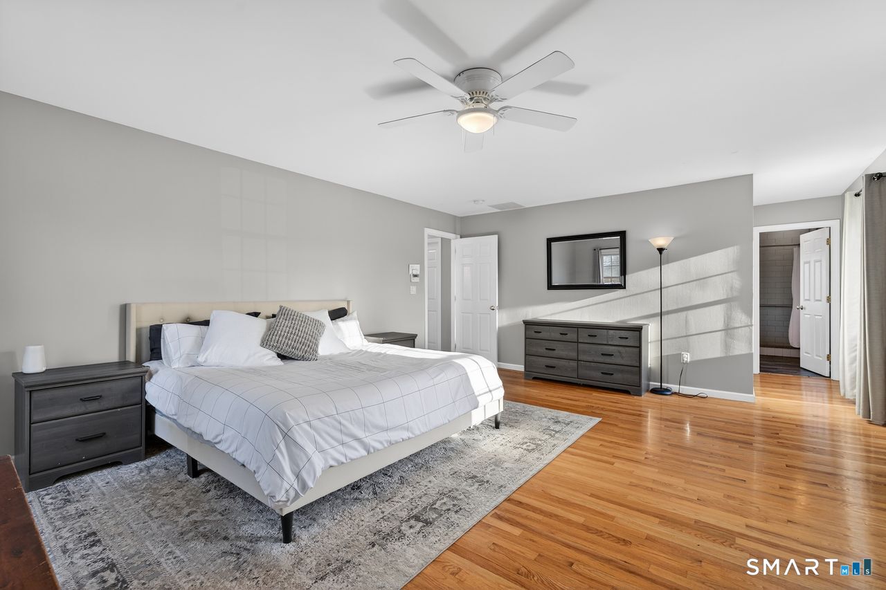This beautifully maintained 4 bedroom, 3 full and 1 half bath home offers exceptional space, comfort and curb appeal. Thoughtfully designed, the flexible floor plan includes a first floor primary bedroom with ensuite full bath -ideal for guests or multigenerational living The second floor primary bedroom with an additional ensuite full bath features a spacious walk-in closet. The open, eat-in kitchen is appointed with a granite center island, granite countertops and double wall ovens. A slider leads to a generous Trex deck overlooking a large, level backyard. The light-filled family room features a cozy gas fireplace framed in stone. A formal dining room and a separate living room or home office provide ample space for everyday living and special gatherings. The second floor great room adds versatility for a playroom, media room, office or additional living space. The full unfinished basement has abundant shelving and endless potential. Additional highlights include a welcoming covered front porch, 9-foot ceilings on the first floor, a two car attached garage, city water and sewer, and a whole-house Generac generator for peace of mind. Outside, a large outbuilding provides tremendous storage or workshop possibilities. New roof in 2021.Two new AC compressors in 2021. New hydro air unit in 2021. Driveway sealed in 2021. Just a short distance to Branford's beaches, town center, shopping, dining and commuting routes, this exceptional home truly has it all.