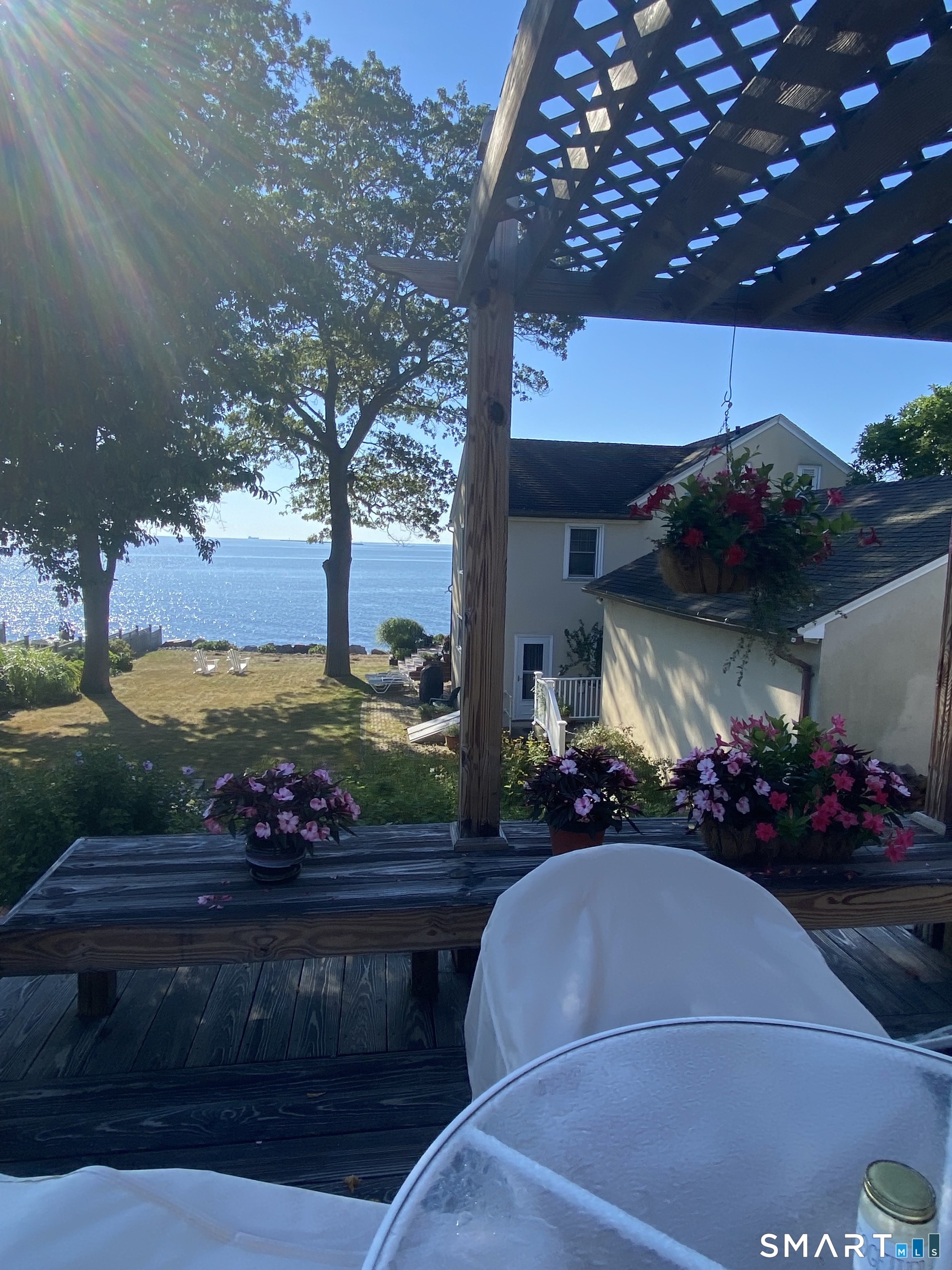 Fabulous waterviews without the need of flood insurance! Swim, Sail, Fish-Move right into this sunlit, warm ranch located in the sought after "Aims Point" area. Perfect for a summer getaway, downsizing, or upgrading to a 2 story! As you enter, a spacious living room with calming waterviews, brick fireplace, bookshelves and beautiful hardwood floors. A formal dining room with built in corner hutches and beautiful hardwood floors, adjoins the spacious kitchen with vaulted ceiling with skylights, breakfast bar and waterviews. You will fall in love with the rear heated family/sunroom with vaulted ceilings, abundance of windows welcoming plenty of natural light, stunning views of the water and lovely perennial gardens. From the desirable family/sunroom, step outside to your deck with even more breathtaking gardens and Long Island Sound views, your own private paradise. Continuing on the main level, a full ceramic tile bath, a spacious primary bedroom with double closet and an additional nice sized bedroom with closet. Notable mentions, an unfin basement with full bath and plenty of storage, a 2-car detached garage with loft storage. Perfectly located on an almost never traveled dead end/ elevated above sea level street! A short drive to beautiful sandy beaches, Bradley Point Park, a beautiful 3-mile waterfront walkway, picnic groves and waterfront playground. Minutes to great restaurants, West Haven train station and Interstates. Don't miss this amazing coastal opportunity!!