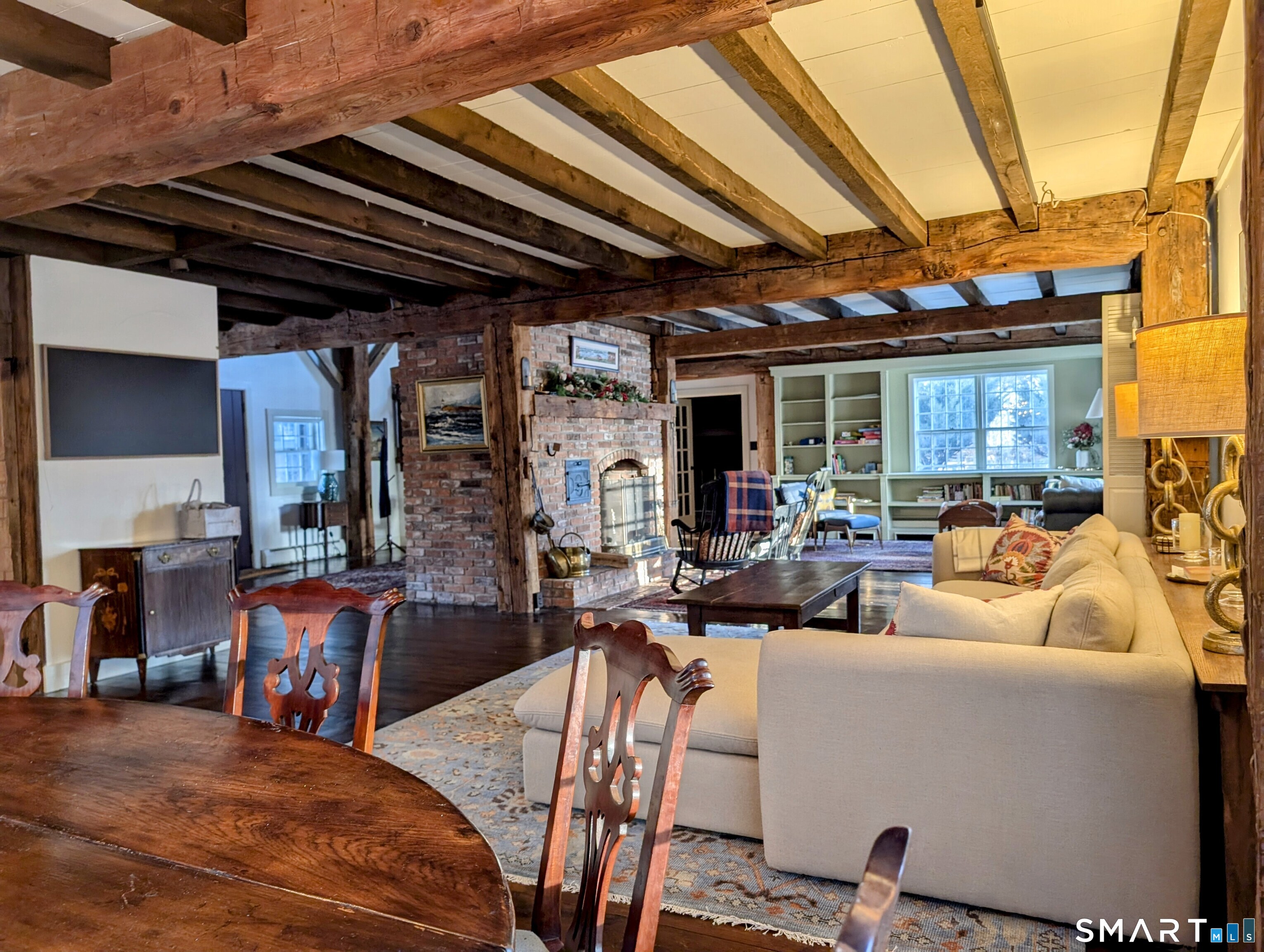 Spend the season in Litchfield County during one of the best ski winters in more than a decade, in a distinctive Connecticut barn-style home set in a quiet corner of Washington Depot. The original barn exterior is rustic, while the interior is warm, understated, and chic, with exposed beams, wide-plank floors, and a wood-burning fireplace at the center of the main living space. First-floor primary suite with fireplace, with two additional bedrooms and a full bath upstairs. Snow-covered fields and long winter light filtering through pine trees create a postcard-pretty setting, making it an easy place to slow down and settle in. Country roads lead directly to the Bantam River for crisp walks on crystal-clear, blue-sky days, while town amenities remain close at hand. New Preston is just five minutes away for casual, tavern-style spots, and great shops. Litchfield is ten minutes away, offering a wide range of dining, shopping, and cultural options. Woodbury-also ten minutes away-has become one of Connecticut's strongest food destinations, with a growing market and restaurant scene. Mohawk Mountain is approximately 30 minutes away for skiing. A rare opportunity to enjoy a rural retreat with excellent access to some of the region's best towns. Available for flexible terms. please inquire.