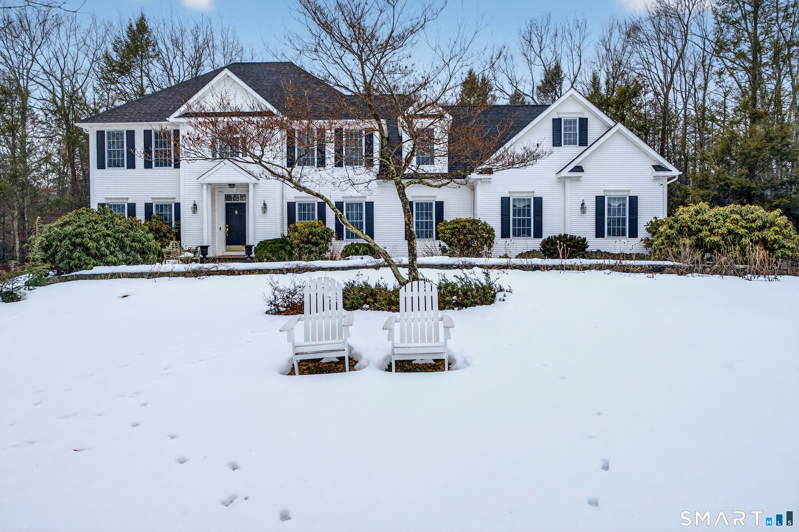 This majestic 4-bedroom Colonial is perfectly set in one of Southbury's most prestigious cul-de-sac neighborhoods.From the sweeping front lawn to the timeless curb appeal, this home radiates pride of ownership.Boasting a versatile floor plan, the interior features freshly painted rooms & gleaming, refinished hardwood floors that flow seamlessly throughout the main level.The grand two-story foyer provides a dramatic welcome, flanking formal living & dining rooms.At the heart of the home, the country kitchen is bathed in natural light,complete with granite counters,a center island & double ovens. A generous eat-in area opens to an expansive deck,perfect for summer gatherings.Relaxation awaits in the spacious great room,where a cozy fireplace serves as the focal point, overlooking a private,serene backyard that abuts peaceful open space.The main level also features a versatile flex room-ideal for an office, playroom or guest quarters. Accessible via front or rear staircases,the upper level features a primary suite with vaulted ceilings & 3 additional bdrms.A reading nook with views & an enormous multi-purpose room offers endless possibilities. Significant investments provide total peace of mind:a BRAND NEW ROOF & many updates. The meticulously cared-for grounds feature perennial gardens, flowering trees & a premium Barnyard shed.The walk-out unfinished lower level offers incredible potential for a gym, media room, or in-law setup.Turn-key & thoughtfully updated-Welcome Home!