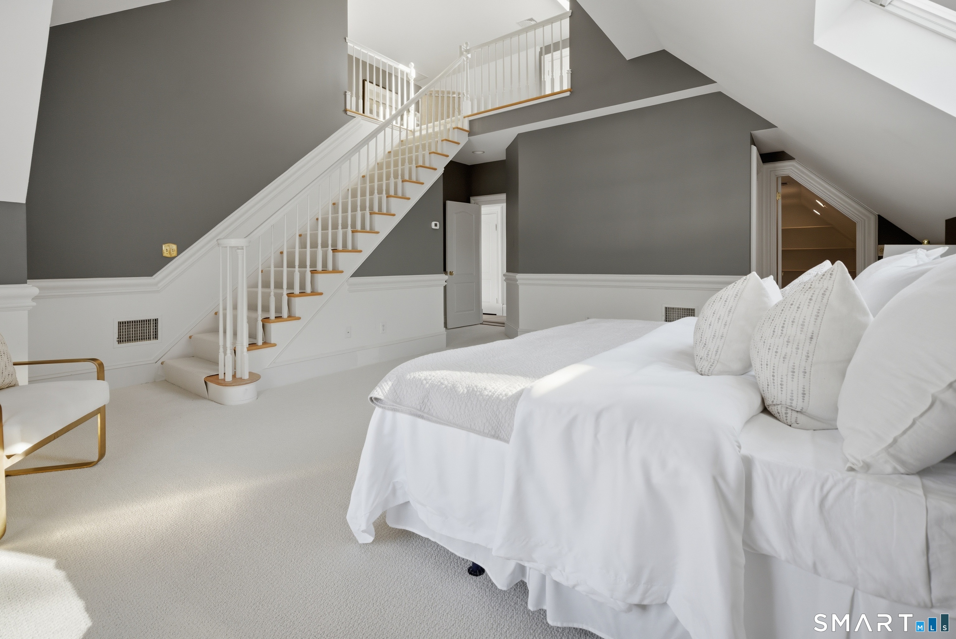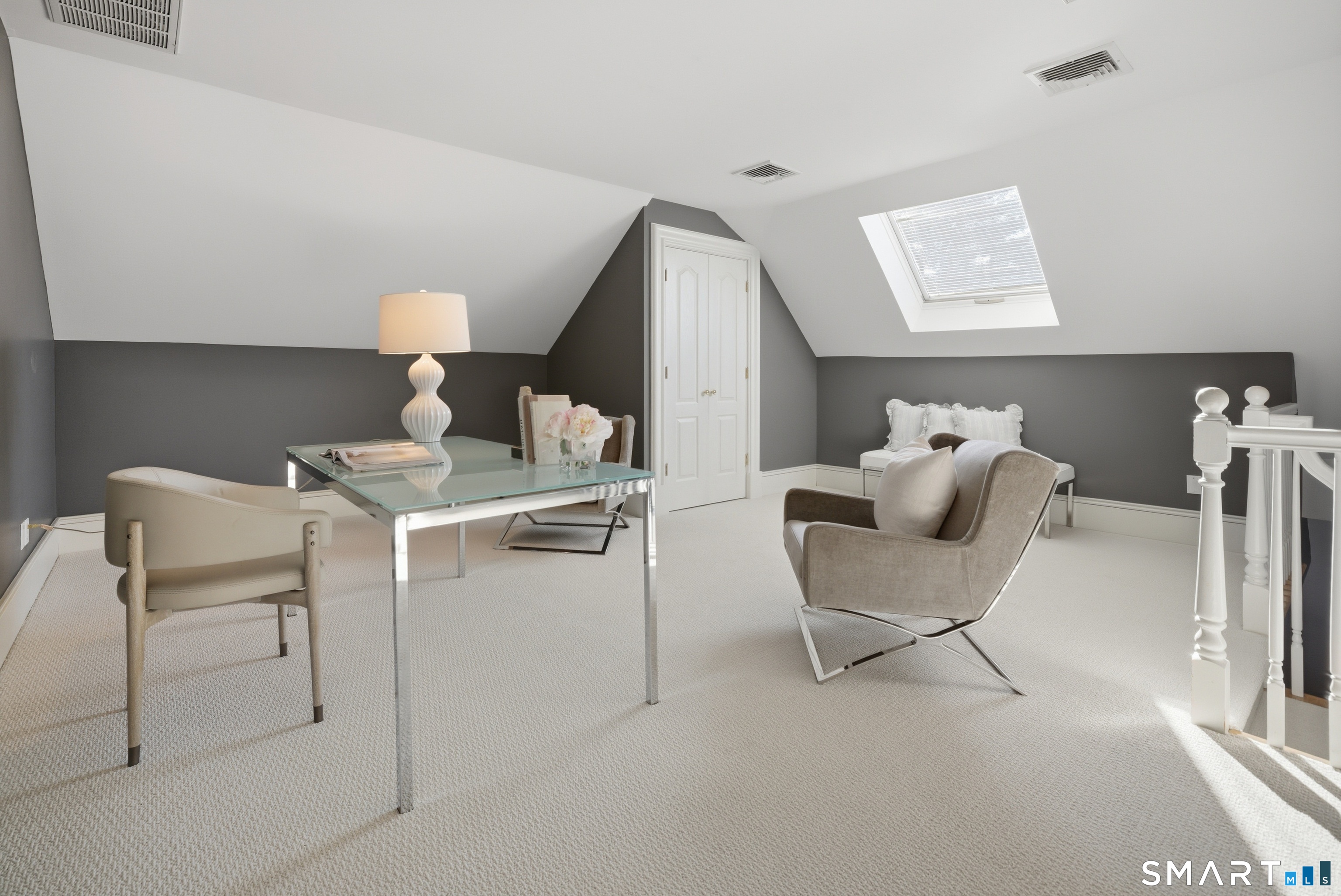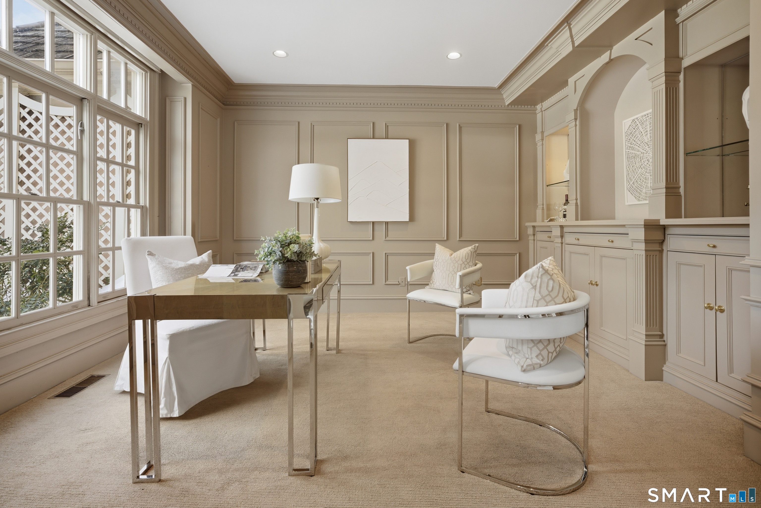 Located within a private and beautifully maintained enclave in Fairfield, 106 Stillson Road offers refined, turnkey living that truly feels like a single-family home-with the ease of condo ownership. From the moment you enter, the dramatic two-story foyer sets the tone, showcasing elegant millwork, elevated finishes, and a stunning central staircase. Just off the foyer, a richly detailed study features custom built-ins and a wet bar-ideal for working from home or entertaining. The main level continues into a warm and inviting family room with a wood-burning fireplace and direct access to a private, oversized patio. At the heart of the home, a light-filled dining room with a wall of windows connects seamlessly to the open kitchen, equipped with Viking appliances, an eat-in area, pantry, and easy access to the two-car garage. Upstairs, the expansive primary suite is a true retreat, featuring double-door entry, a fireplace, dual walk-in closets with custom storage, and a spa-like bath with soaking tub, glass-enclosed shower, double vanities, and water closet. Two additional bedrooms each offer en-suite baths, including one with brand-new wall-to-wall carpeting, a walk-in closet, and a lofted bonus space perfect for a home office or reading nook. A dedicated laundry room completes the second floor. The finished lower level is designed for entertaining and relaxation, featuring a media room with built-ins and gas fireplace, a dedicated gym space and abundant storage.