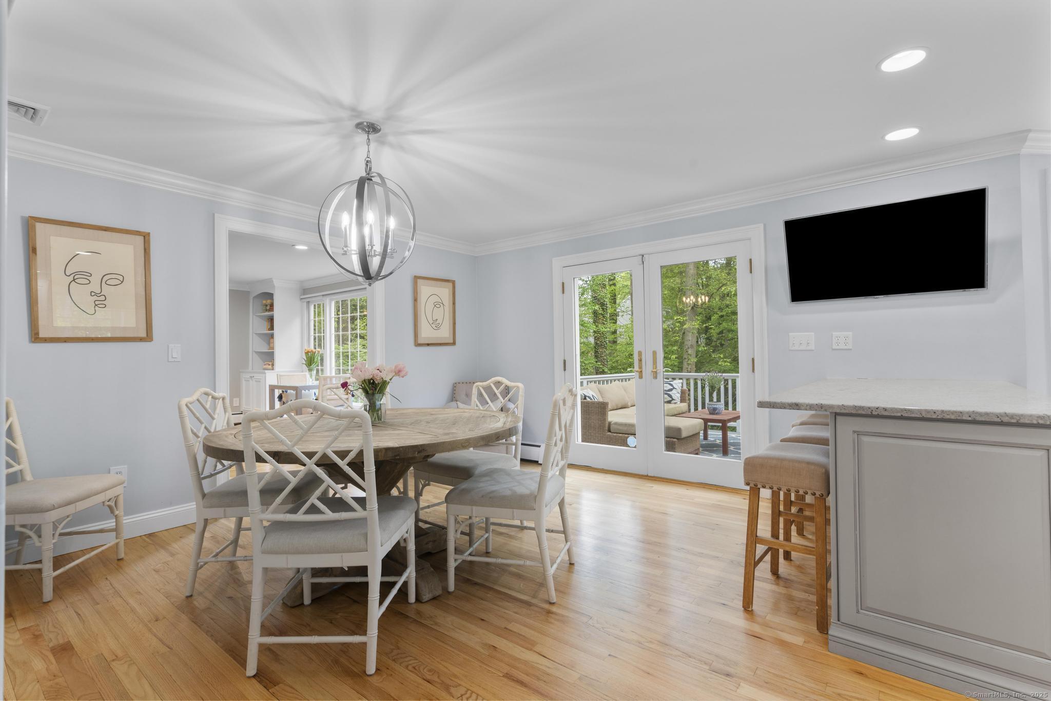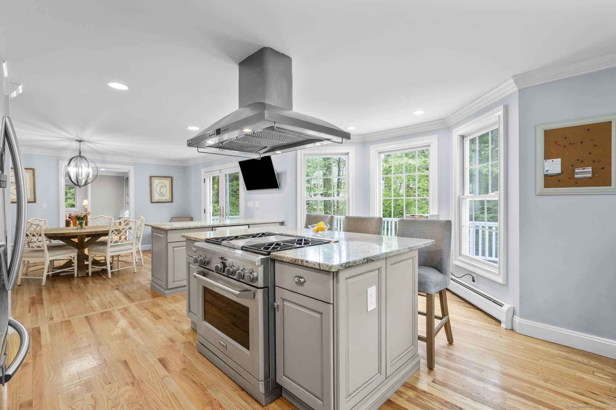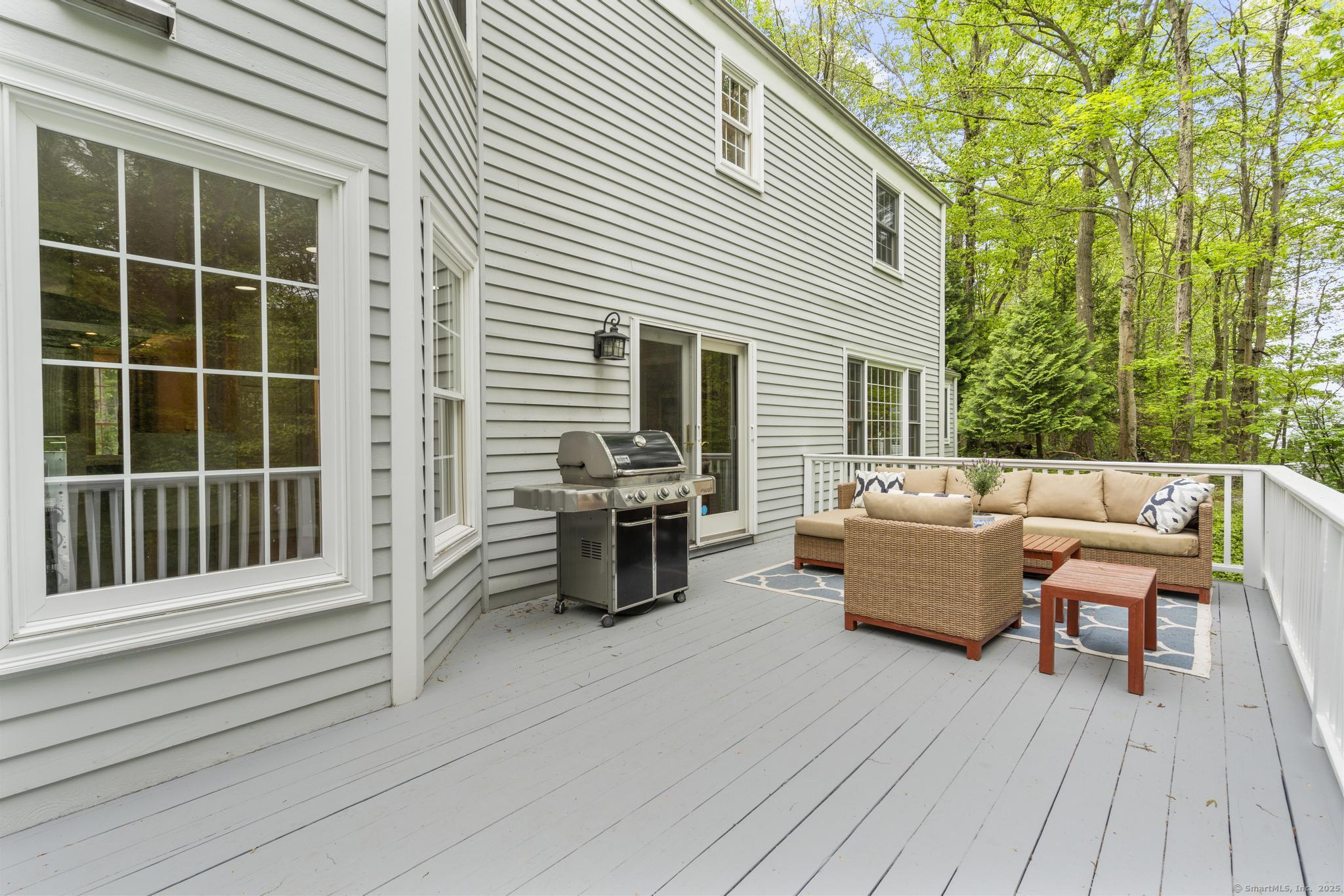 Timeless Colonial with Modern Comforts and River Views Nestled on a quiet cul-de-sac, conveniently located close to town this beautiful updated 4 bedroom, 2 full and 2 half bath Colonial that seamlessly blends classic charm with modern convenience. The open floor plan enhances the sense of space, while oversized windows fill the home with natural light. The heart of the home is the updated kitchen, featuring stainless steel appliances, a center island with breakfast bar, and easy flow into the formal dining room making it ideal for everyday living and entertaining. The formal living room with fireplace adds warmth and sophistication. A powder room and fourth bedroom or office complete the first floor. Upstairs, the primary suite features high ceilings, 2 large walk-in closets, and a private bath. Two additional bedrooms share a well-appointed hall bath. The finished walk-out lower level offers even more living space, complete with a fireplace, half bath, and room for a media area, home gym, or playroom. Step outside to a deck overlooking the Five Mile River, where nature provides the perfect backdrop for relaxation or gatherings. Recent updates include a new roof, driveway, new garage doors, central AC, two renovated half baths, walkways, doors, and updated landscaping. A generator provides year-round peace of mind.