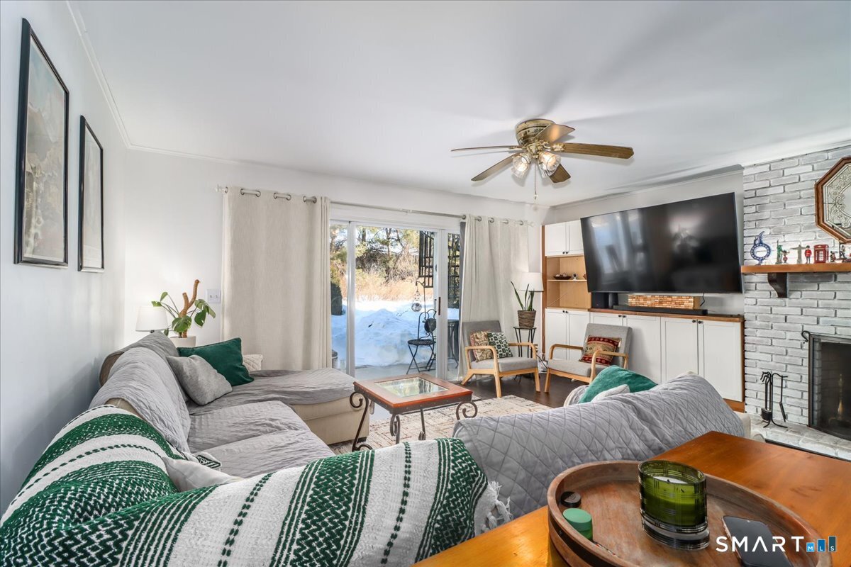 Welcome to this spacious and inviting condo offering 1,090 square feet of comfortable living. Convenient first-floor, end unit location with easy access to the building. Updated kitchen with modern cabinetry and quartz countertops. 2 generous bedrooms with ample closet space. Stackable washer and dryer in the unit. Living room with fireplace and slider door to an outdoor patio to enjoy summer nights. Additional storage and laundry facilities are available. Close to shopping, dining, childcare and walking distance to the Flea Market. Whether you're a first-time buyer, downsizing, or looking for a great investment, this condo offers comfort, convenience, and value in one perfect package!
