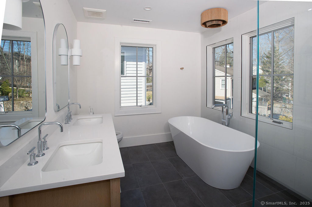 PRISTINE, 2024 New Construction by Cypress Development in Prime New Canaan Location offering a new detached townhouse. Experience luxury living in this beautifully designed 3-bedroom townhouse, just a short stroll from downtown New Canaan. This new construction showcases an impressive open floor plan, with 9' ceilings and a seamless flow throughout the main living spaces. The gourmet kitchen, equipped with custom cabinets, granite countertops, and high-end appliances is perfectly integrated with the dining area, making it ideal for both casual meals and formal gatherings. The open living room offers a cozy retreat, featuring a modern fireplace that adds warmth and ambiance to the space. On the upper level, the Primary Suite offers a large walk-in closet and a luxurious spa-like bath with soaking tub, providing a serene space to unwind. Two additional bedrooms, two full baths, and a laundry room complete this floor. The fully finished third floor offers a versatile space, perfect for a media room or home office, while the fully finished lower level provides even more living options, with a recreation room and glassed-in gym. Expansive sliding doors lead to a private patio and green space, offering a peaceful outdoor area. Additional features include an attached 2-car garage. This townhouse is a perfect blend of luxury and functionality, offering spacious living in an unbeatable location.
