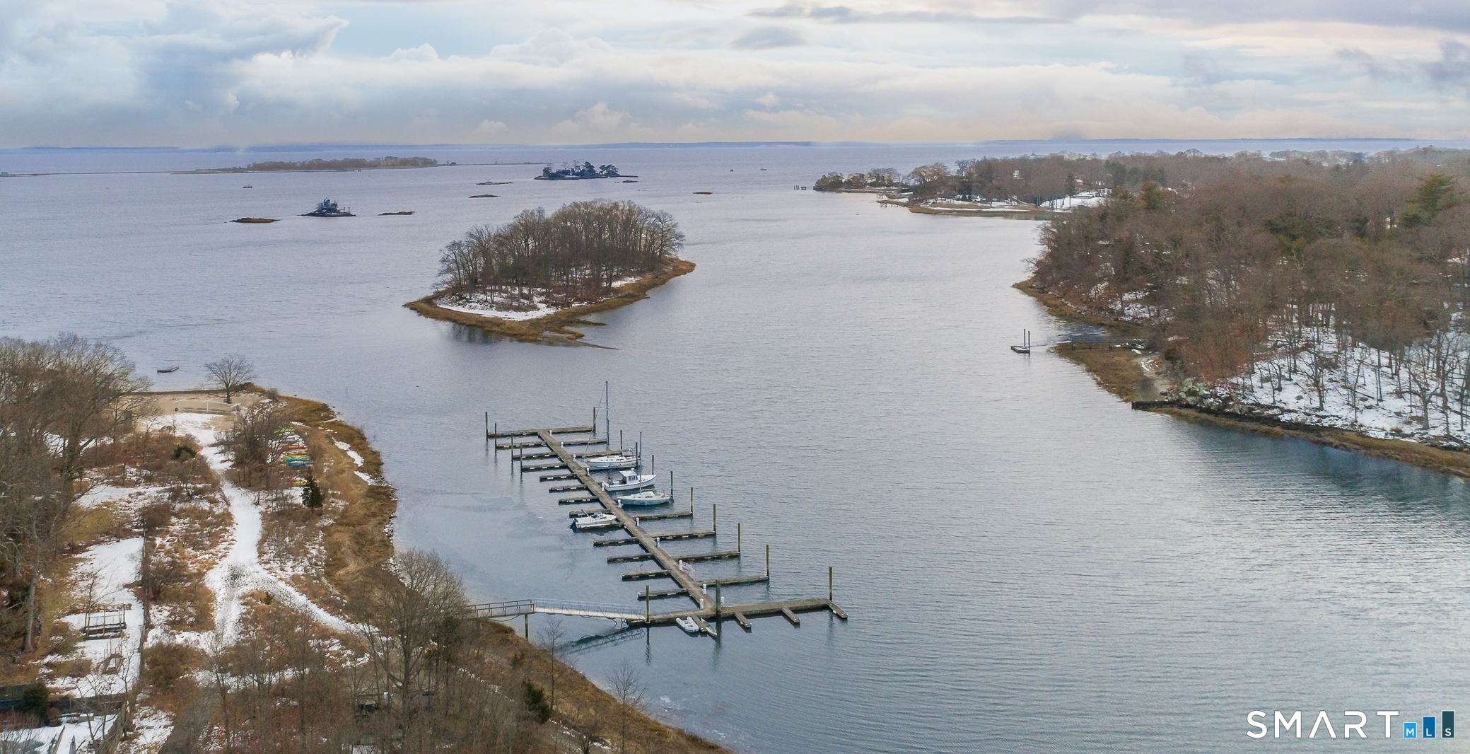 Fairfield County's Gold Coast best-kept secret. Located in the historic, mid-century enclave of Village Creek, this refined waterfront residence captures sweeping views of a protected 100-acre estuary. Owners enjoy an unparalleled array of private community amenities-including a private sandy beach, tennis courts, deep-water marina, paddle-craft storage, dog park, playground, and athletic field. Within the sought-after Rowayton school district and minutes from Metro-North and SONO's premier dining and shops. Soaring floor-to-ceiling windows frame panoramic coastal vistas and professionally landscaped mature gardens. The open living, dining, and kitchen areas flow seamlessly to multiple terraces including a secluded hot tub overlooking Long Island Sound. In addition, the main level features two bedrooms, two baths, and a family room. A sculptural open staircase leads to the expansive primary suite above -- two offices, dual walk-in closets, a marble steam bath, and a washer/dryer. A wrap-around deck with unobstructed vistas completes the ideal blend of work-from-home convenience with the comfort of a coastal retreat. The lower ground level features a 560 sq ft zoning-compliant accessory dwelling unit (ADU) with W/D, private entrance and parking-ideal for $2,000+/monthly rental income, guests, extended family, or a live-in nanny.