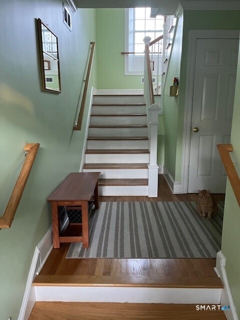 Offered for rent this second-floor apartment is ideal for seeking a tenant looking for a quiet living environment. This apartment is attached to the owner's main residence and situated on a quiet street just moments from downtown New Canaan and Metro-North. The apartment has a spacious bedroom with double sized closets and a full bathroom with shower and additional storage. A washer and dryer are conveniently located within the apartment. The main area includes an eat in kitchen and living room with gas fireplace. The apartment has great natural light, hardwood floors throughout, is fully furnished and outfitted with all the kitchen necessities. The heating and cooling system has its own thermostat. Utilities included, except gas heat. On premises parking for one vehicle with garbage/recycling disposal included.