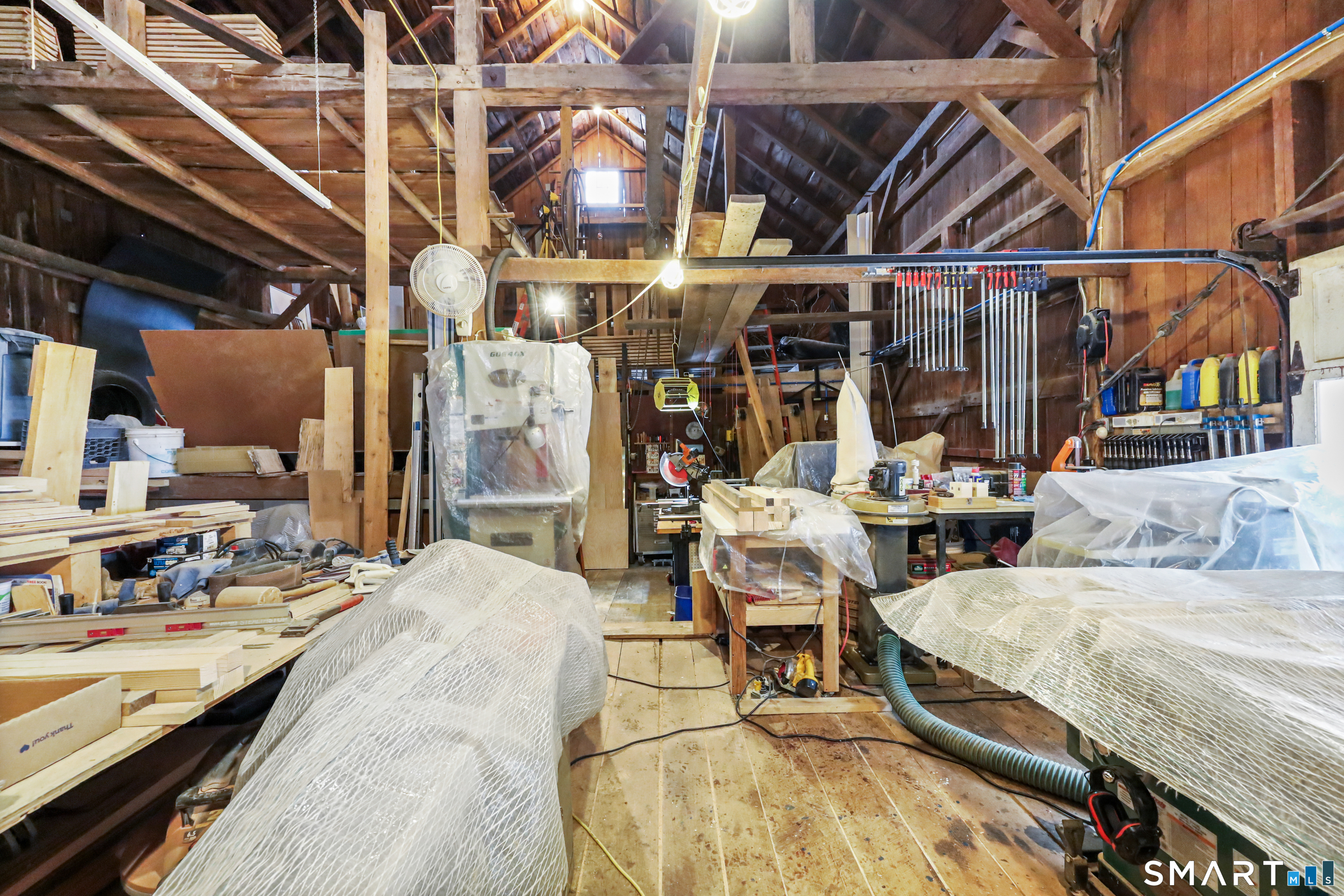 Discover the perfect blend of historic New England charm and modern comfort in this 1825 farmhouse set on nearly 8 acres of open fields, mature landscape, and a serene stream fed pond. This 4 bed, 3.5 bath home offers an inviting farmhouse style with thoughtfully updated spaces, original architectural details, and room to live, work, and play. A new custom country kitchen serves as the heart of the home, featuring handmade cabinetry crafted by a master woodworker, sueded granite countertops, stainless steel appliances, and a gas range. Adjacent is the formal keeping room, showcasing the original hearth with beehive oven, a pellet stove insert-an ideal gathering space with timeless character. Additional first floor living areas include a formal living room with fireplace insert and a cozy library/sitting room. A first-floor bedroom/den with ensuite half bath provides flexible living options. Upstairs, three additional bedrooms are complemented by a bright study/family room with skylights and a roughed in second story bathroom, offering potential for future expansion. Three separate staircases add to the home's historic charm and functionality. Original wide board chestnut floors run throughout, paired with newer mechanicals, a newer roof, and freshly painted interiors. The historic three-story 1900s post and beam barn stands as a centerpiece-ideal for storage, livestock, or creative use. A newer detached 3 bay barn, radiant heat, EV charger, and full 2nd story studio.