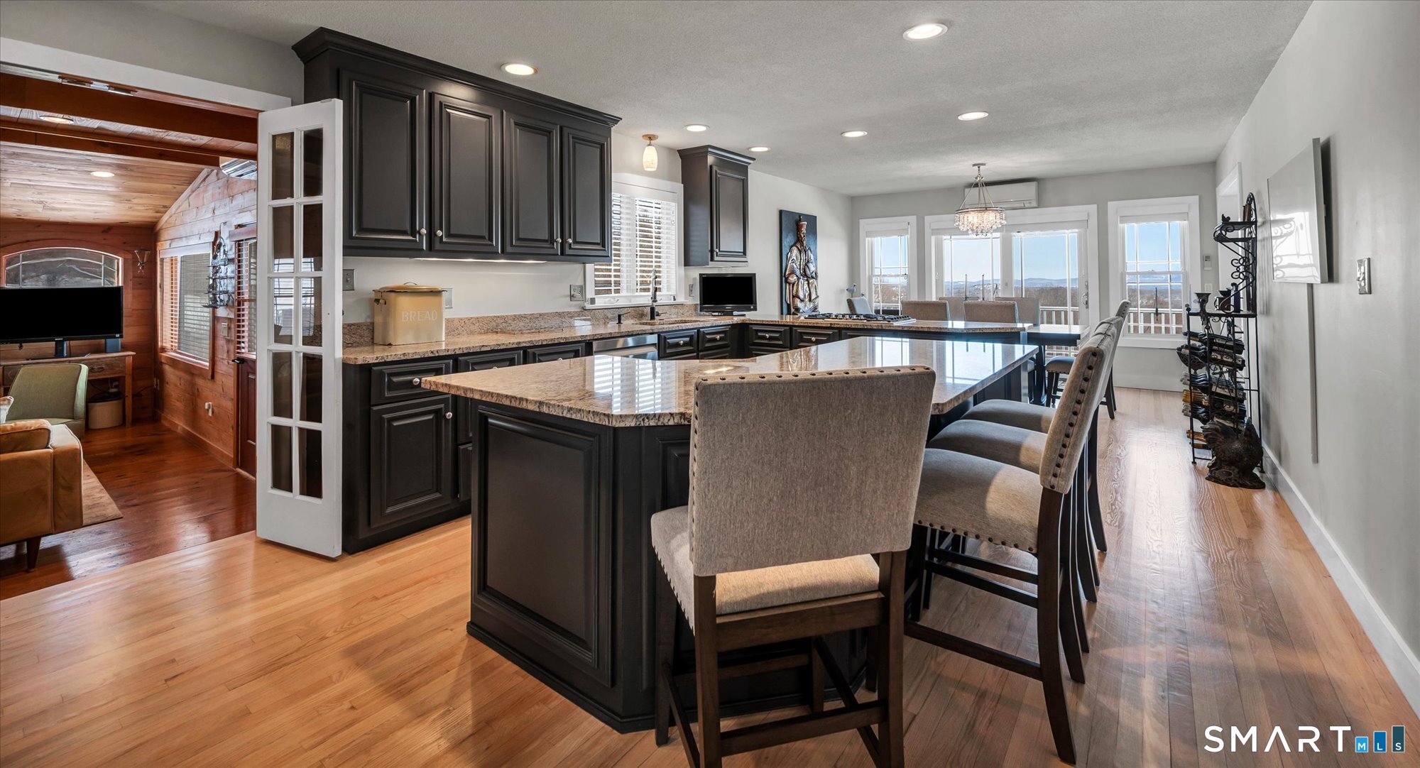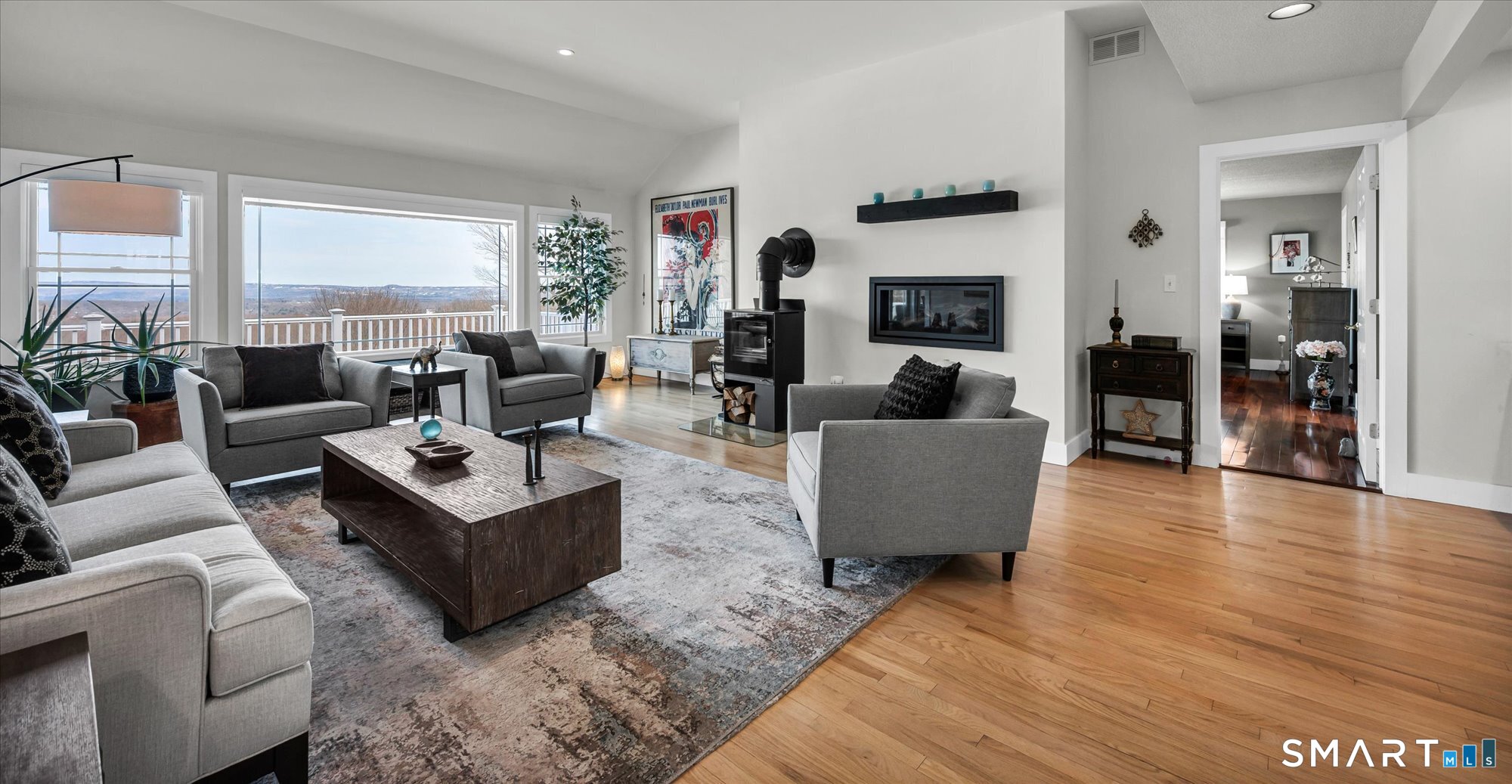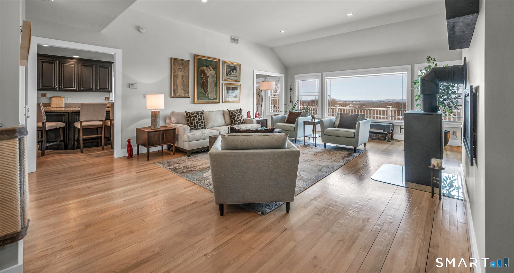 Breathtaking views welcome you to this villa-style home. It boasts one of the only unobstructed views of the eastern mountains. Step into the height of sophistication where extensive renovations have elevated every inch featuring a freshly painted interior, new flooring, custom millwork & doors, a renovated kitchen w/ refreshed cabinets, new: dishwasher/refrigerator/washers/dryer/gas stovetop-preparing and enjoying meals overlooking the Farmington Valley! The living room has been extensively reconfigured w/a contemporary Regency gas FP and a European Q-Tee wood burning stove. Your days are sure to be filled with joy and warmth as over 70' of windowed walls capture stunning views of the mountains from every single room, on each & every floor of this magnificent home. The 1st floor suite opens to an entirely new spa inspired bath. A cozy den off the kitchen has warm wooden touches, a vaulted ceiling & a stone FP w/a gas insert. Upstairs are 2 more bedrooms, a full Jack-and-Jill bath and an enormous bonus room - a combination perfect for family or guests. The grand finale is the renovated 1,400+ sf in-law apartment offering an expansive eat-in kitchen along w/views enjoyed from the gas FP'd family room & spacious bedroom w/a walk-in closet & full bath. All new mini splits & on-demand water heater add redundancy to the existing water heater, and central heat/air. Renovations incl. updated electrical panels (with EMP military grade surge protectors) and a whole house generator