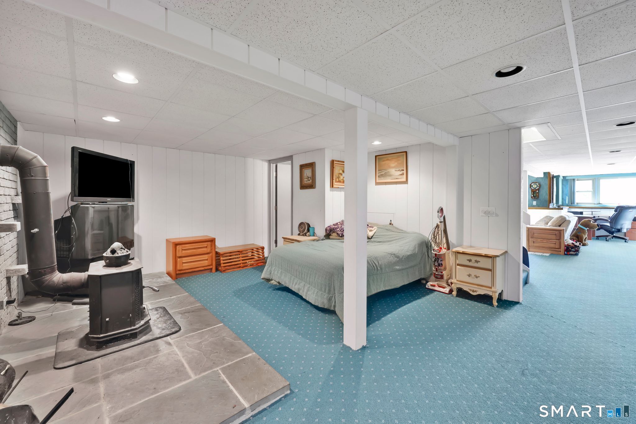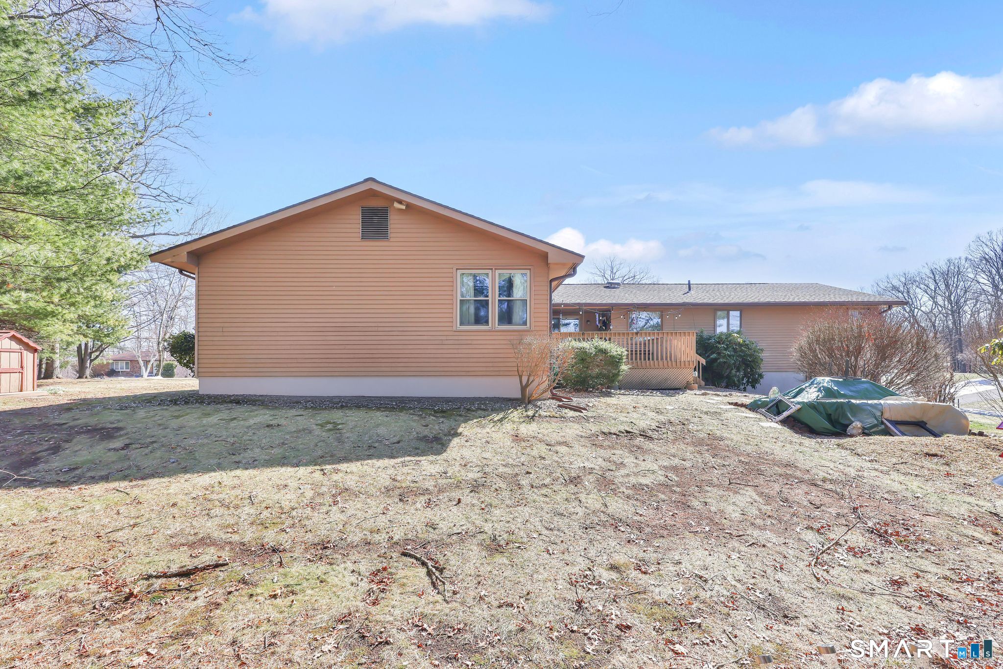 PHENOMENAL LOCATION in popular South Windsor neighborhood for this sprawling 3/4 bed, 2 bath RANCH style home with 2 car attached garage. Great curb appeal perched at a commanding lot on a quiet cul-de-sac street. Open, bright, and inviting floor plan. Eat-in tiled kitchen opens to first-floor family room with floor-to-ceiling stone fireplace. Living room with vaulted ceiling leads to sun-soaked formal dining room. First-floor primary bedroom with full bath bathroom and walk-in closet. Two additional bedrooms, second full bath, and laundry complete the main level. Lower level WALKOUT offers potential IN-LAW SPACE with approx 900 finished sq ft, multiple rooms, 2nd fireplace, possible bedroom space, half bath, and plenty of storage or expansion potential (2800 total sq ft of living space). Architectural roof, replacement windows, city sewer/water, newer central air (2024), and new oil boiler (2025). Situated in the desirable PHILIP R. SMITH ELEMENTARY SCHOOL DISTRICT. Tranquil setting but extremely convenient to area parks, Tri City shopping, Evergreen Walk, Buckland Mall, Costco, Whole Foods, Club Studio and easy access to I-84.