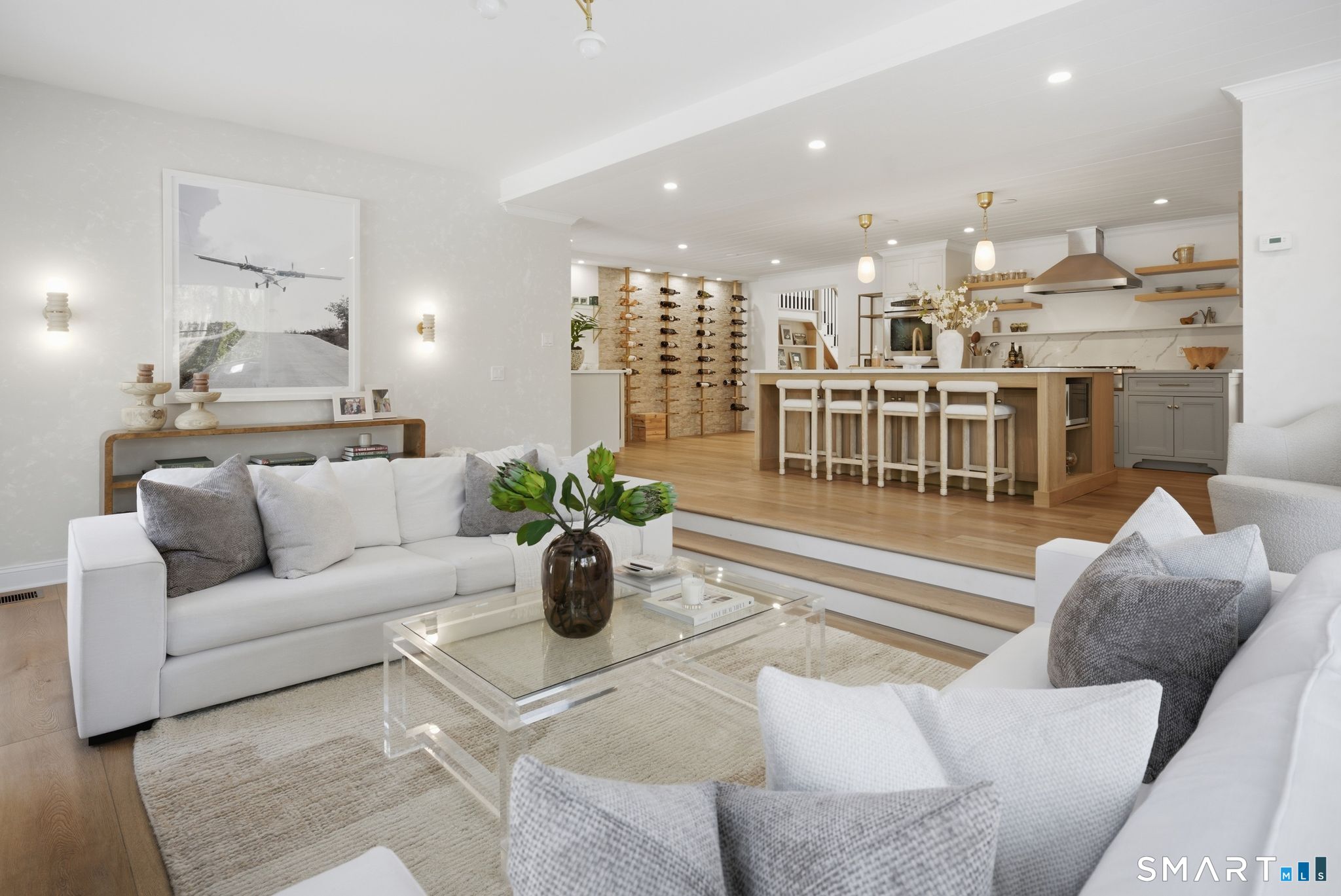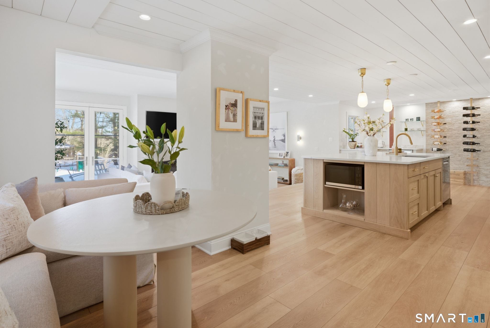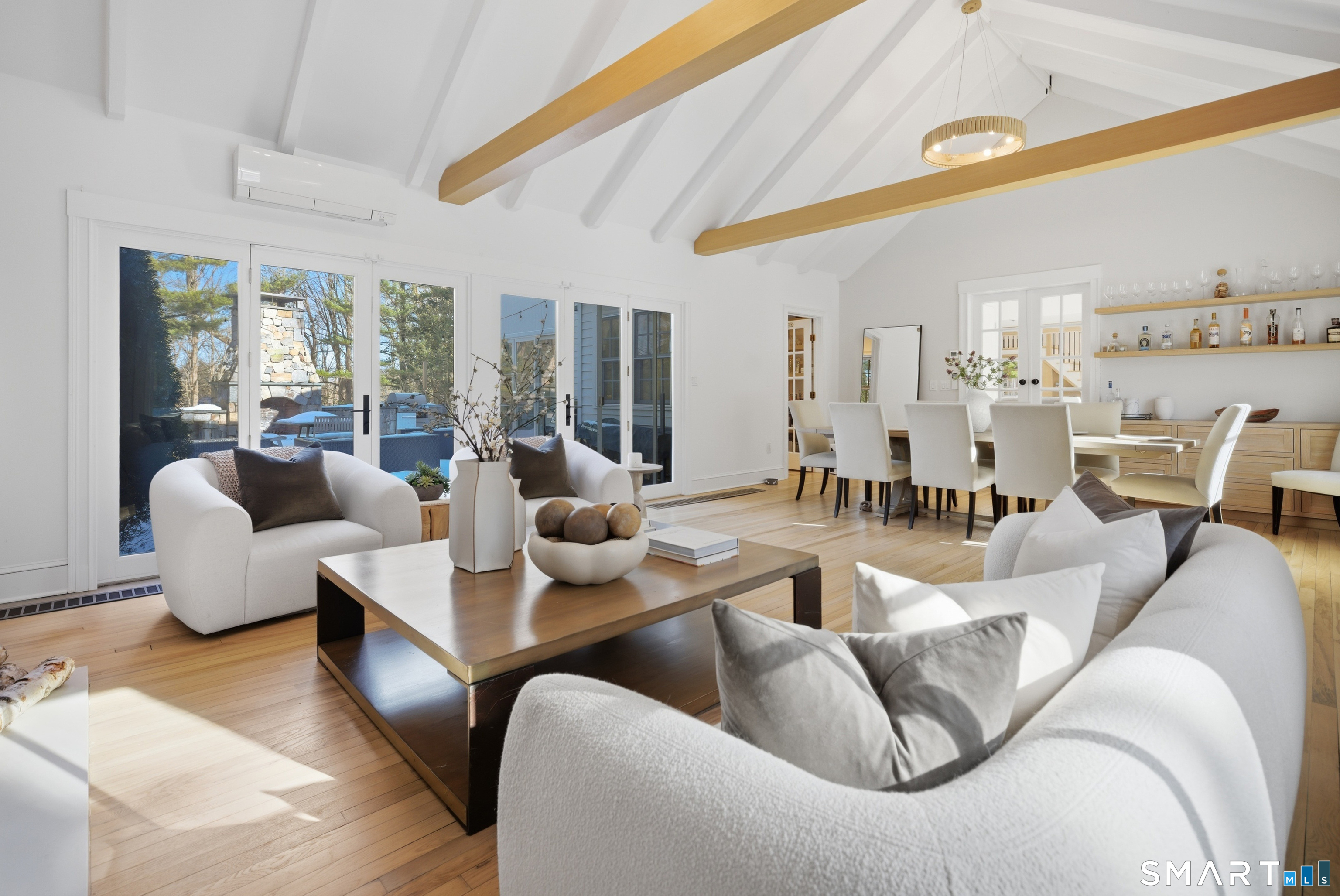 Wilton Road places you minutes from town and the shoreline. At 234, convenience and privacy coexist. A turn onto a side lane and a set-back approach behind mature trees create a setting that feels distinctly separate from the street. Originally built in 1884, the home has been fully renovated and thoughtfully expanded. A 2024 addition reshaped the main level, enlarging the kitchen and introducing a newly constructed family room anchoring the home. Tall ceilings, open sight lines, and abundant natural light create a sense of volume rarely found in homes of this era. It lives larger than its footprint. The kitchen centers around an oversized island, with a cozy banquette tucked into the corner. A beverage bar and architectural wine display are seamlessly integrated. The flow from kitchen to family room to dining is open and intuitive. Sliders extend to an expansive stone patio with a built-in grill station and fireplace, creating an easy transition between indoors and out. An expansive lawn invites play, set within the safety of the private backyard. Upstairs, the primary suite features a private sitting room, boutique-style dressing room, and a light-filled bath with a soaking tub and glass-enclosed shower. Additional bedrooms are carefully arranged, including a private suite, offering flexibility for guests. Historic at its core and thoughtfully expanded for today. Set where Westport unfolds at your doorstep, and designed with the scale to fully enjoy it.