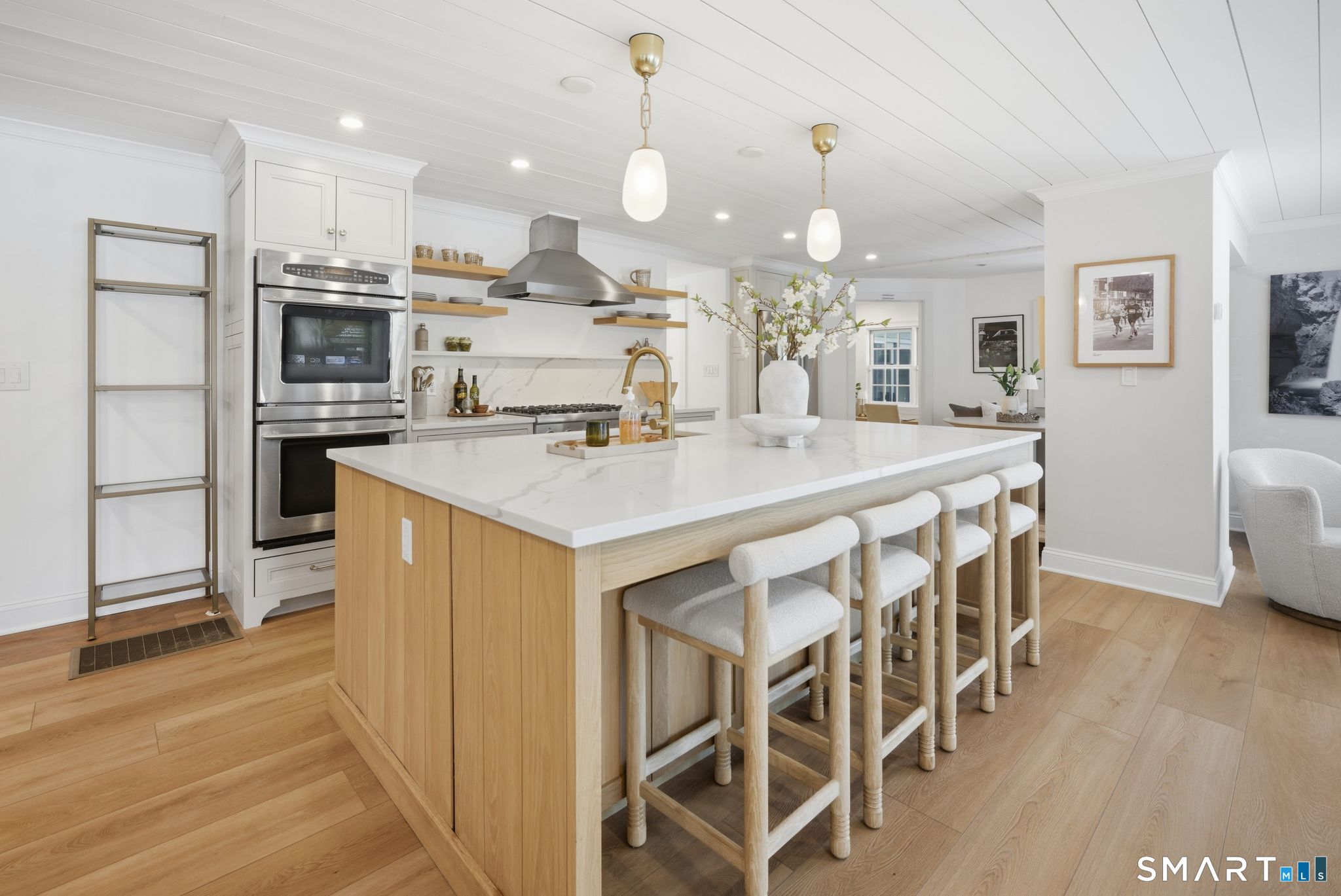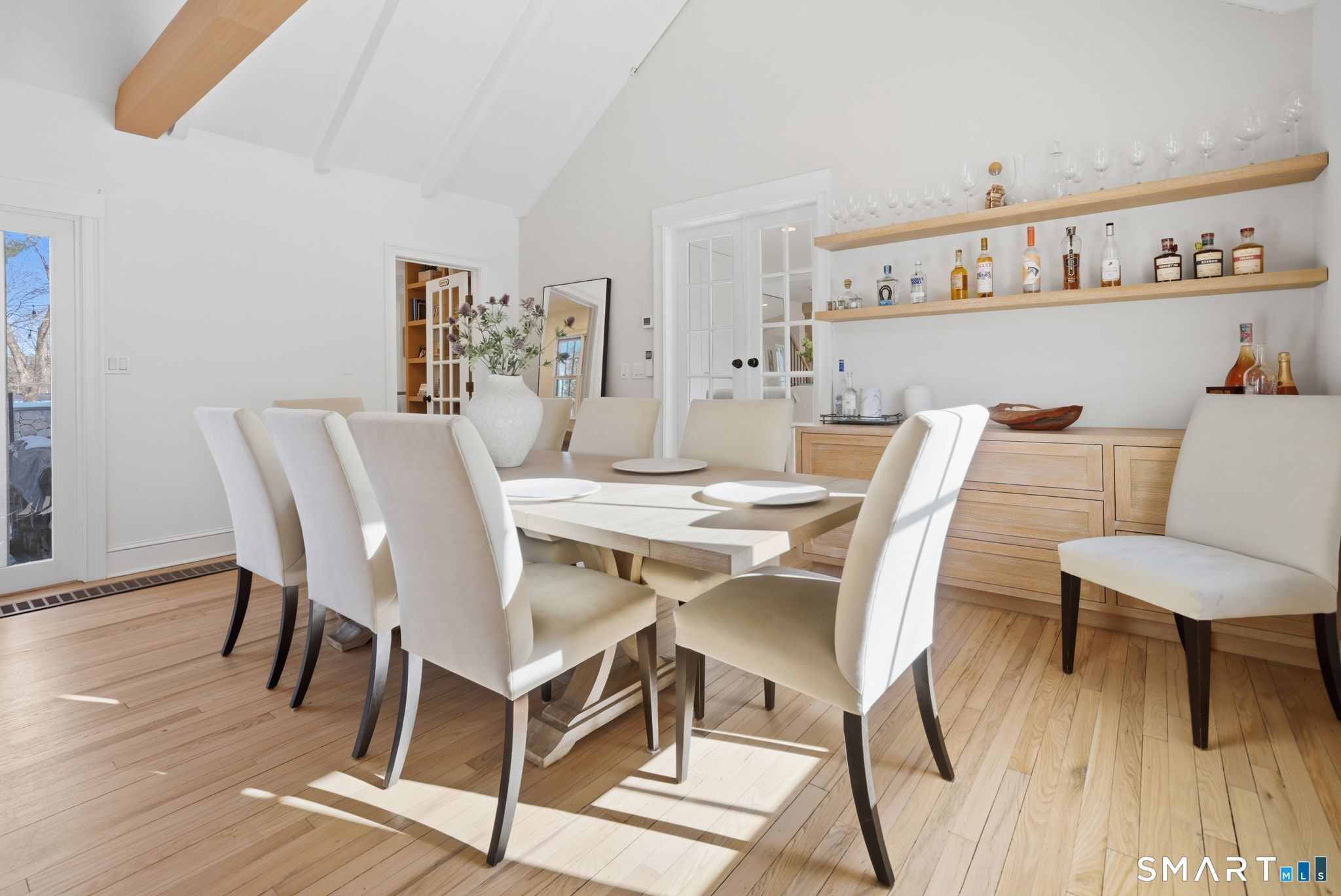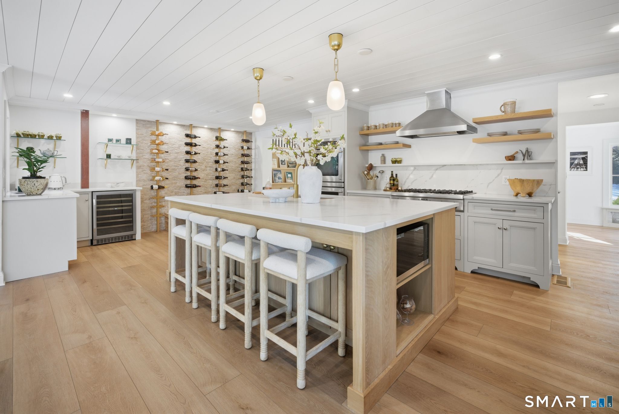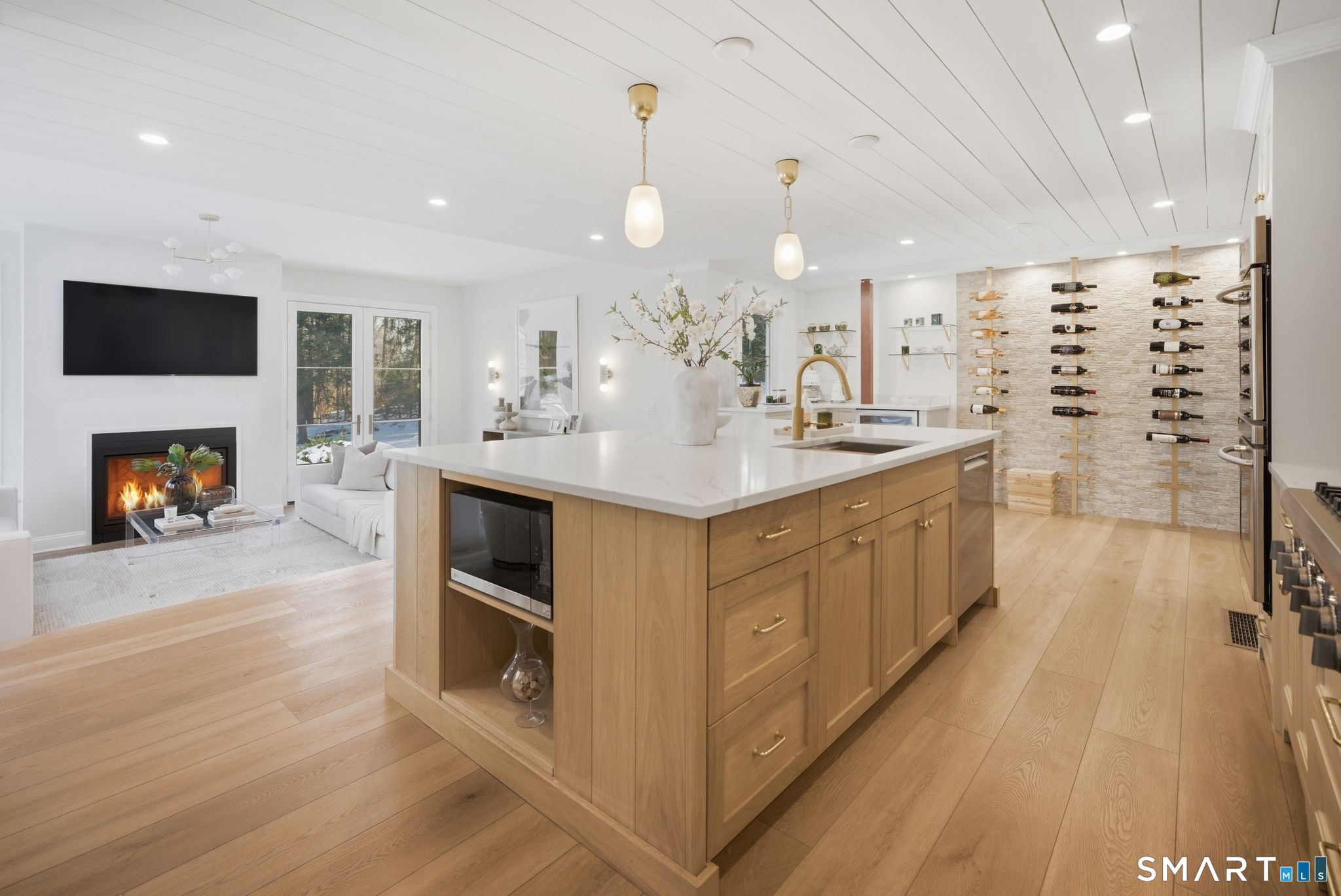 Wilton Road places you minutes from town and the shoreline. At 234, convenience and privacy coexist. A turn onto a side lane and a set-back approach behind mature trees create a setting that feels distinctly separate from the street. Originally built in 1884, the home has been fully renovated and thoughtfully expanded. A 2024 addition reshaped the main level, enlarging the kitchen and introducing a newly constructed family room anchoring the home. Tall ceilings, open sight lines, and abundant natural light create a sense of volume rarely found in homes of this era. It lives larger than its footprint. The kitchen centers around an oversized island, with a cozy banquette tucked into the corner. A beverage bar and architectural wine display are seamlessly integrated. The flow from kitchen to family room to dining is open and intuitive. Sliders extend to an expansive stone patio with a built-in grill station and fireplace, creating an easy transition between indoors and out. An expansive lawn invites play, set within the safety of the private backyard. Upstairs, the primary suite features a private sitting room, boutique-style dressing room, and a light-filled bath with a soaking tub and glass-enclosed shower. Additional bedrooms are carefully arranged, including a private suite, offering flexibility for guests. Historic at its core and thoughtfully expanded for today. Set where Westport unfolds at your doorstep, and designed with the scale to fully enjoy it.