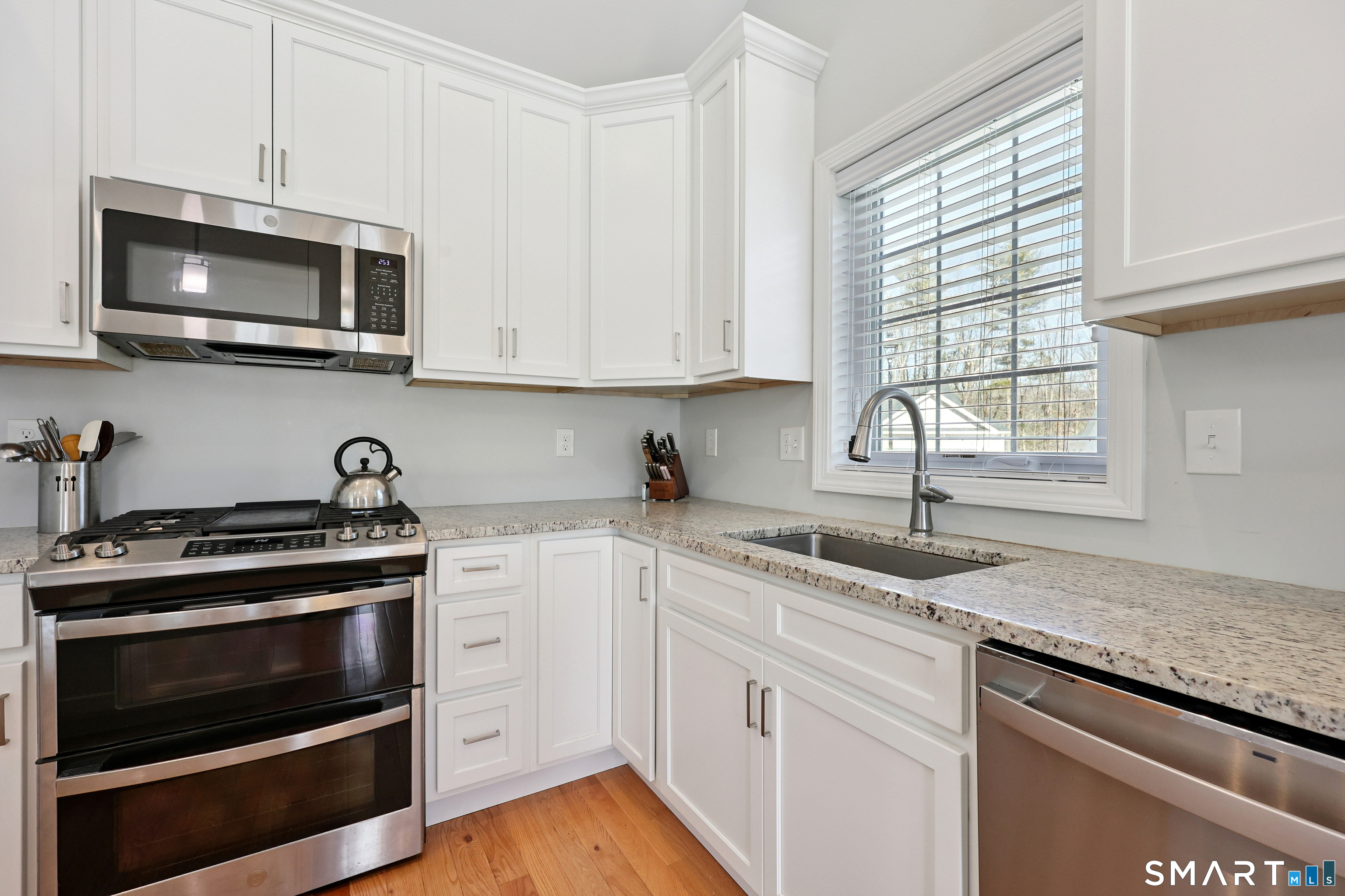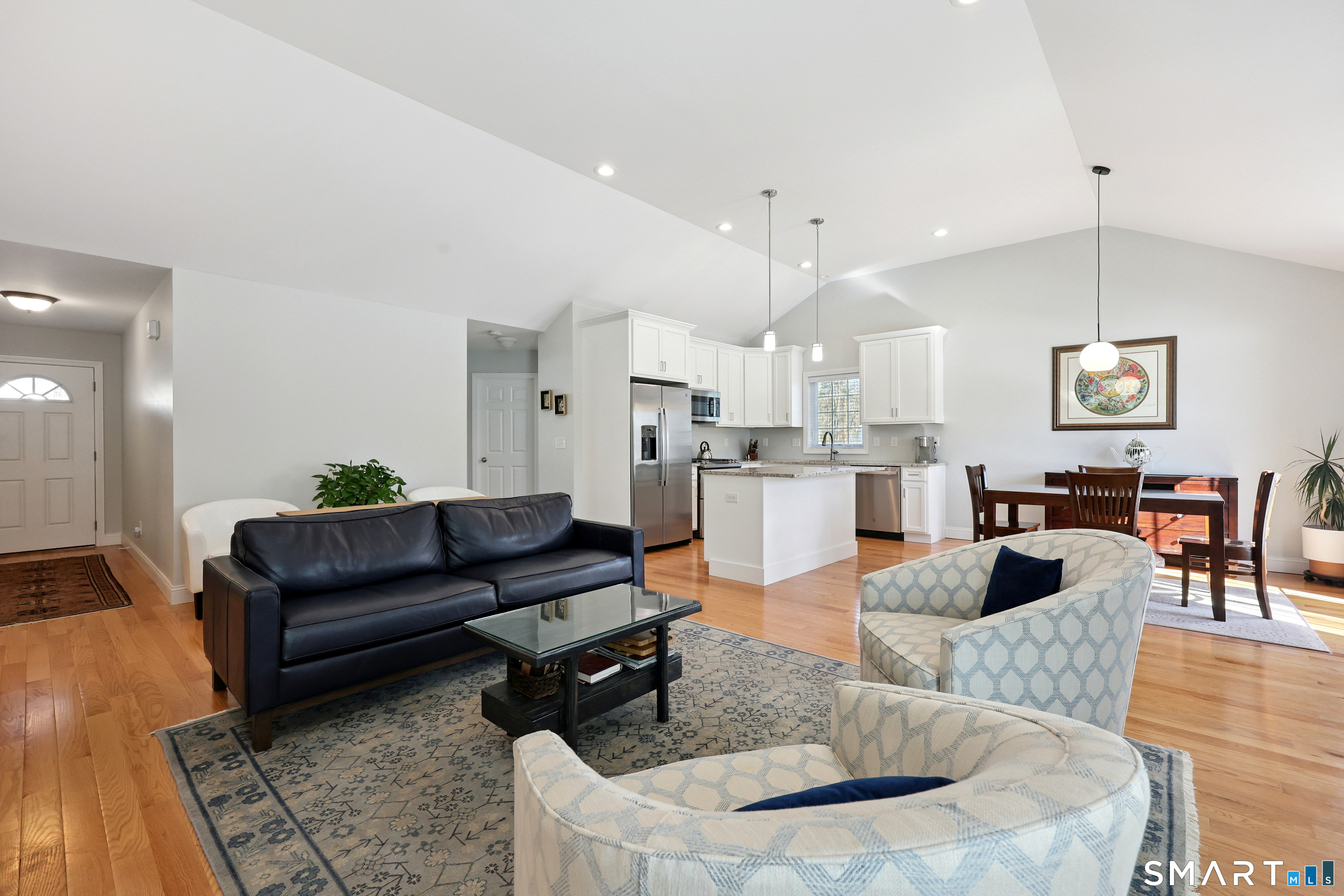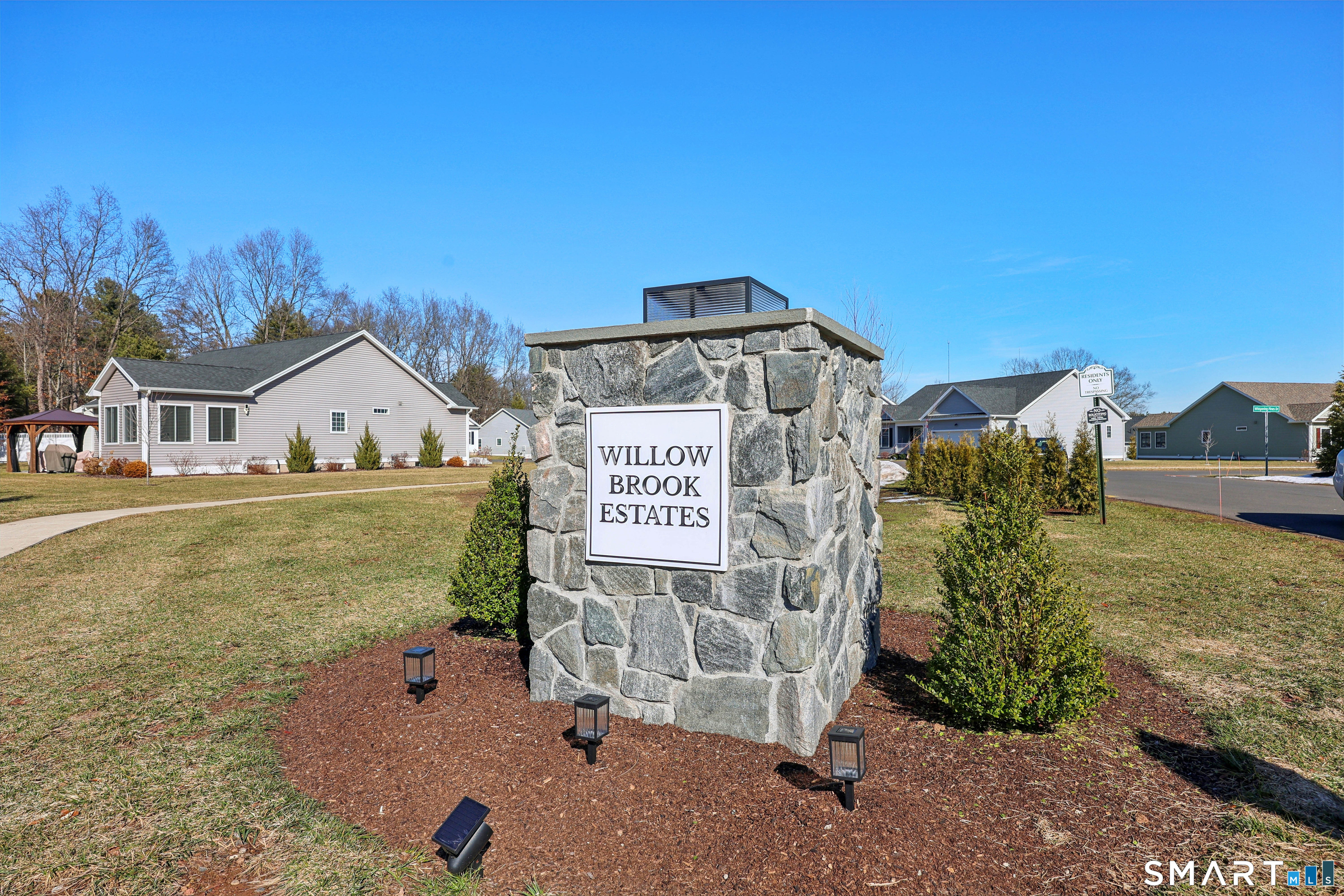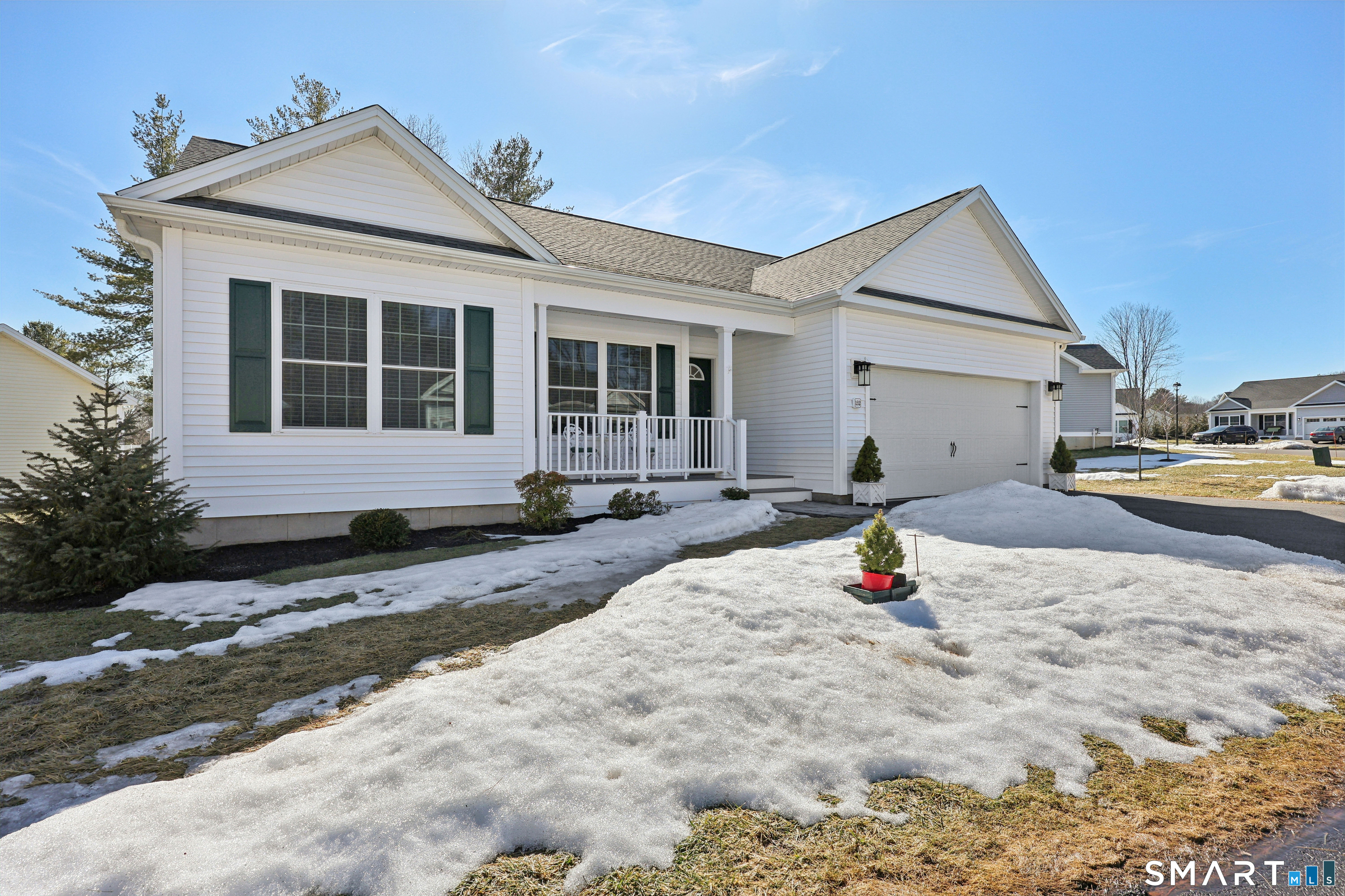 Rare opportunity to own at Willow Brook Estates - a premier 55+ Adult Community! This recently built, pristine resale home offers 1,534 SF of easy one-level living with 3 bedrooms and 2 full baths, known as the Blantyre plan. The thoughtfully designed layout features a striking vaulted ceiling, open fireplaced living room with built in cabinets, dining area with French door leading to the patio, and gleaming hardwood floors throughout. The kitchen is beautifully appointed with granite countertops, a double oven range, center island, and pantry closet, making it ideal for both everyday living and entertaining. Retreat to the primary bedroom suite, complete with a walk-in closet and private bath featuring a double-sink vanity. Two additional bedrooms are thoughtfully positioned to provide versatility for hosting guests, creating a home office, a cozy den, hobby room, or reading space to suit your lifestyle. Additional highlights include a main-floor laundry, two-car attached garage, and natural gas utilities. Enjoy the ease of planned community living, where snow removal, lawn care, and trash collection are included in the HOA. Willow Brook Estates is a community of 61 ranch homes nestled between Plainville and Farmington, offering a peaceful setting with convenient access to shopping, dining, and everyday amenities. Built by Mark Lovley of Newport Willow Brook Partners, LLC. Showings begin March 12th. Don't miss this exceptional opportunity!