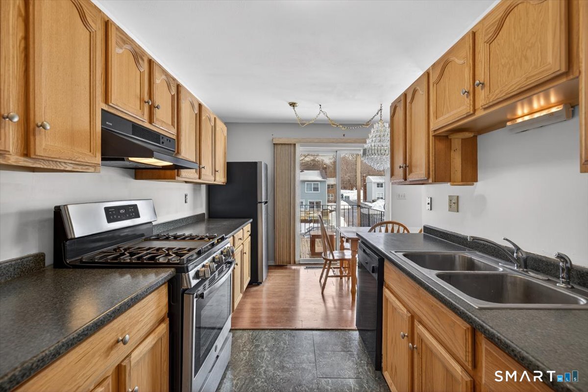 Welcome to Southwind Village in Milford. This ranch-style condo offers convenient one-level living with a practical and open layout. The main living area features a spacious living and dining room with laminate flooring, filled with natural light from the sliding glass doors. These doors lead out to a private deck, providing a quiet outdoor space for fresh air and relaxation. The galley kitchen is well-organized with ample oak cabinetry and solid workspace for everyday meal prep. Down the hall, you will find two comfortable bedrooms with neutral finishes. The primary suite includes the added convenience of a half-bath and a spacious walk-in closet. A full bath is also centrally located on the main floor to serve the rest of the home. One of the standout features of this unit is the finished lower level, which includes a den that could easily serve as a home office, media room, or hobby space. This lower level also provides a dedicated laundry area and significant unfinished space for all your storage needs. Complete with two assigned parking spaces, this home is located just a short distance from Milford's vibrant downtown, local shopping, and major commuter routes. A great, low-maintenance option for those seeking extra space and value in a great community.