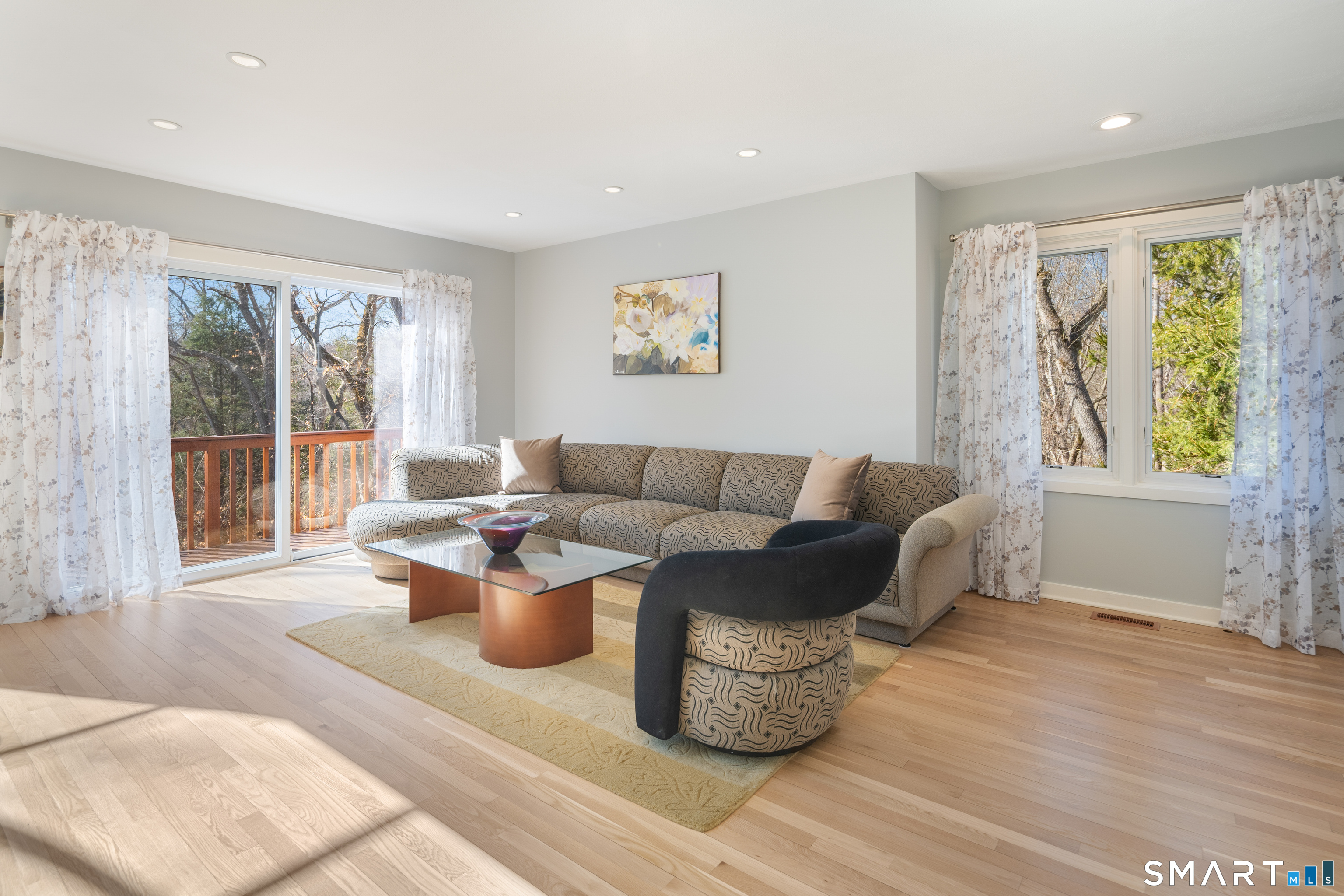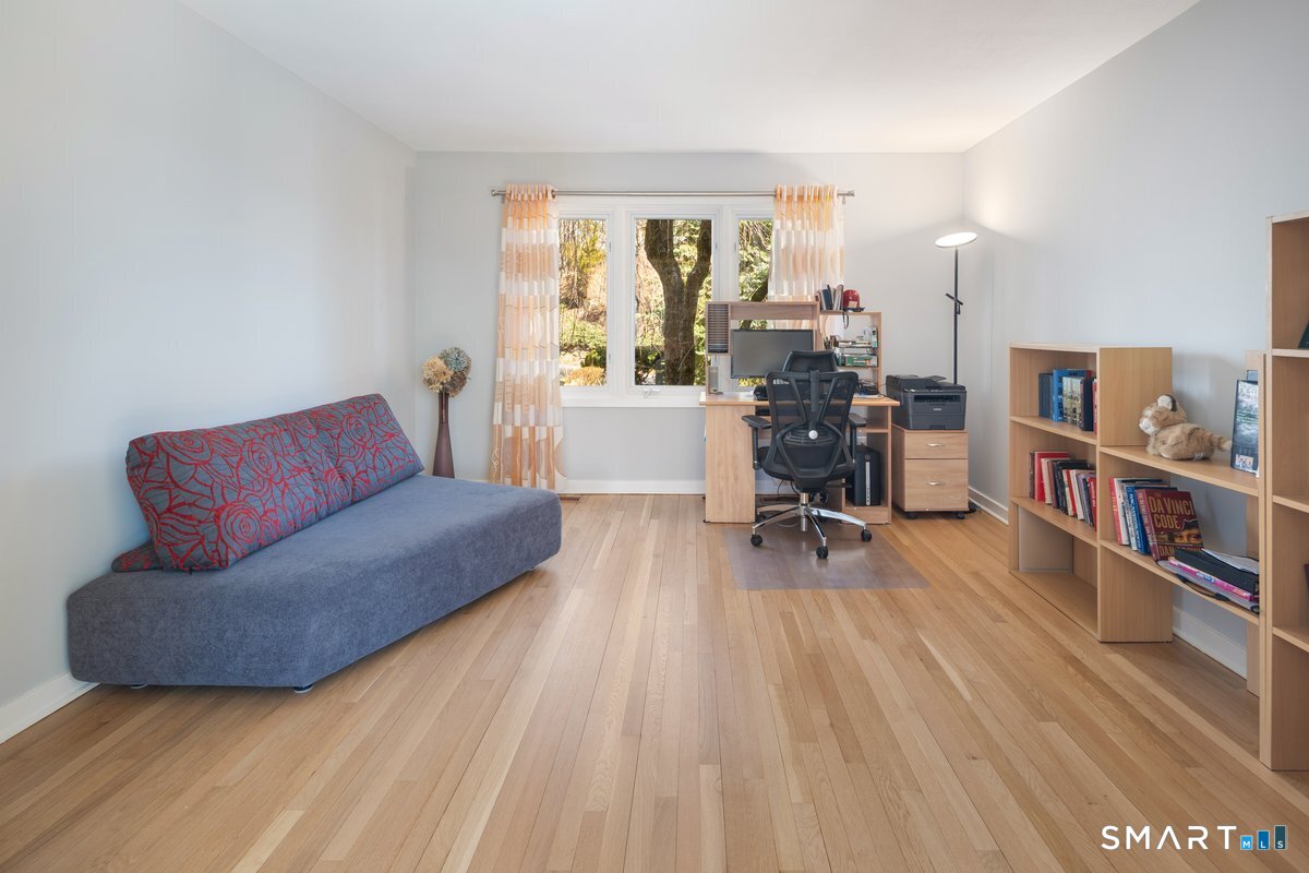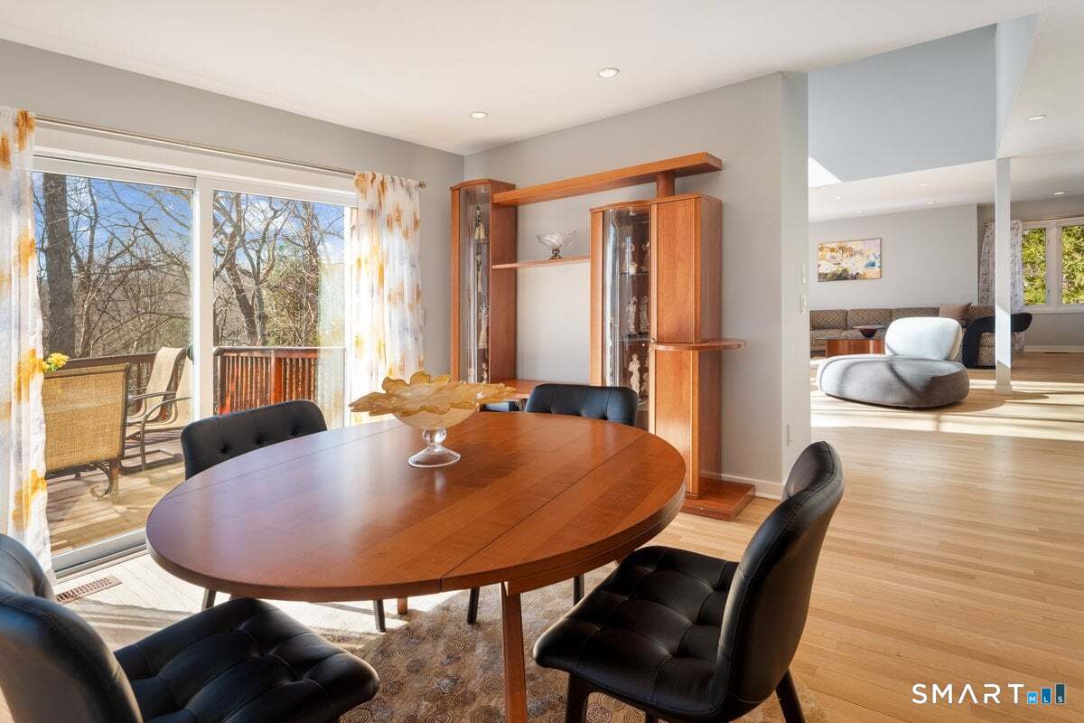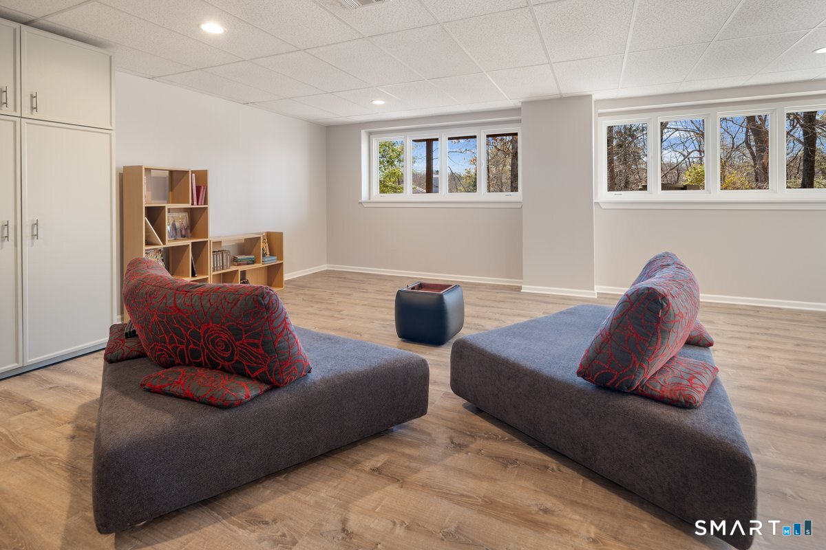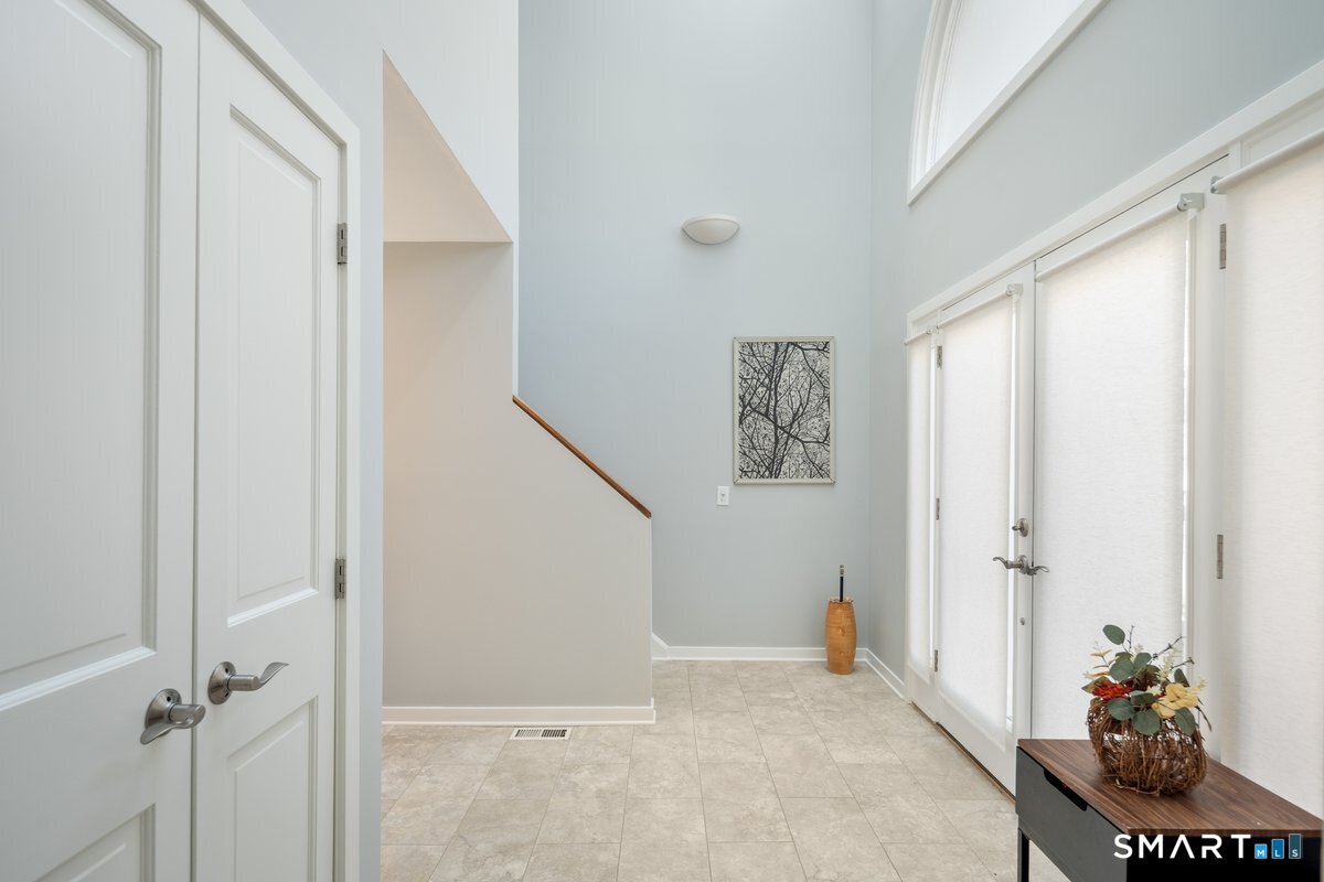 Found in the heart of historic Silvermine, The Falls is Norwalk's premier gated community of free-standing townhomes. The two story atrium window is the focal point of this home. Additionally, there is a wood burning fireplace, sliders to three decks and a patio - step outside from all three levels! The large main floor living room allows for versatile use of the space. There is also a formal dining room, eat-in-kitchen, remodeled powder room and private office. Hardwood floors recently refinished and new tile in the kitchen and in the two story foyer with palladium window. The open second floor landing provides an addiotnal vantage point to enjoy the natural light and view provided by the atrium window. The Primary Suite features a spa-like bath, large walk in closet plus a balcony. Two additional bedrooms, additonal full bath and laundry room complete the second level. Newer wall to wall carpet throughout the second level. Beautifully finished lower level has a wall of full sized windows and sliders to a private patio. The interior and exterior have both been recently painted. The pool will be open before we know it!!