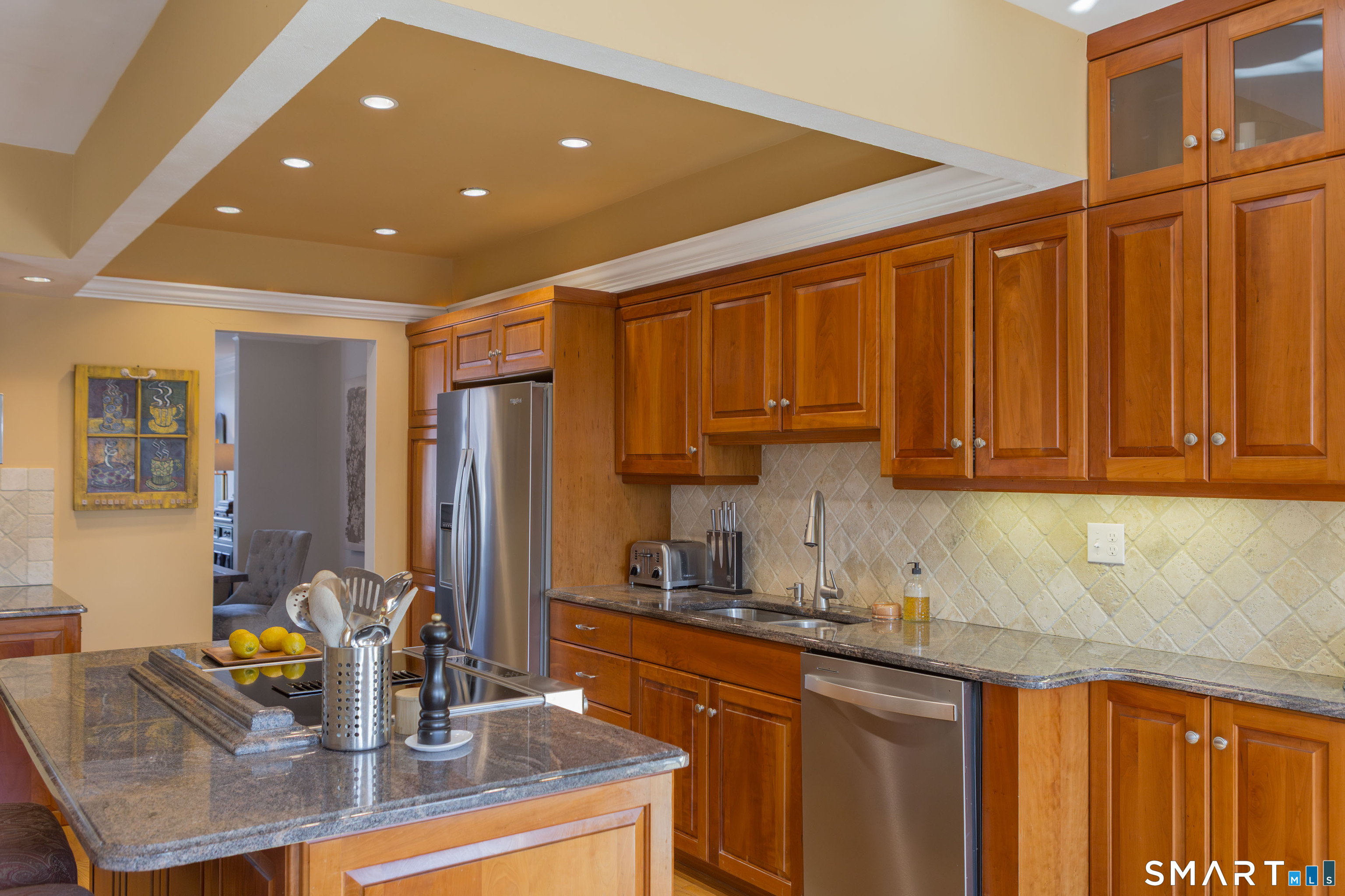 A once in a blue moon opportunity. You have a rare end unit with the most desirable location in the complex. Beautifully maintained and turnkey with a gorgeous Restoration Hardware vibe. This townhouse style unit offers three living levels with grand ceiling heights, elegant finishes and hardwood floors. The fully custom eat-in-kitchen features classic cherry wood cabinets, stone countertops and newer stainless appliances. The open dining / living area offers a wood burning fireplace and double French doors to the private deck. The upper level primary has vaulted ceilings a brand new spa bath with a two person soaking tub. The guest suite has a second new full bath with a step-in shower. Excellent closet & storage space throughout. The walk-out LL offers direct access to the side yard, perfect for dog owners and grill aficionados. The full size laundry and interior garage access round out the LL. Quality updates over the past few years include the furnace, water heater, 3 new bathrooms, appliances, LL flooring, attic storage and a 120V EV charger in the garage. The complex is well maintained & managed with a heated pool, tennis court and plenty of parking which is rare. For bonus points it's an ultra convenient location for daily amenities, minutes to SHU and Fairfield / Black Rock Turnpike, St Vincent's and the Fairfield Black Rock Train Station. Put it in go mode & get here before you miss this beauty. It's a unicorn, you won't find another like it anytime soon.