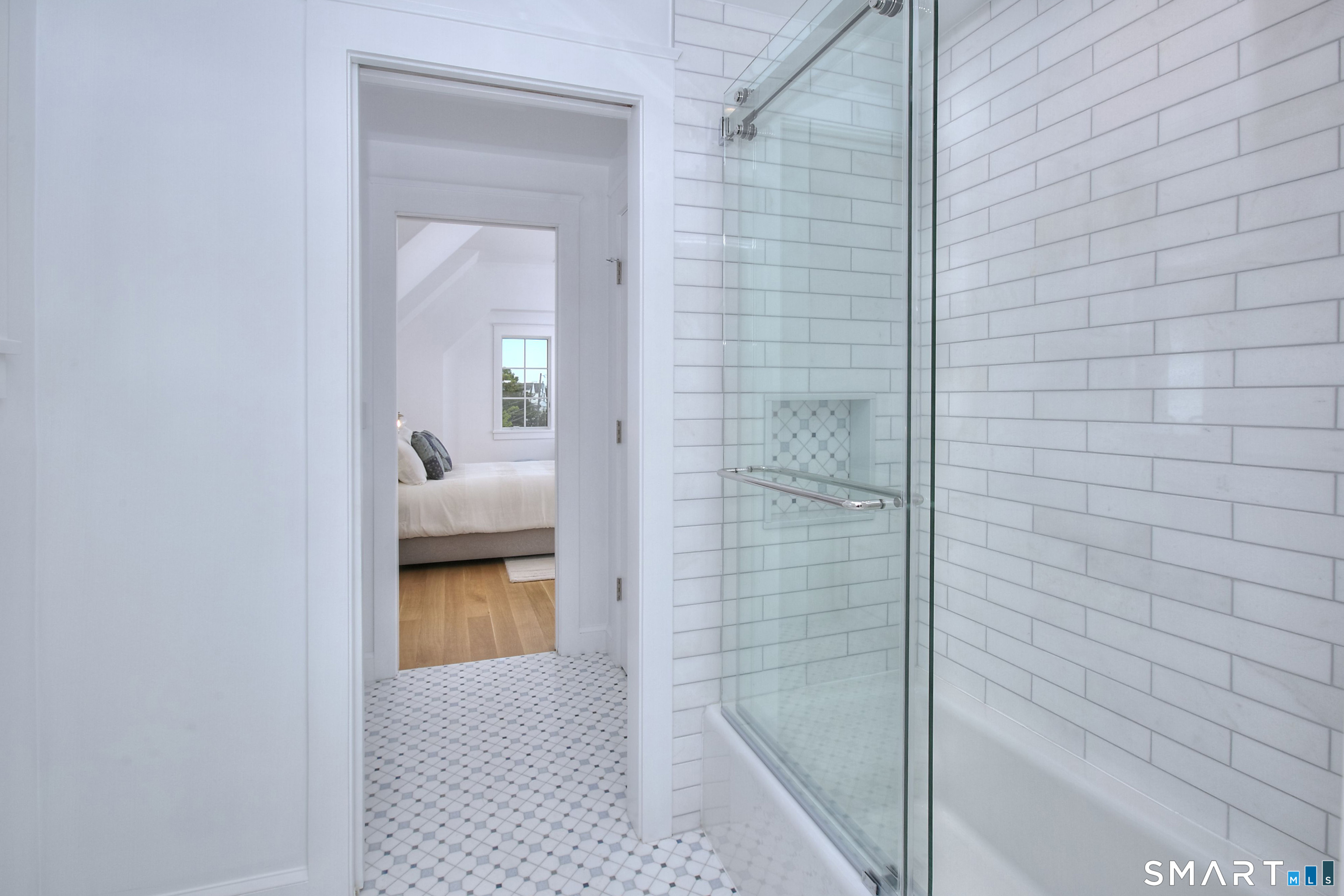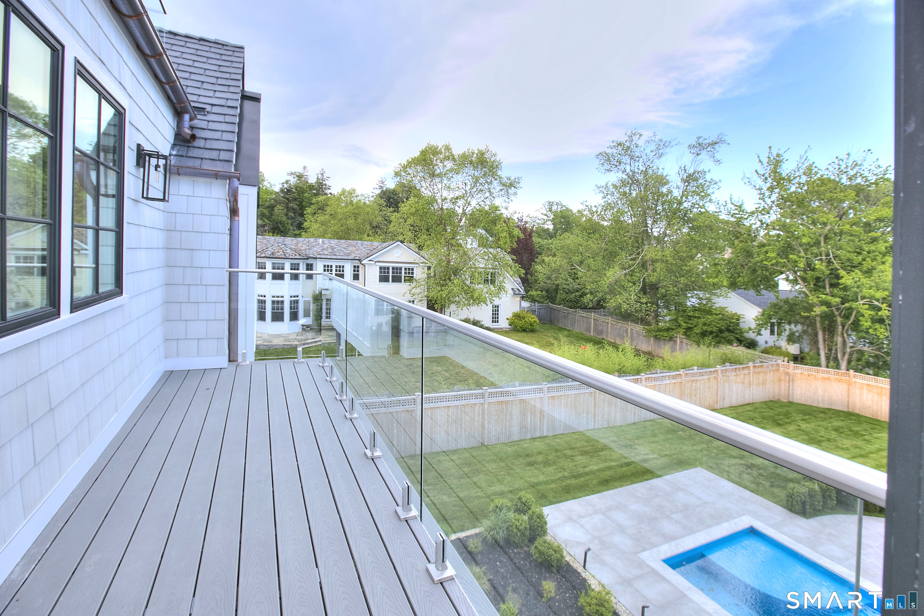 Located on a quiet private lane just two blocks from Compo Beach, this newly built coastal residence at 22 Appletree Trail offers a rare combination of modern craftsmanship, thoughtful design, and effortless beach living in the heart of Westport. Spanning approximately 4,791 sq ft of living space, the home blends timeless architectural elements with refined contemporary finishes. White oak floors, soaring ceilings, and custom Italian cabinetry create a warm and sophisticated interior. The chef's kitchen features L'Ottocento cabinetry, Thermador appliances, and Compac Quartz surfaces, complemented by a fully equipped butler's pantry with a second dishwasher and wine refrigeration. An open-concept family room with a sleek linear gas fireplace flows seamlessly to the covered outdoor terrace overlooking the heated pool and landscaped grounds-perfect for both quiet evenings and entertaining. Upstairs, vaulted bedrooms include fully furnished custom closets. A sun-filled lounge opens to a private rooftop deck with a gas fireplace and seasonal views of Long Island Sound. The primary suite offers a private terrace, dual walk-in closets with custom Italian millwork, and a spa-inspired bath designed for relaxation. Set moments from the shoreline while offering easy access to Manhattan via train, this newly completed residence presents a rare opportunity to enjoy modern coastal living in one of Westport's most desirable neighborhoods.