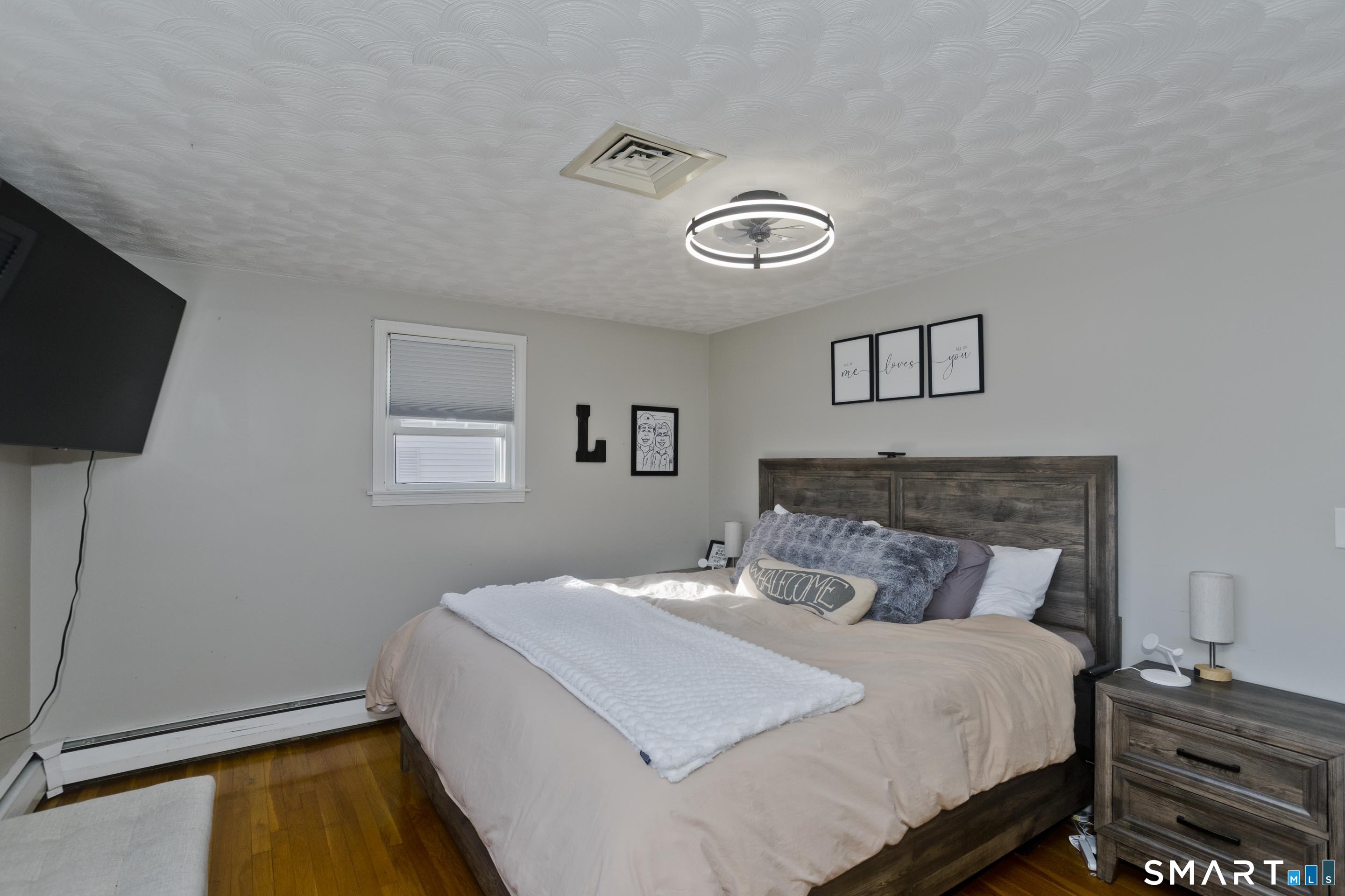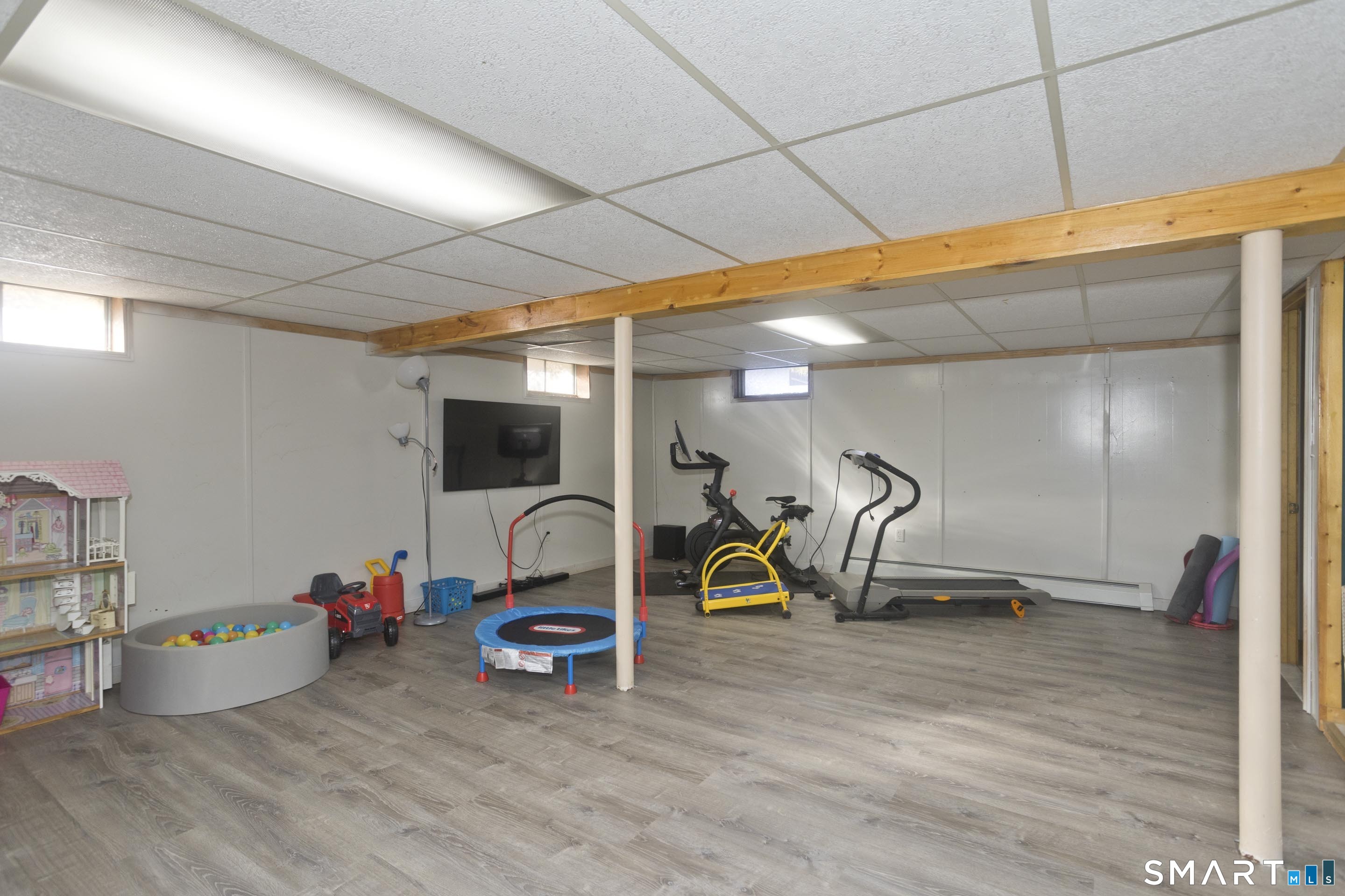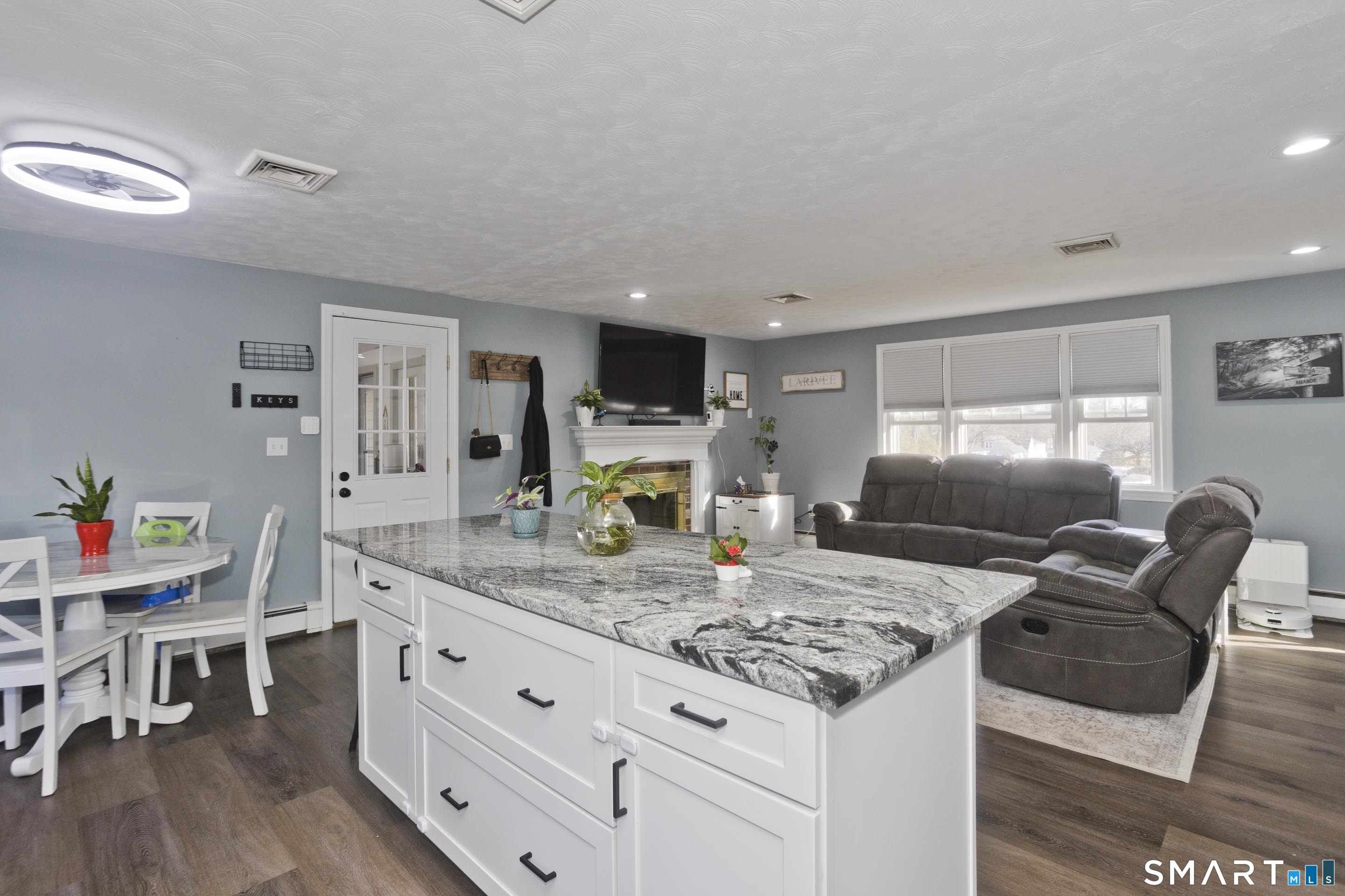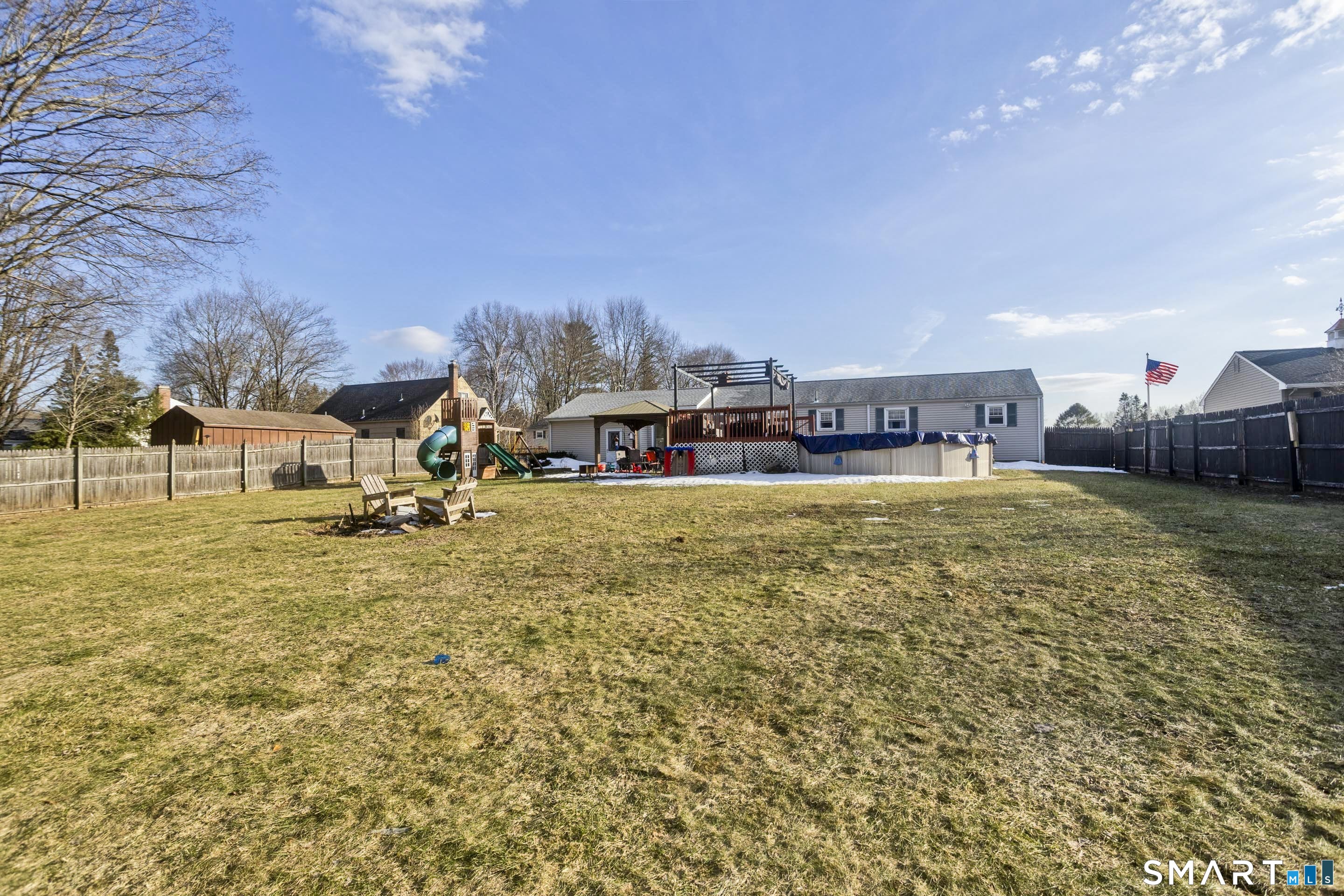 Welcome home to this well-maintained four-bedroom, two-bath ranch located in the desirable Southwood Acres neighborhood of Enfield. Step inside to the updated eat-in kitchen featuring new appliances and a large center island, perfect for cooking and gathering. The spacious open-concept living room is filled with natural light, highlighted by recessed lighting and a cozy fireplace that creates a warm and inviting atmosphere. Four generously sized bedrooms and a full bathroom complete the main level. The partially finished basement offers additional living space, ideal for a playroom, home gym, or den, along with a second full bathroom for added convenience. Outside, enjoy a large, flat, fully fenced-in backyard that offers plenty of space to relax or entertain. The outdoor area features a gazebo, an above-ground pool with a deck, and ample room to enjoy the outdoors. The home also includes a one-car garage for added convenience. Additional highlights include central AC, a gas boiler (APO 2022), new gas water heater (APO 2026), owned solar (APO 2026), 200-amp electrical service (APO 2026), and a Level 2 car charger (APO 2025). Move right in and start enjoying everything this home has to offer-this turnkey property is ready and waiting for its next owners!