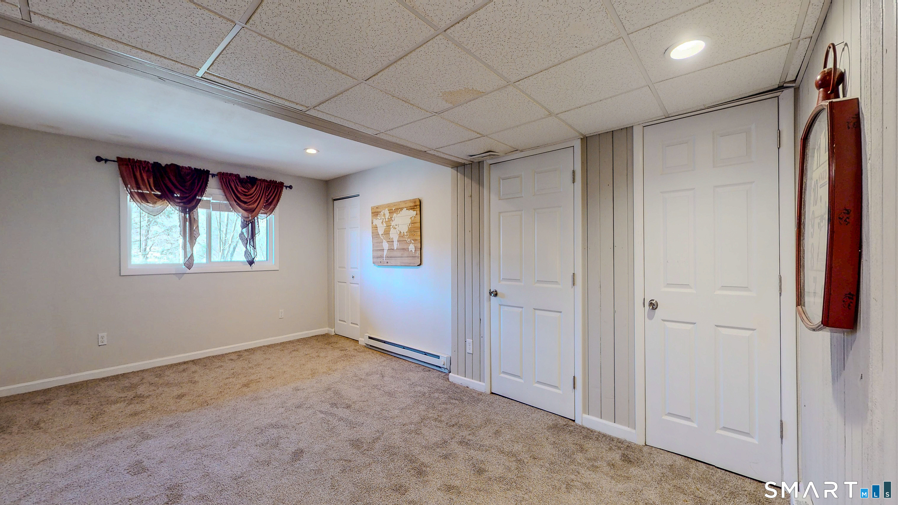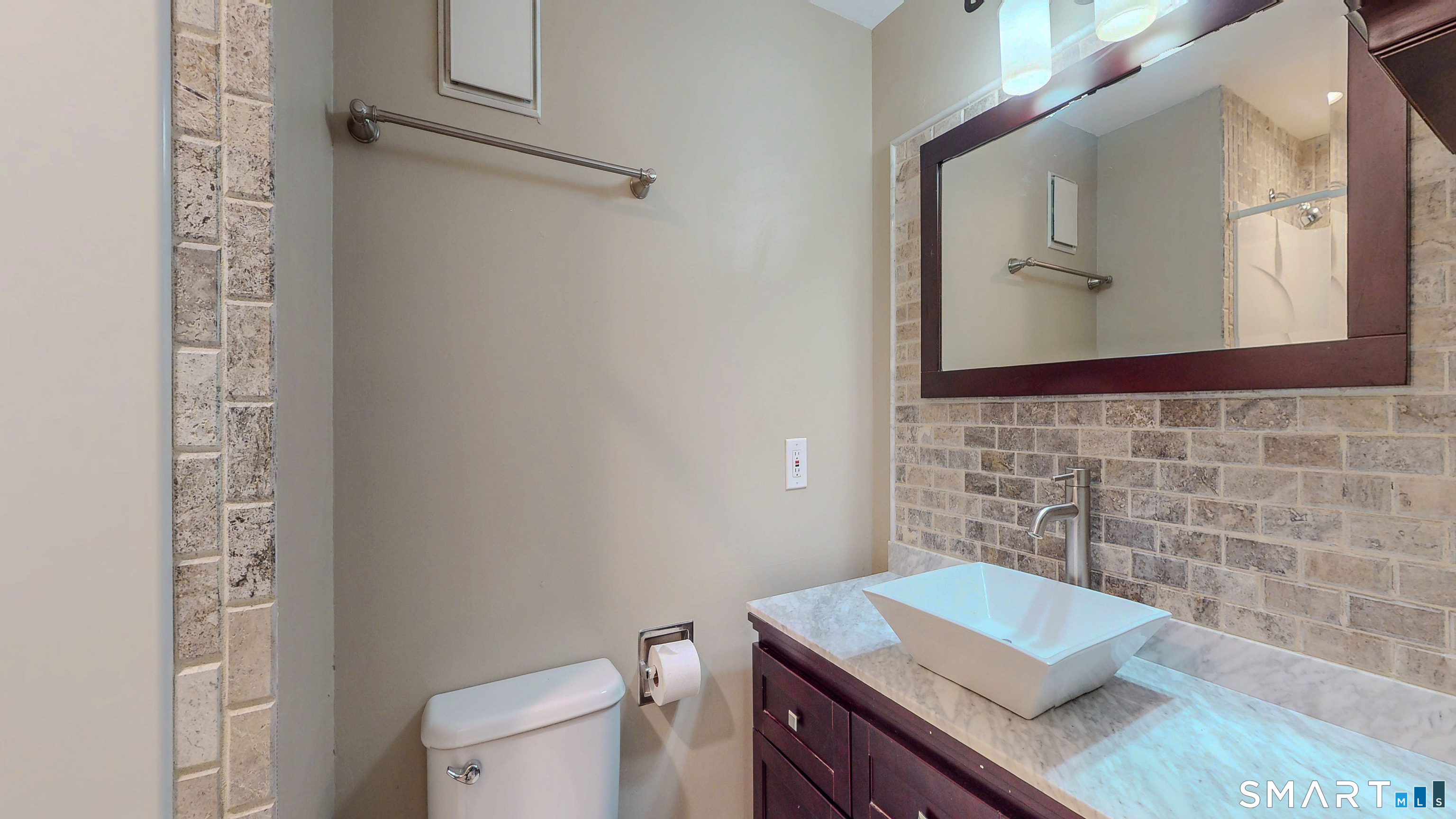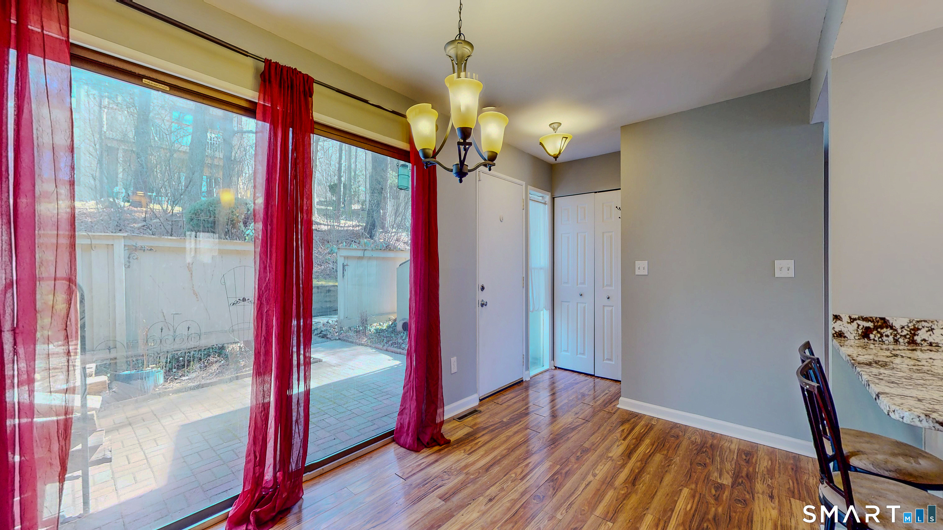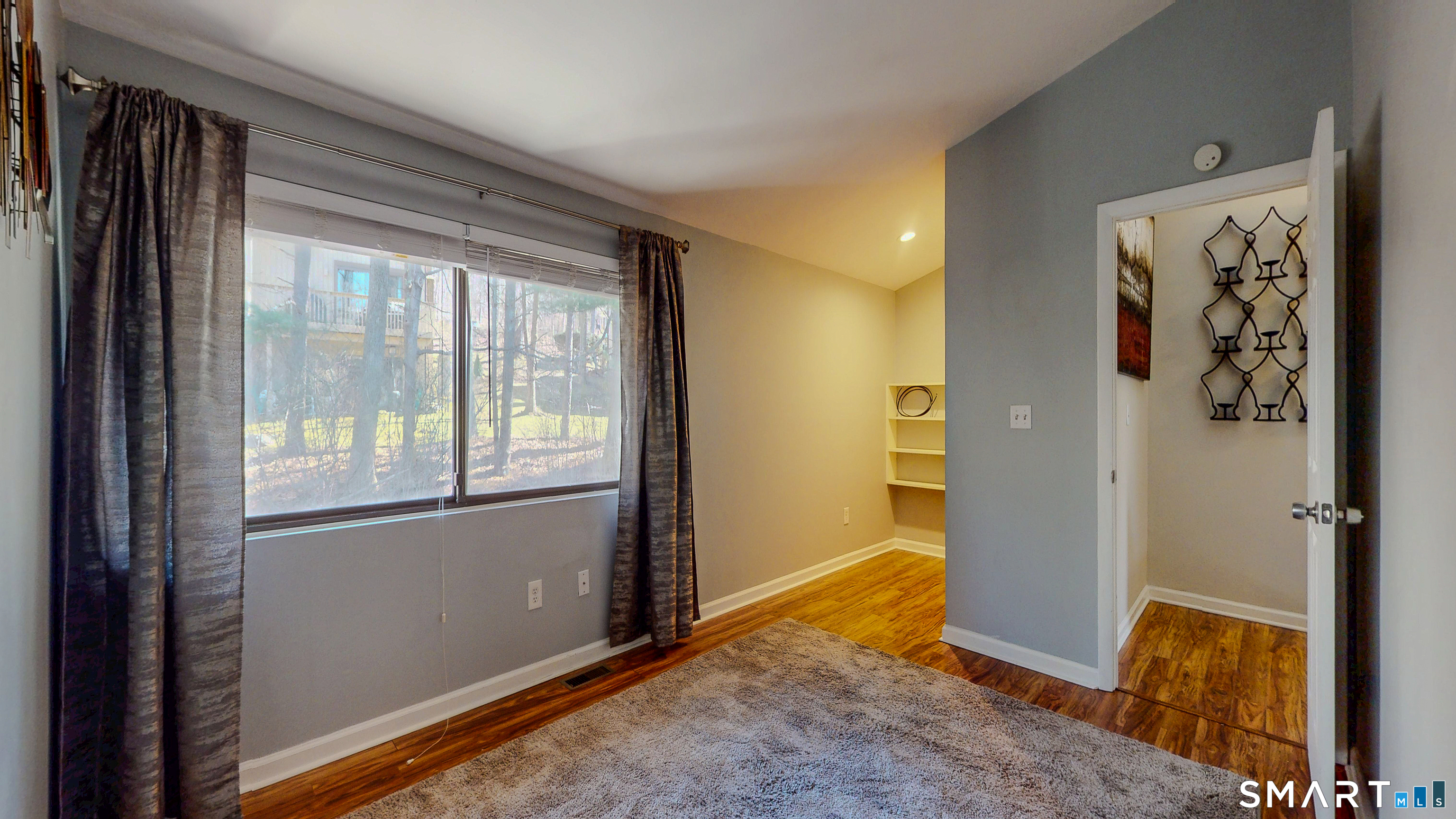 Welcome to this light-filled and beautifully maintained townhome in the highly sought-after Woodlake community in Woodbury. Spanning three levels, this inviting home offers a rare blend of space, comfort, and seasonal views of Wood Lake. The main level features a spacious living and dining area anchored by a striking floor-to-ceiling fireplace, enhanced with a wood-burning insert (2021). Sliding doors lead to a private deck with peaceful wooded surroundings and seasonal lake views. The kitchen is appointed with granite countertops, stainless steel appliances, and direct access to a patio finished with stone pavers - ideal for outdoor dining and entertainment. Upstairs, the primary suite offers ample closet space, a full bath, and a Romeo balcony with seasonal lake views. A second bedroom and additional full bath provide flexibility for guests or a home office. A convenient laundry closet with brand new, never-used washer and dryer adds to the ease of everyday living. Additional insulation (2021) enhances energy efficiency, and generous storage is found throughout. The finished, walk-out lower level adds approximately 600 square feet of versatile living space, ideal for a family room, gym, or office. Additional highlights include two assigned outside parking spaces. Residents of Woodlake enjoy scenic walking trails and a tranquil natural setting, just minutes from historic downtown Woodbury and I-84.